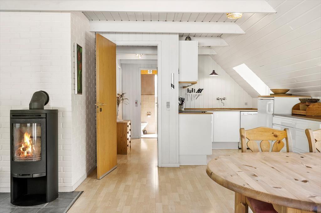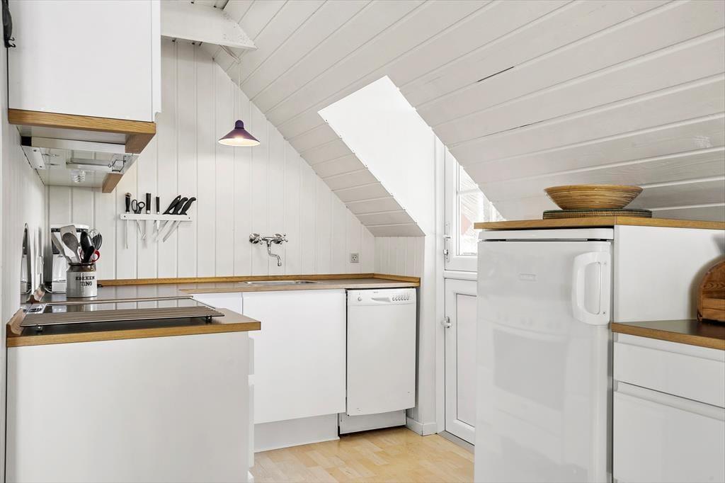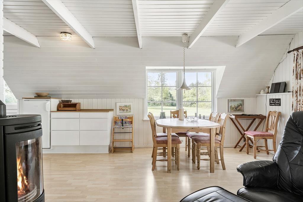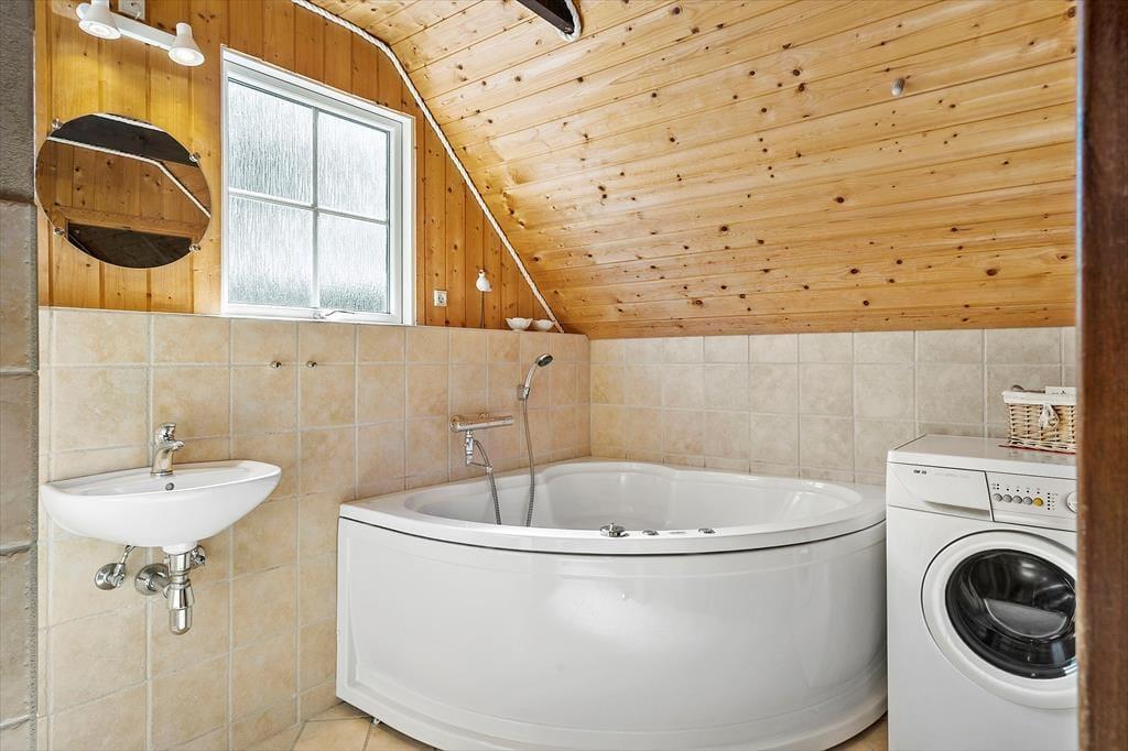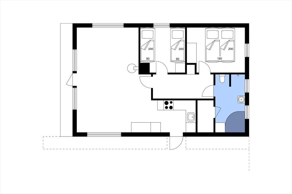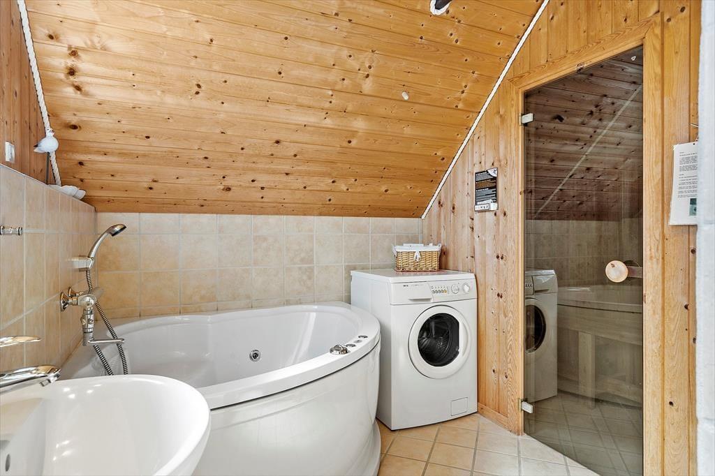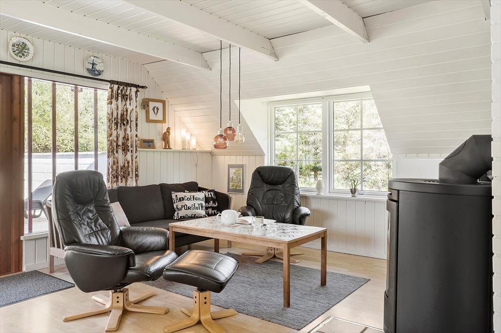 Das Ferienhaus begrüßt Sie mit einer gemütlichen Einrichtung und einer ansprechenden und komfortablen Möblierung. Die schöne und gut ausgestattete Küche ist offen mit dem Wohnraum verbunden, in dem ein Kaminofen und eine Wärmepumpe für behagliche Temperaturen sorgen. In diesem Raum werden Sie sicherlich viele gemütliche Stunden beim Lesen, beim gemeinsamen Spielen oder mit einem guten Film im Fernsehen verbringen. Vom Wohnraum genießen Sie direkten Zugang zur Terrasse. Das gute Badezimmer verwöhnt mit einem Whirlpool, einer kleineren Sauna und einer Dusche. Ihnen stehen zwei gute Schlafzimmer mit Schrankfläche zur Verfügung. Eines der Schlafzimmer beherbergt ein Doppelbett und das andere zwei Einzelbetten.