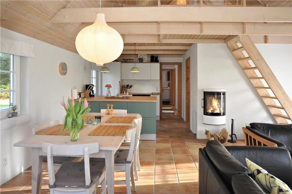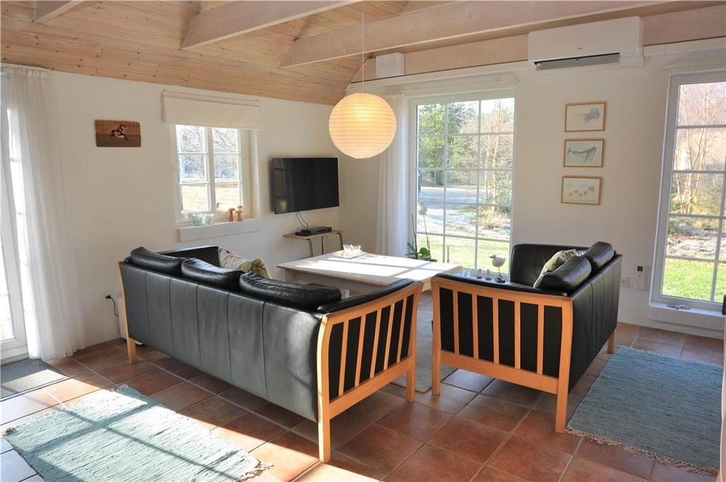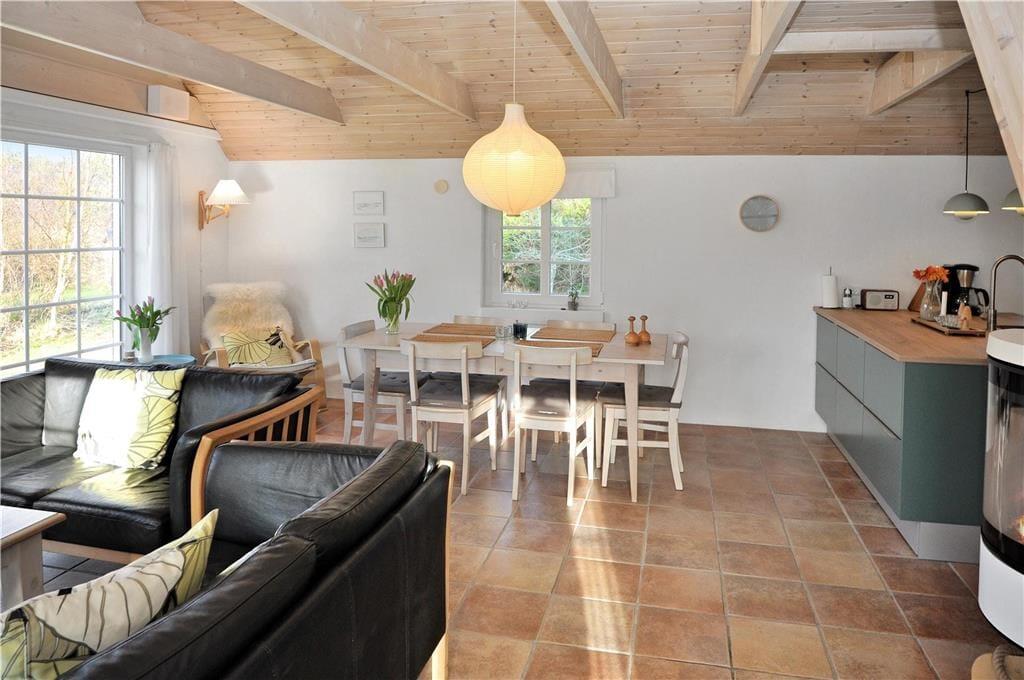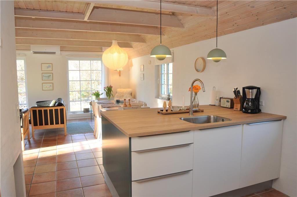 Ein sehr schönes und gemütliches Ferienhaus mit Reetdach. Helle und freundliche Einrichtung mit schöner Möblierung sowohl im Wohn- als auch im Schlafbereich. Im Wohnzimmer befindet sich ein Kaminofen, der sowohl im Sommer als auch im Winter viele gemütliche Stunden ermöglicht. Die schöne und gut ausgestattete Küche liegt in offener Verbindung mit dem Wohnzimmer. Vom Wohnzimmer aus haben Sie Zugang zum Zwischenboden, der sich hervorragend als gemütliches Spiel- und Kinderzimmer eignet. Vom Wohnzimmer aus gibt es zudem einen Zugang zur schönen Terrasse. Drei Schlafzimmer, alle mit Schrankraum, bieten Platz für bis zu sechs Personen. Das Haus verfügt über ein schönes großes Badezimmer mit Whirlpool und Dusche. Vom Flur aus hat man Zugang zu einer Sauna. Ein Bluetooth-Verstärker und zwei Lautsprecher befinden sich im Wohnzimmer. Der Wasserverbrauch ist nicht im Preis enthalten.