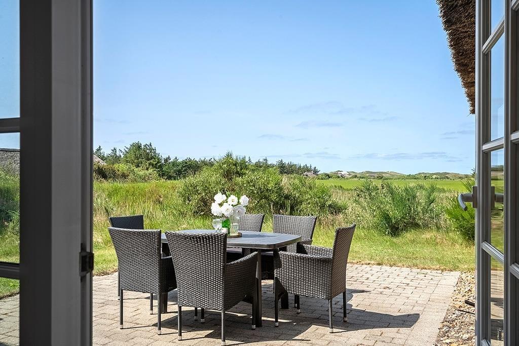Vom Wohnzimmer aus habt ihr direkten Zugang zur Terrasse, wo ihr bei einem erfrischenden Getränk entspannen könnt – mit Blick auf die grünen Felder und Dünen der Nordsee. Vielleicht genießt ihr auch euer Abendessen im Freien, zubereitet aus den hervorragenden regionalen Zutaten. Wenn ihr danach noch sitzen bleibt, könnt ihr den wunderschönen Sonnenuntergang bewundern, der den Himmel in ein spektakuläres Orange-Rot taucht.