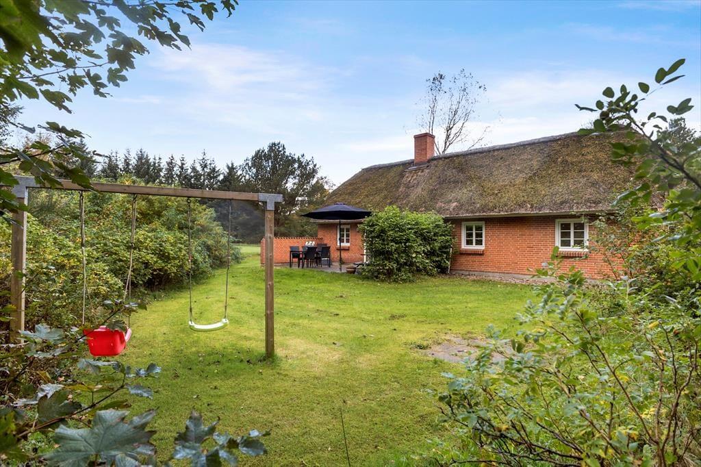 Das Ferienhaus liegt auf einem großen, sonnigen Grundstück mit viel Platz für Spiele und Aktivitäten. Der Garten lädt zu Fußballmatches, Wikingerschach oder einfach entspannten Momenten im Gras ein. Die Kinder können sich auf der Schaukelanlage austoben, während Sie auf der Terrasse eine ruhige Pause mit einer Tasse Kaffee, einem guten Buch oder dem Blick auf die hohen Bäume genießen, die das Haus umgeben und für Privatsphäre und Ruhe sorgen. Die langen Sommerabende können in vollen Zügen auf der Terrasse genossen werden, und an Wintermorgen lässt sich die klare Luft aufnehmen, während Sie sich mit einem warmen Getränk aufwärmen. Die natürliche Atmosphäre und die gemütliche Umgebung lassen den Alltag in weite Ferne rücken.