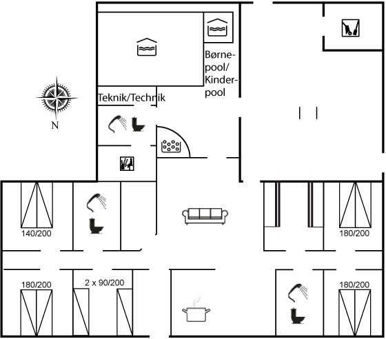 In der Ferienunterkunft gibt es einen Fernseher. DVD-Player. Radio. Stereoanlage. CD-Player. Mindestens 4 dänische Fernsehsender. Mindestens 4 deutsche Fernsehsender. Es steht kabellose Internetverbindung zur Verfügung.