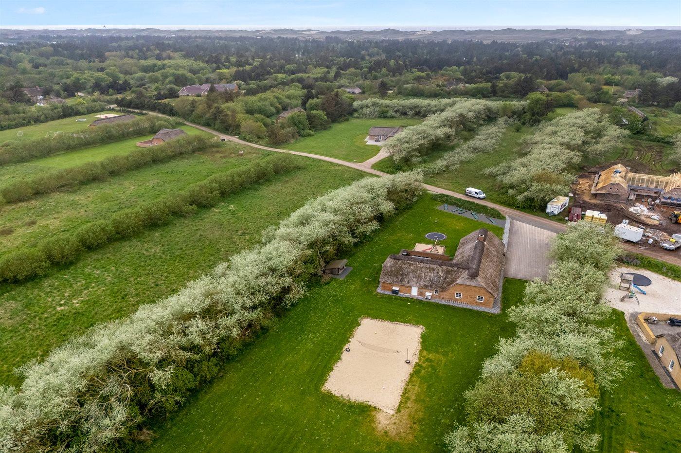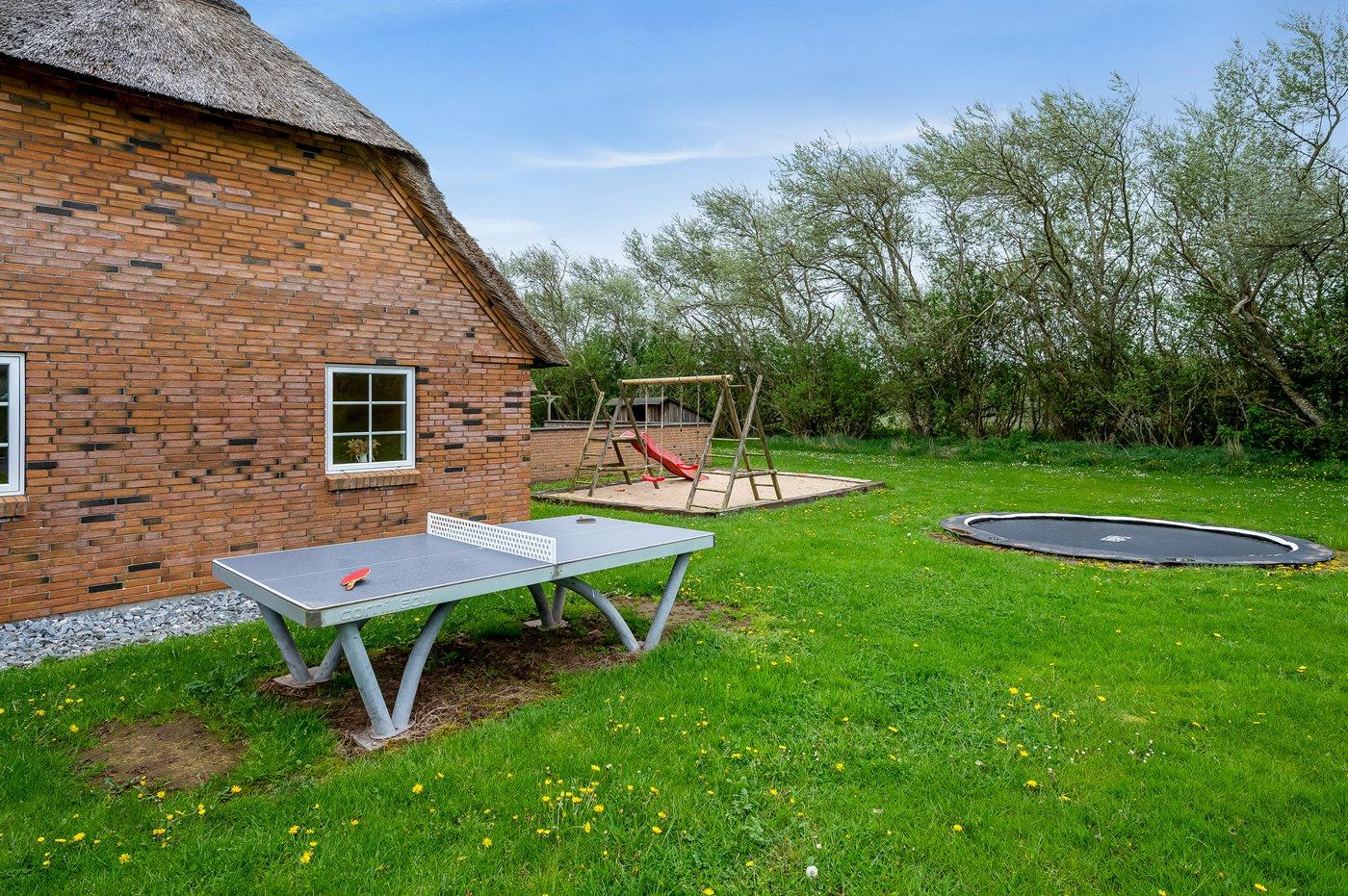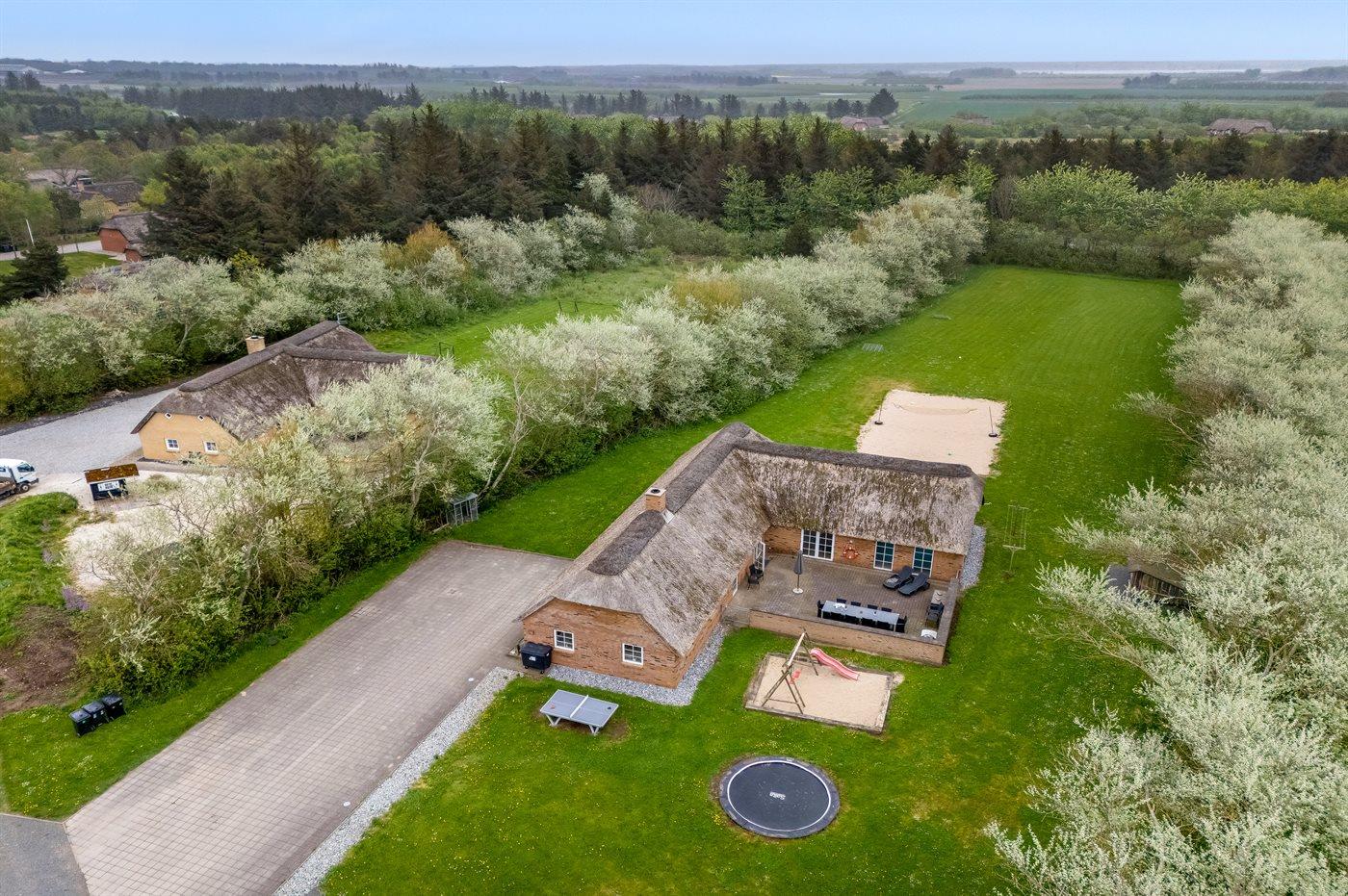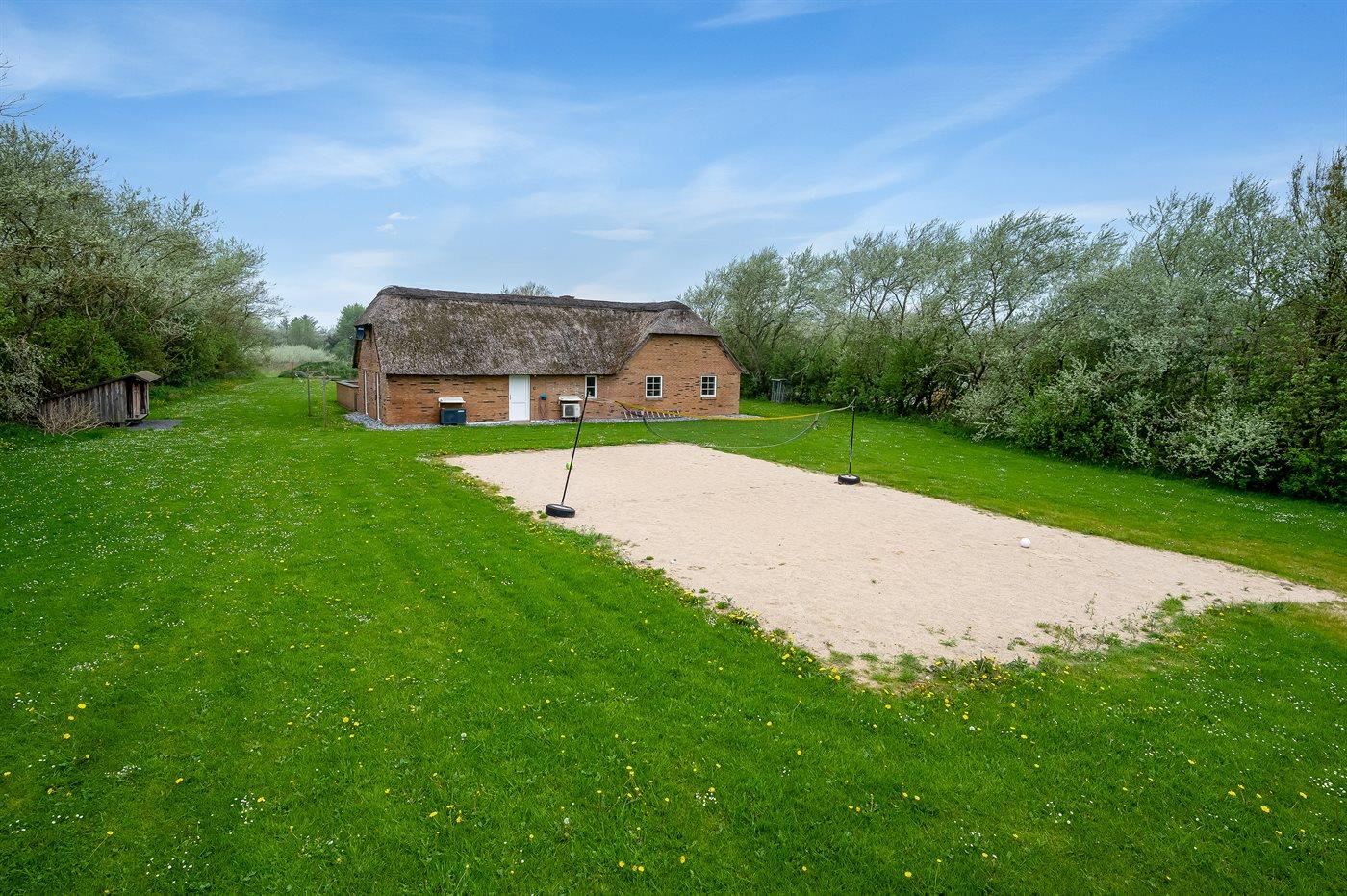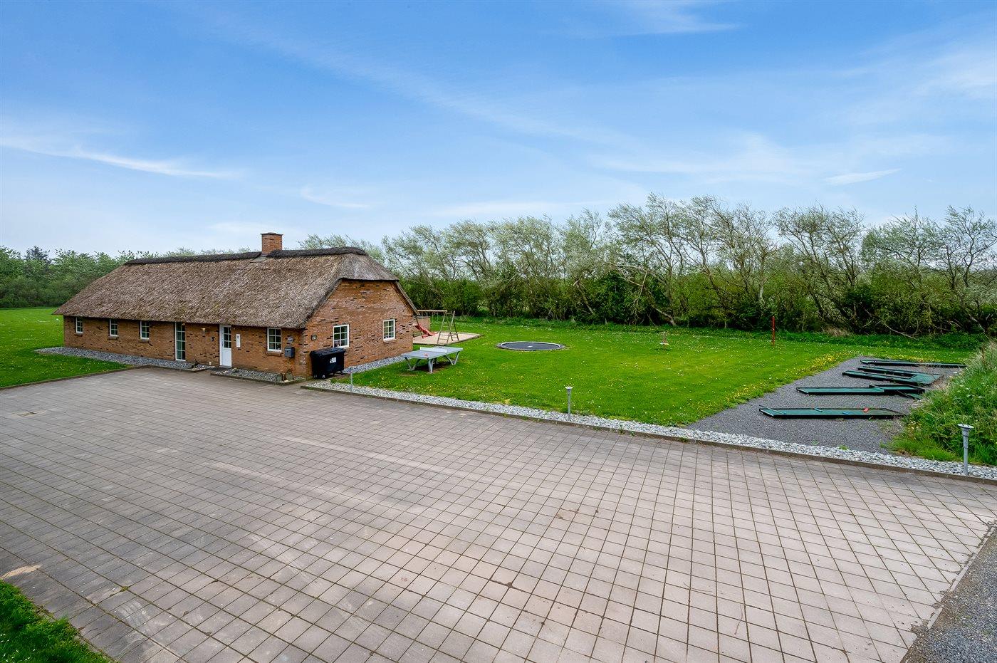Schönes, geräumiges Ferienhaus mit einem sehr großen Grundstück und viel Platz für Sport und Spiel. Fjord, Meer, Strand, Seen und Dünenplantage befinden sich ganz in der Nähe.