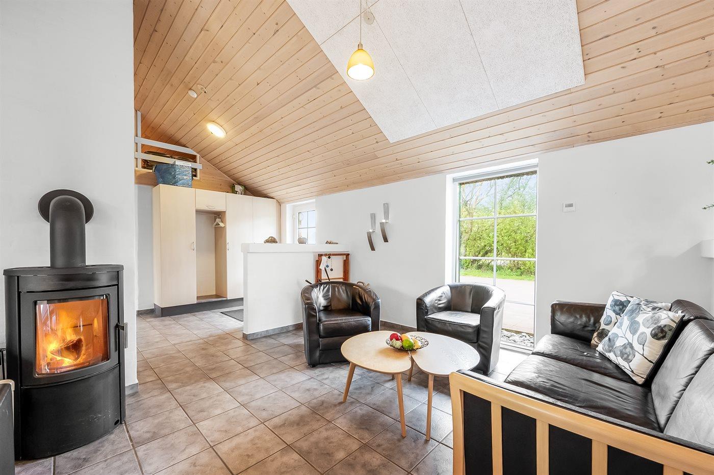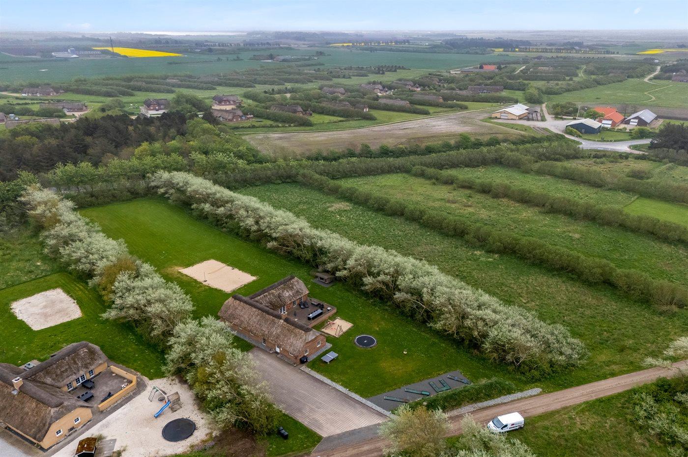 Die Ferienunterkunft liegt auf einem 5000 m² großen Naturgrundstück. Die Entfernung zum Meer beträgt 1600 m. Die Entfernung zum Fjord beträgt 5000 m. Die nächste Einkaufsmöglichkeit liegt 1000 m entfernt. In einem Abstand von 18000 m gibt es einen Golfplatz. Es steht ein 50 m² Terrassenareal zur Verfügung. Schaukel. Sandkasten. Trampolin. Fußballtor. Parkplatz auf dem Grundstück.