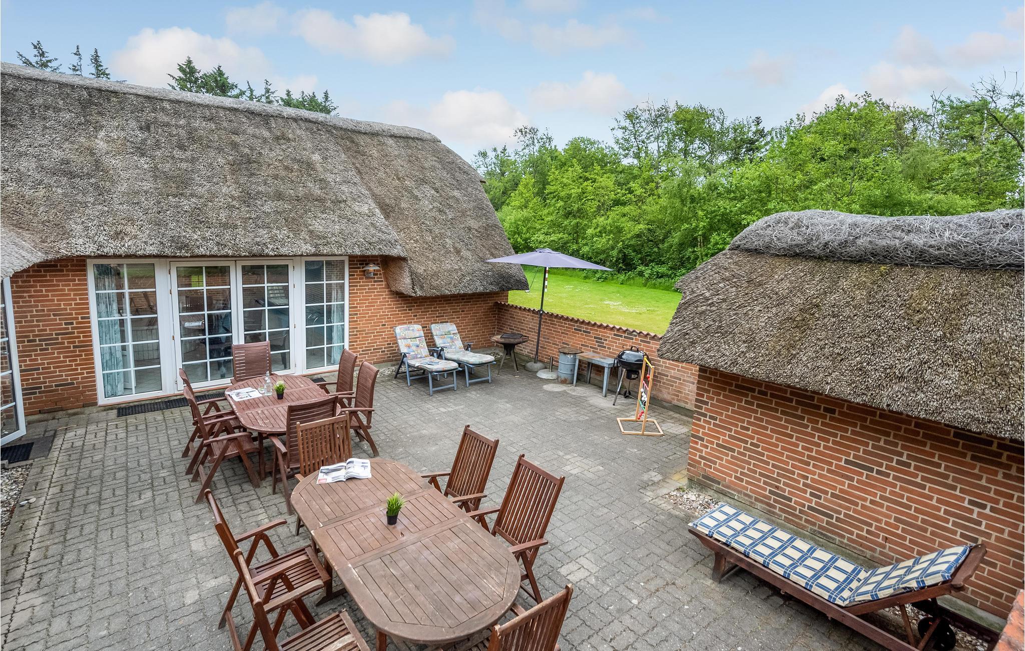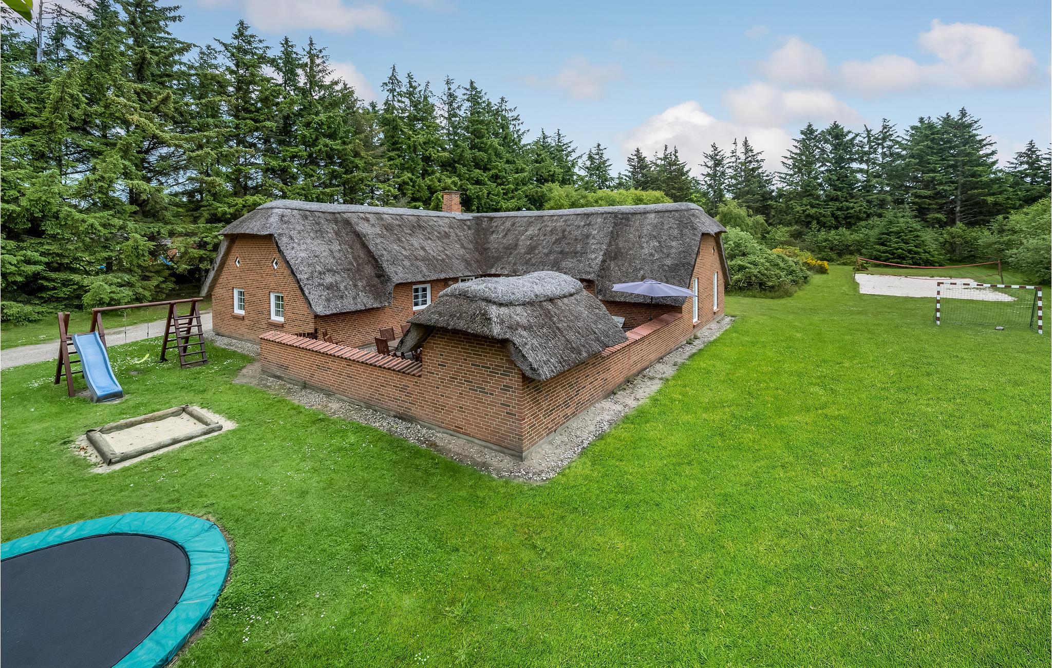 Das gemütliche Ferienhaus mit Schilfdach und Pool erwartet Sie auf einem 5000 m² großen Naturgrund. Im Garten haben Sie Platz für Spiele, Fußball und mehr. Das Haus liegt in einem ruhigen Gebiet, nicht weit von der Nordsee. Die Gegend lädt zum Wandern und Radfahren. Im Haus findet auch eine große Familie Platz zum Relaxen oder Aktivsein. Es gibt 6 Schlafzimmer, 3 Badezimmer und im Poolbereich sind Whirlpool und Sauna ebenfalls vorhanden. Die große Wohnküche ist ein hervorragender Versammlungspunkt. Richtig gemütlich haben Sie es beim Kaminofen, der auch an kühlen Abenden für eine gute Stimmung sorgt. Die große, sichtgeschützte Terrasse beherbergt Gartenmöbel. Husby ist perfekt für Naturliebhaber, es gibt ein Wandergebiet, einen Badesee, Meer und Dünen. Der im Sommer aktive Ferienort Søndervig liegt nur 20 km entfernt (Bowlingcenter, Fitnesscenter, Geschäfte, Supermarkt, Restaurants). In der anderen Richtung liegt 12 km weit weg Thorsminde, ein altes Fischerdorf. Nehmen Sie die Angelausrüstung mit, hier beißen die Fische gut.