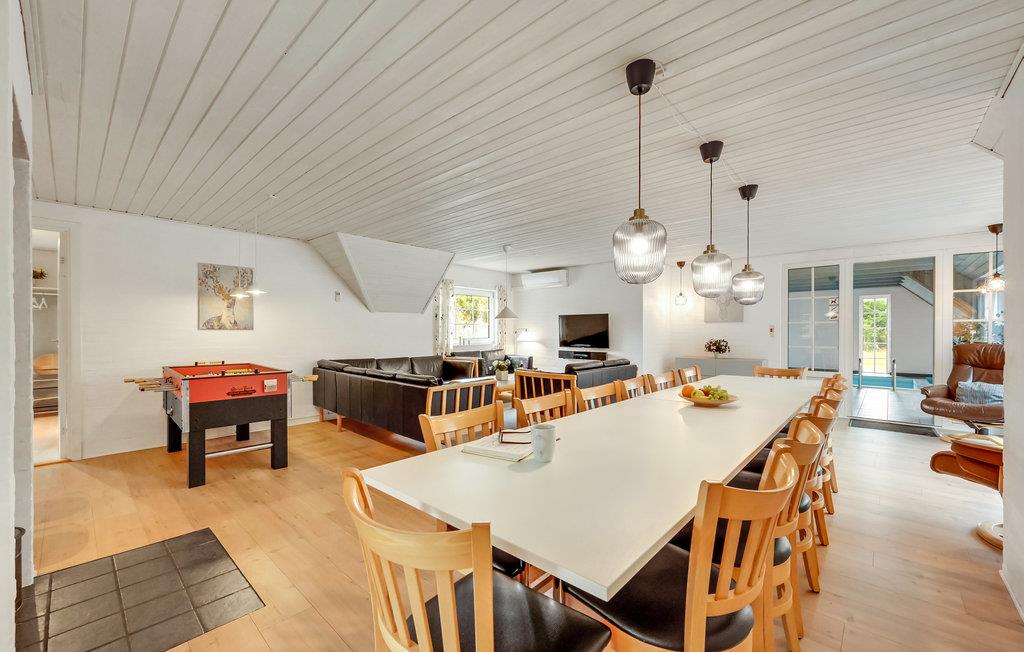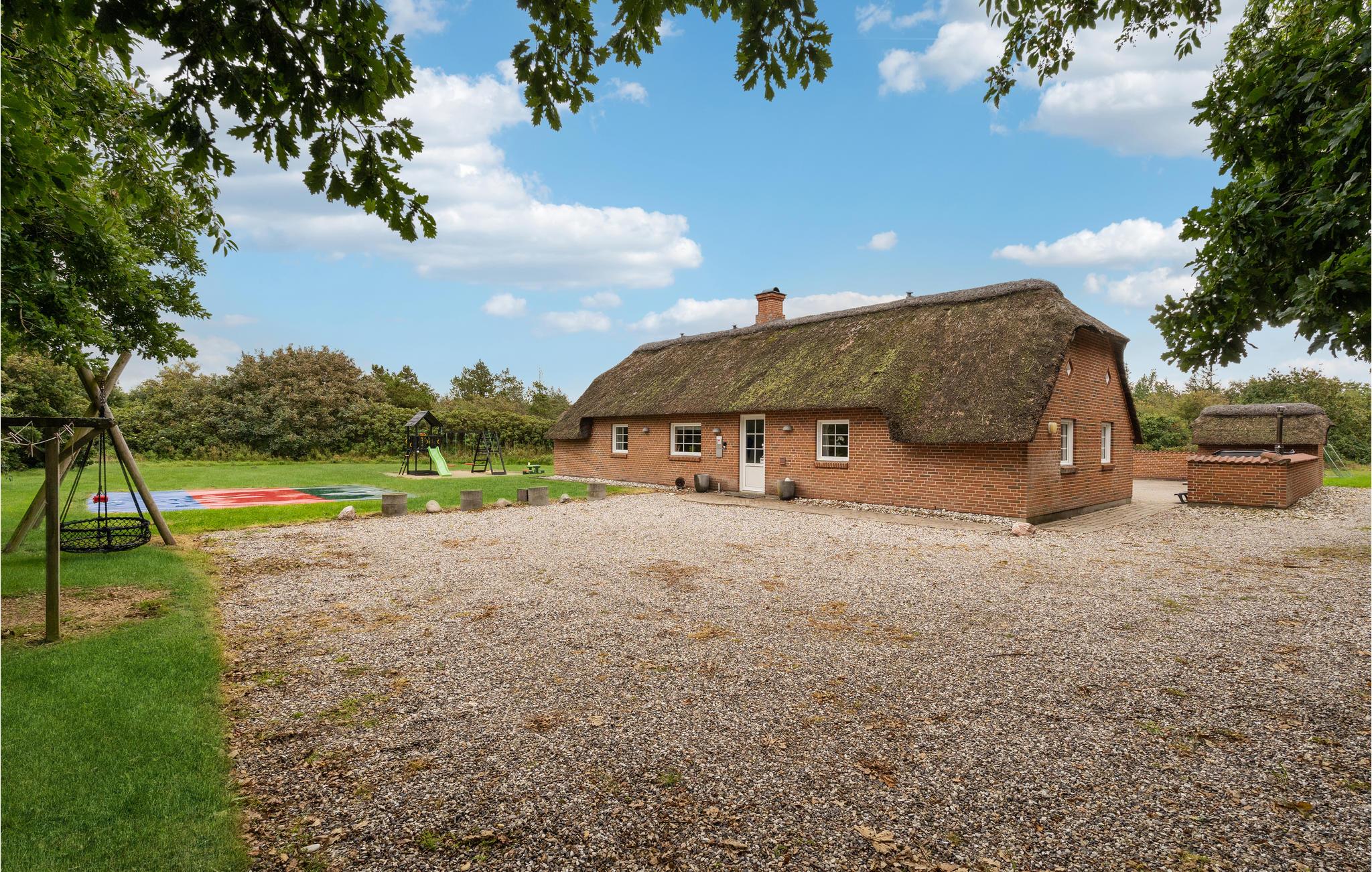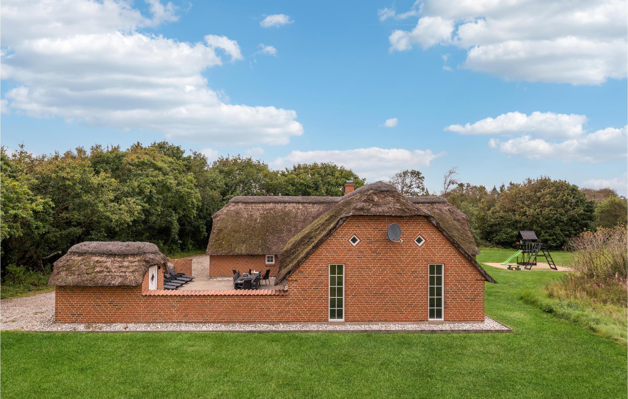 Auf einem großen Grundstück in einem alten Dünen- und Plantagengebiet zwischen Søndervig und Thorsminde liegt ein für die Umgebung typisches, rustikales, reetgedecktes Luxushaus mit Pool. Im Haus gibt es sechs Schlafzimmer, drei Badezimmer und eine gemütliche Küche, die zum Wohnraum offen ist. Direkt davor erwartet Sie dann die offene Terrasse, sie ist von einer Windschutzmauer umgeben. Ein Pool mit Rutsche, die Sauna und der Whirlpool werden Sie auch schöne Stunden erleben lassen. Die Umgebung mit ihrem reichen Tierleben ist sehr gut für lange Wander-, Fahrrad- oder Joggingtouren auf den gekennzeichneten Pfaden, die u.a. an die Nordsee mit einem guten Badestrand führen geeignet. Unmittelbar vor dem Meer befindet sich ein ganz unberührtes Dünengebiet. In der Umgebung gibt es auch kleinere, abwechslungsreiche Häfen, wo Sie die Ruhe genießen und mit den Kindern Spielplätze besuchen können. In Husby gibt es einen Hundewald. Erleben Sie auch den schönen Hafen vom Fischerdorf Thorsminde. Dort liegt auch das Strandgutmuseum Sct. George.