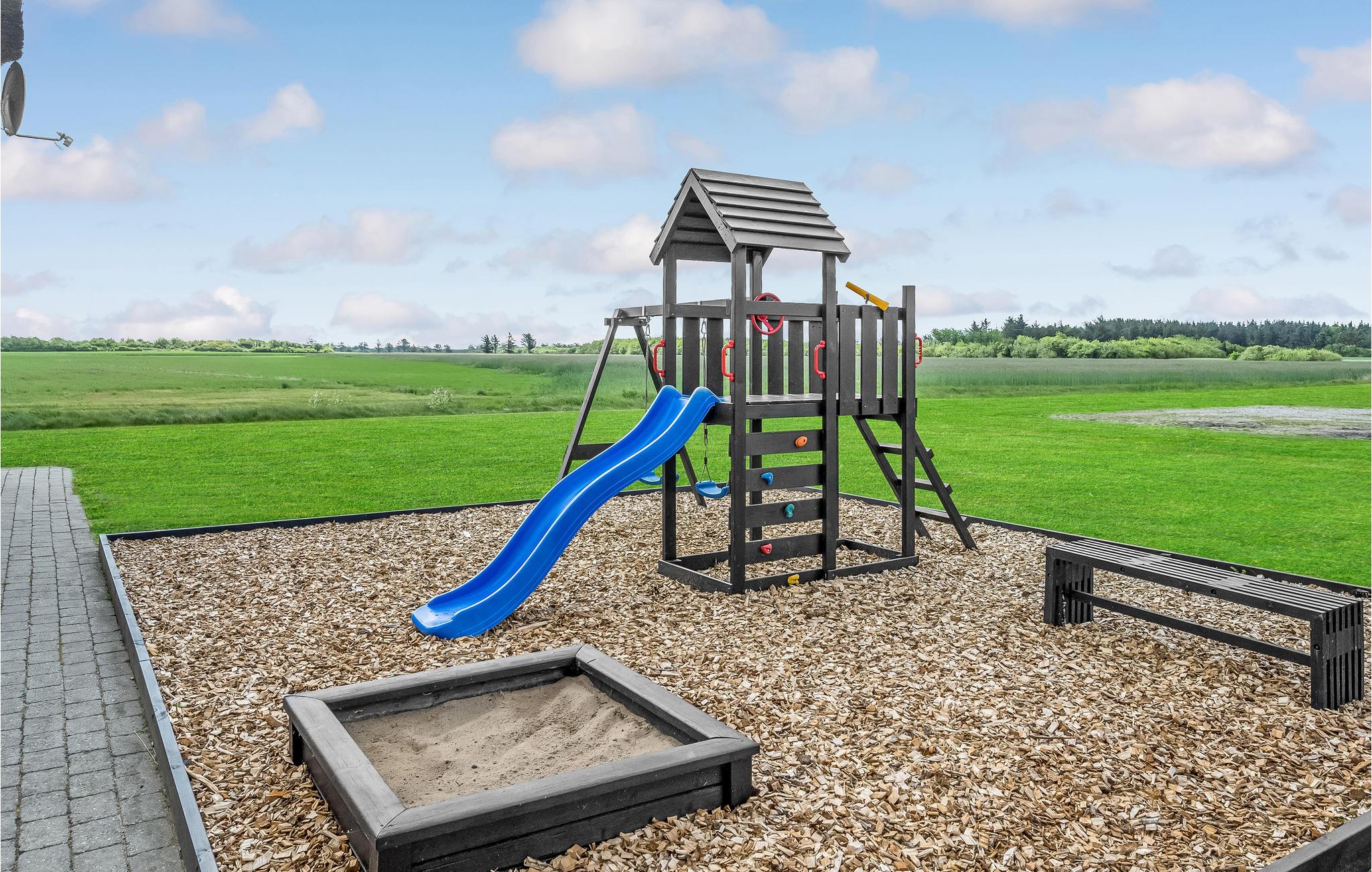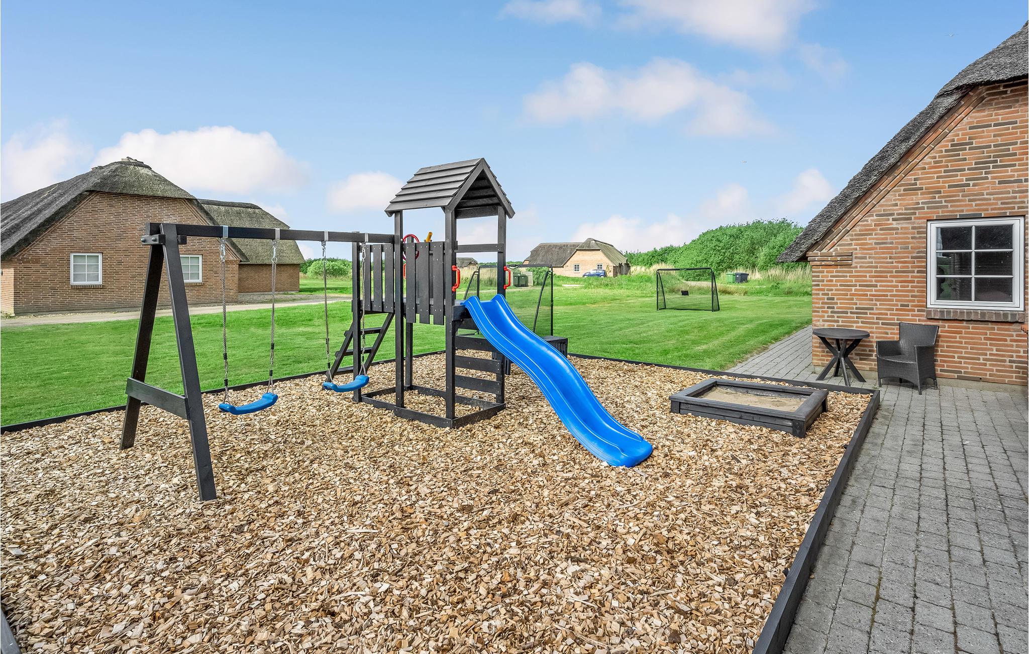 Auf dem großen Naturgrundstück gibt es für Kinder eine Schaukel und einen Sandkasten. Entspannen Sie in bequemen Gartenmöbeln auf der Terrasse, während auf der Terrasse leckere Gerichte zubereitet werden. Den Sandstrand erreichen Sie von hier aus bequem zu Fuß, und auch Angelmöglichkeiten befinden sich nicht weit vom Ferienhaus.
