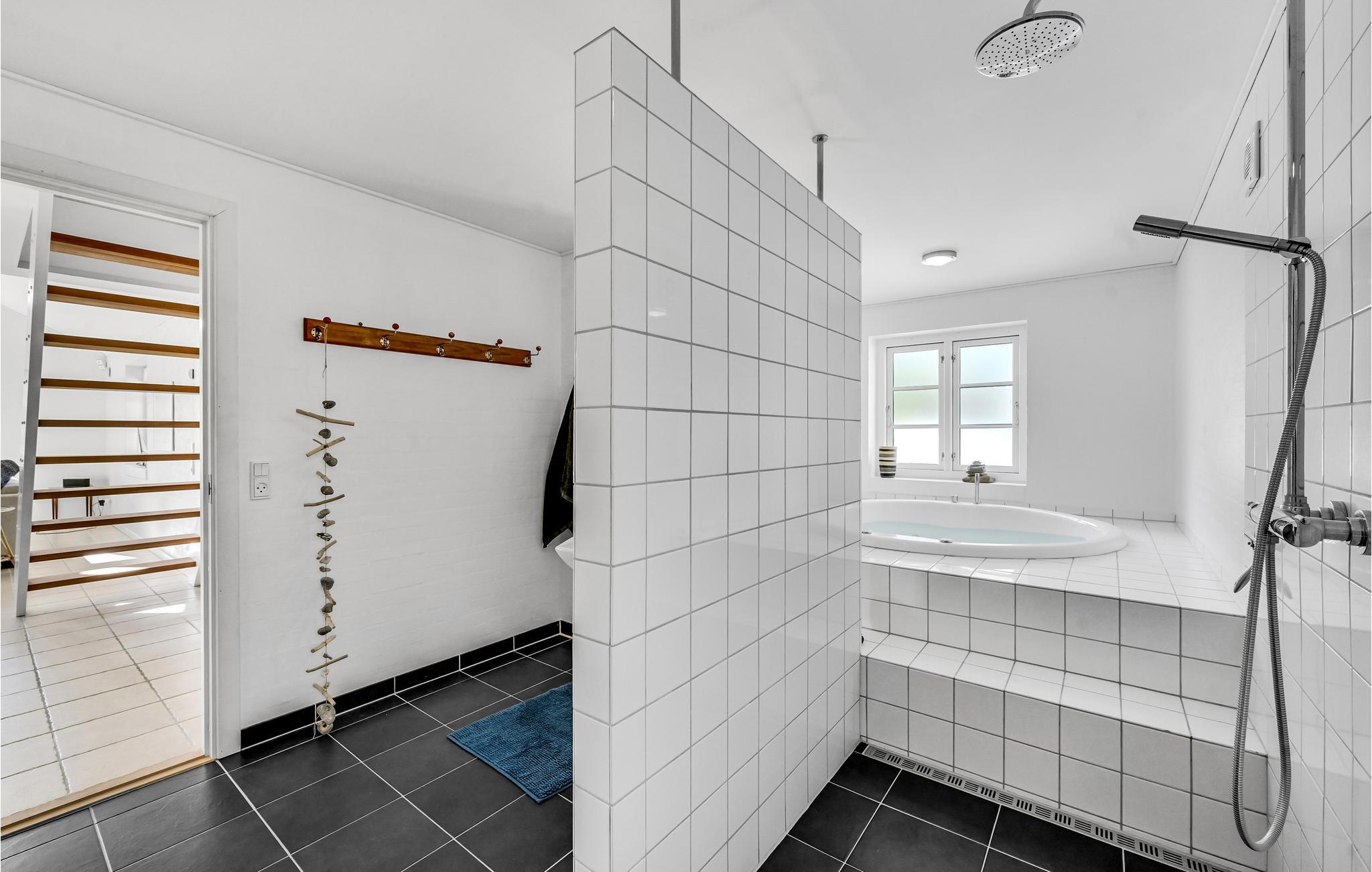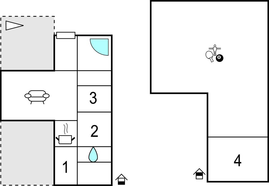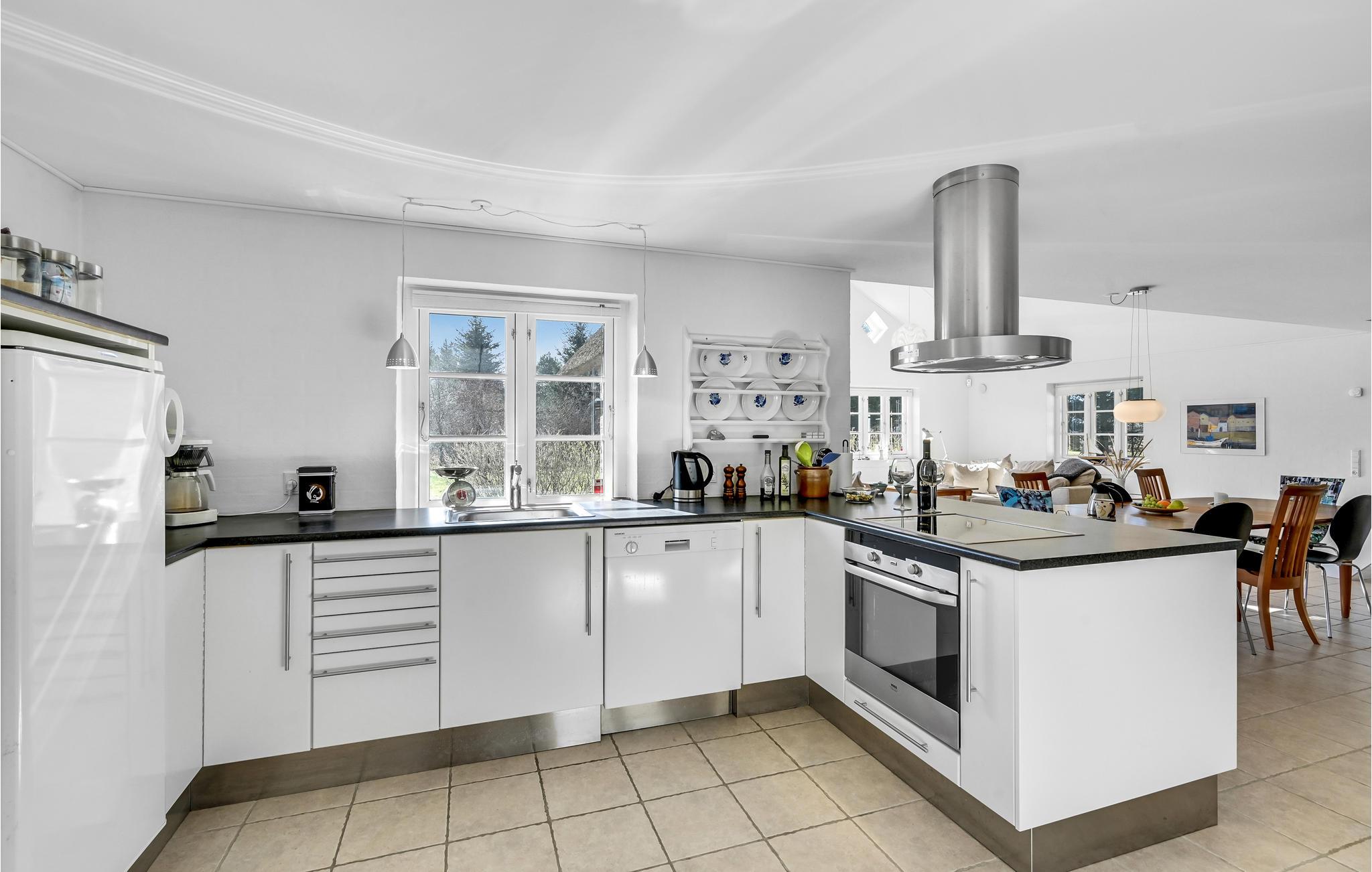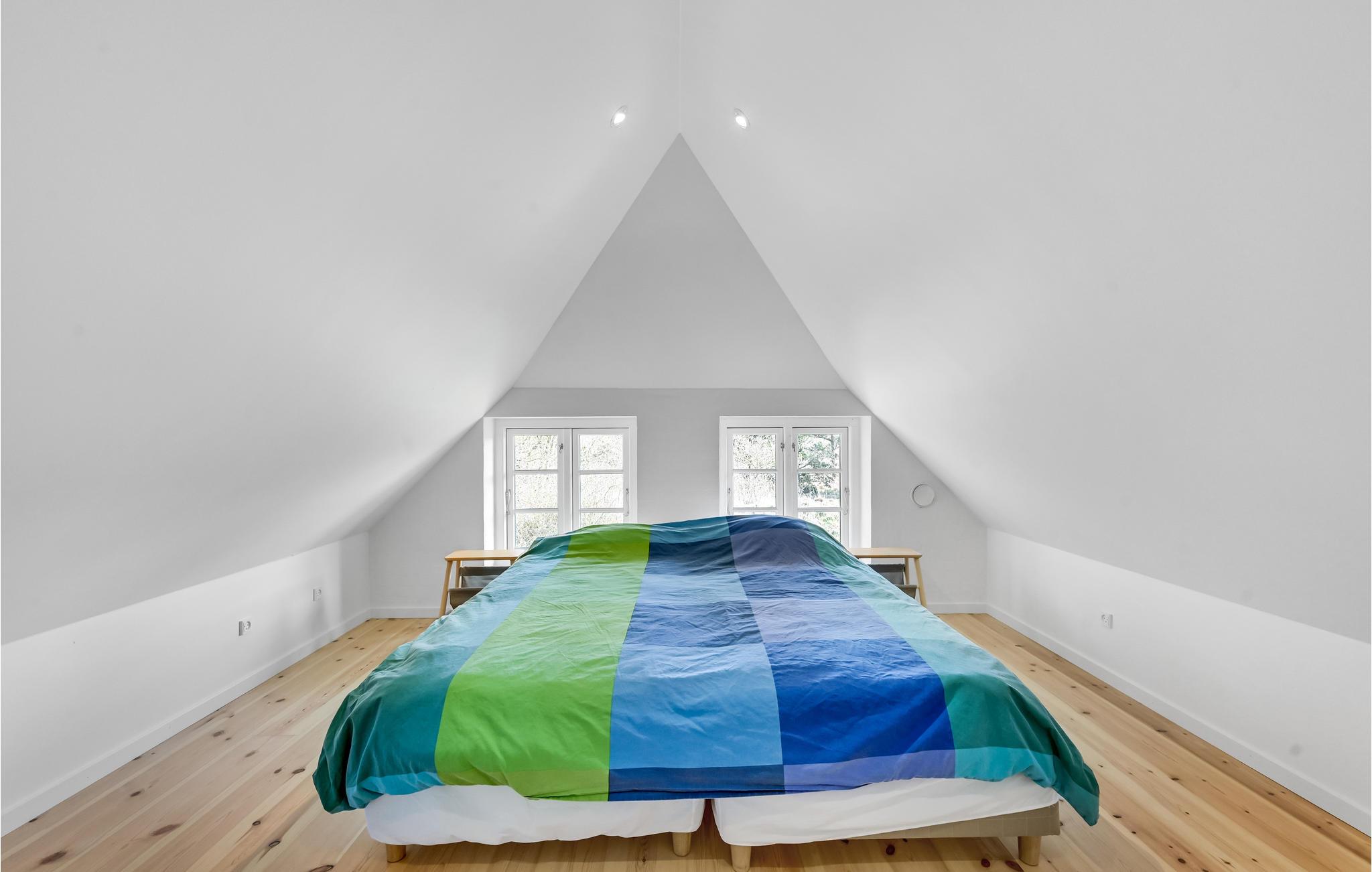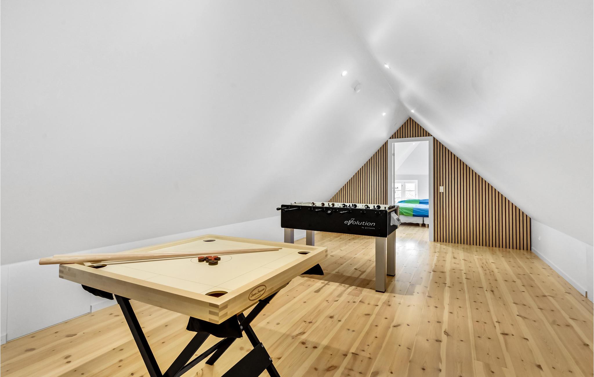 Die helle Küche liegt in offener Verbindung zum Esszimmer und dem Wohnzimmer mit Pelletofen. Im Erdgeschoss erwarten Sie eine Fußbodenheizung, gut ausgestattete Küche und ein netter Wohnbereich für Gesellschaftsspiele. Das Badezimmer wird Sie mit einem Whirlpool zum Entspannen überraschen. Über die Treppe erreichen Sie das Dachgeschoss, mit Aktivitätstischen und eine Fernsehecke.