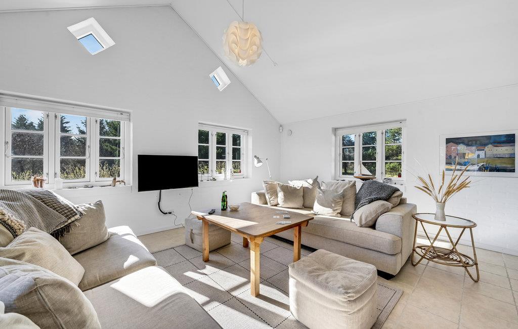 Treten Sie ein in ein geräumiges Ferienhaus mit Reetdach und gemütlichem Interieur.