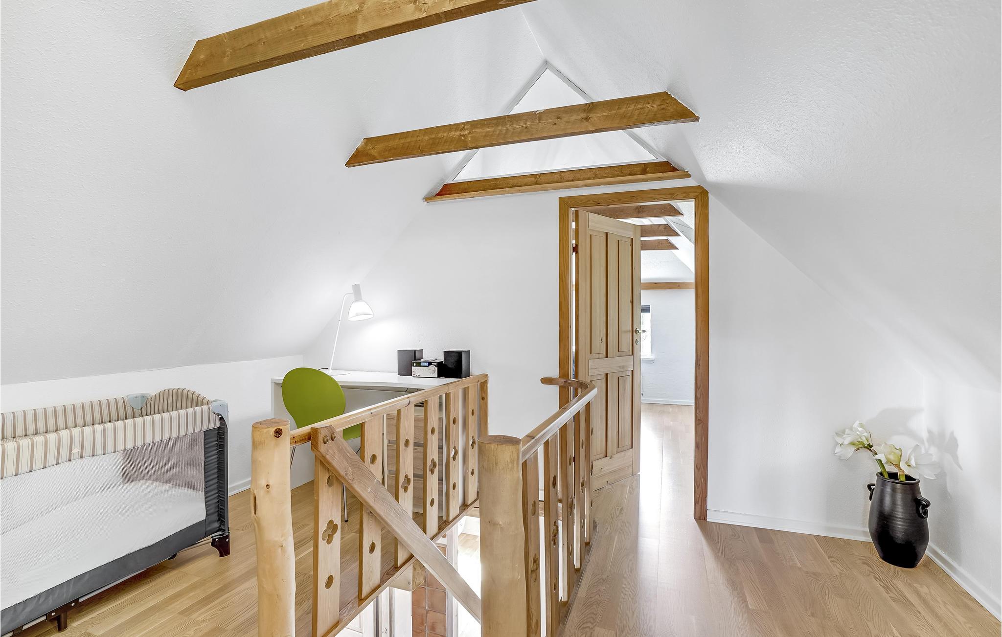 Die charakteristischen Holzdecken und freien Balken sehen schön aus und machen das Haus richtig gemütlich.
