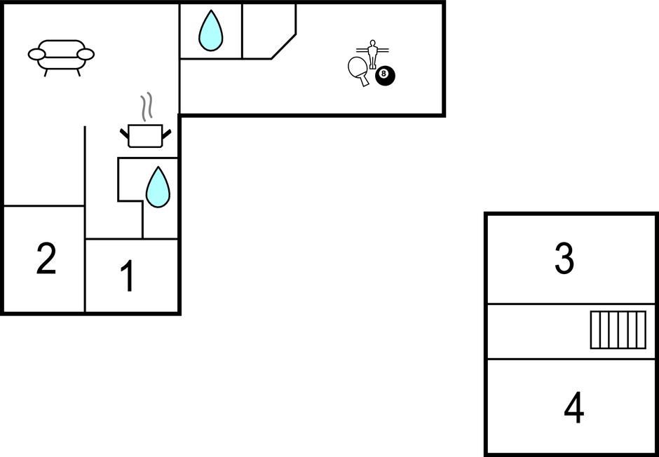 Das Haus verfügt über mehrere Schlafzimmer, eien Sauna und einen Aktivitätsraum mit Dart, Kicker usw.
