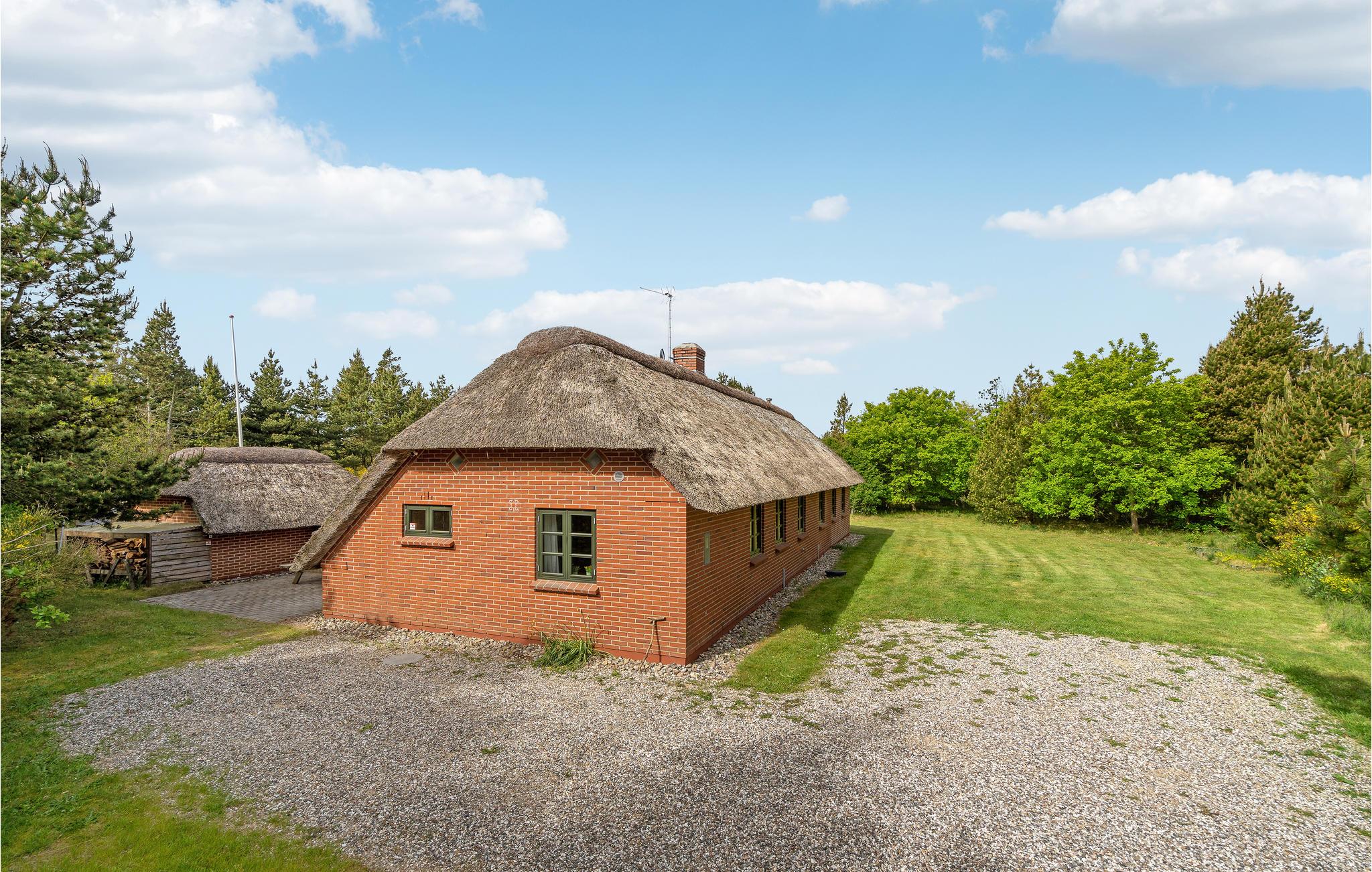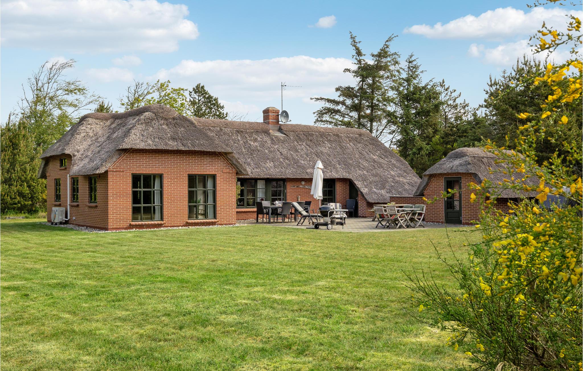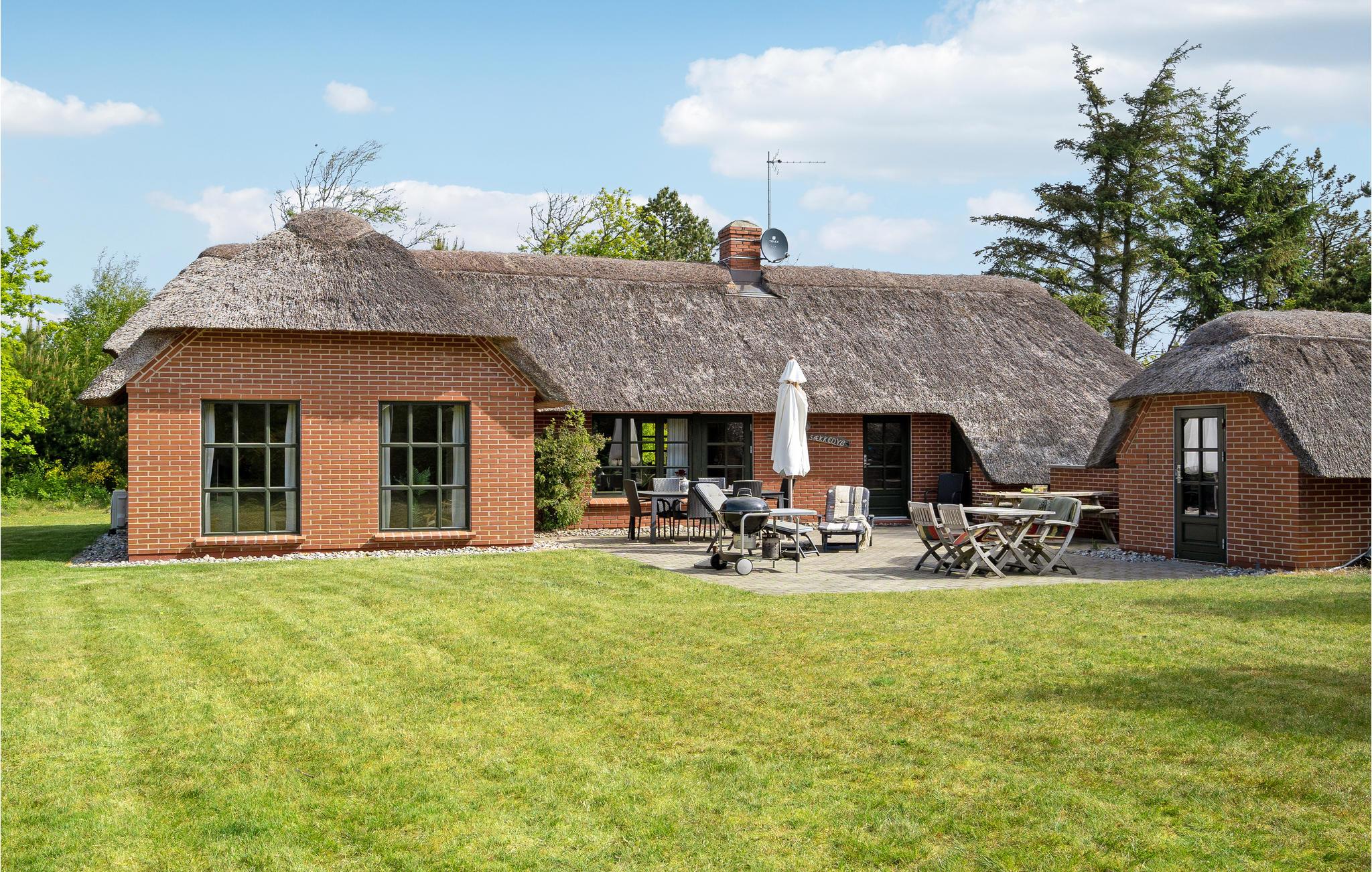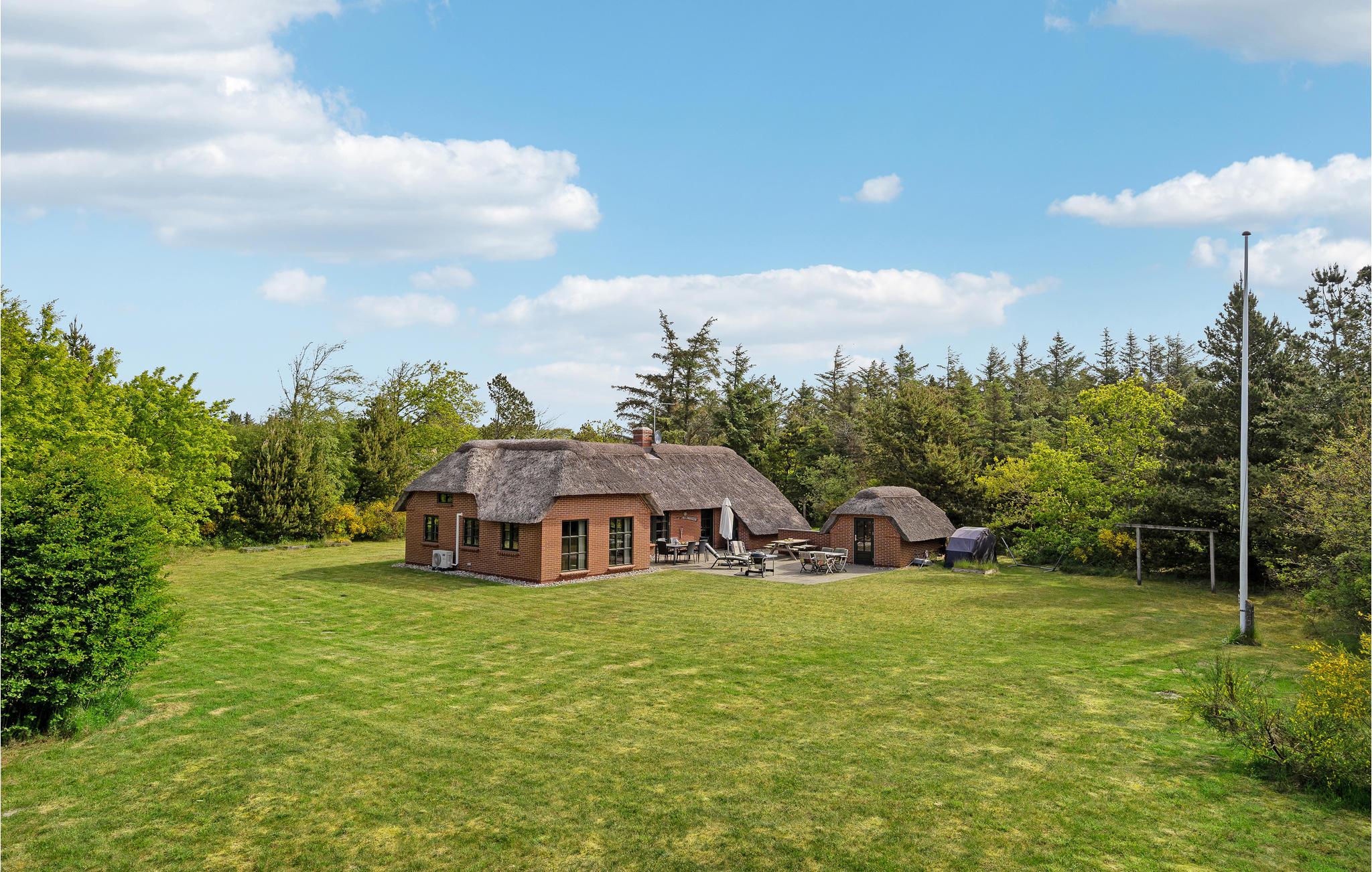 Gemütliches Ferienhaus mit Reetdach nahe dem Nordseestrand in Dänemark, ideal für Naturliebhaber und Familien.