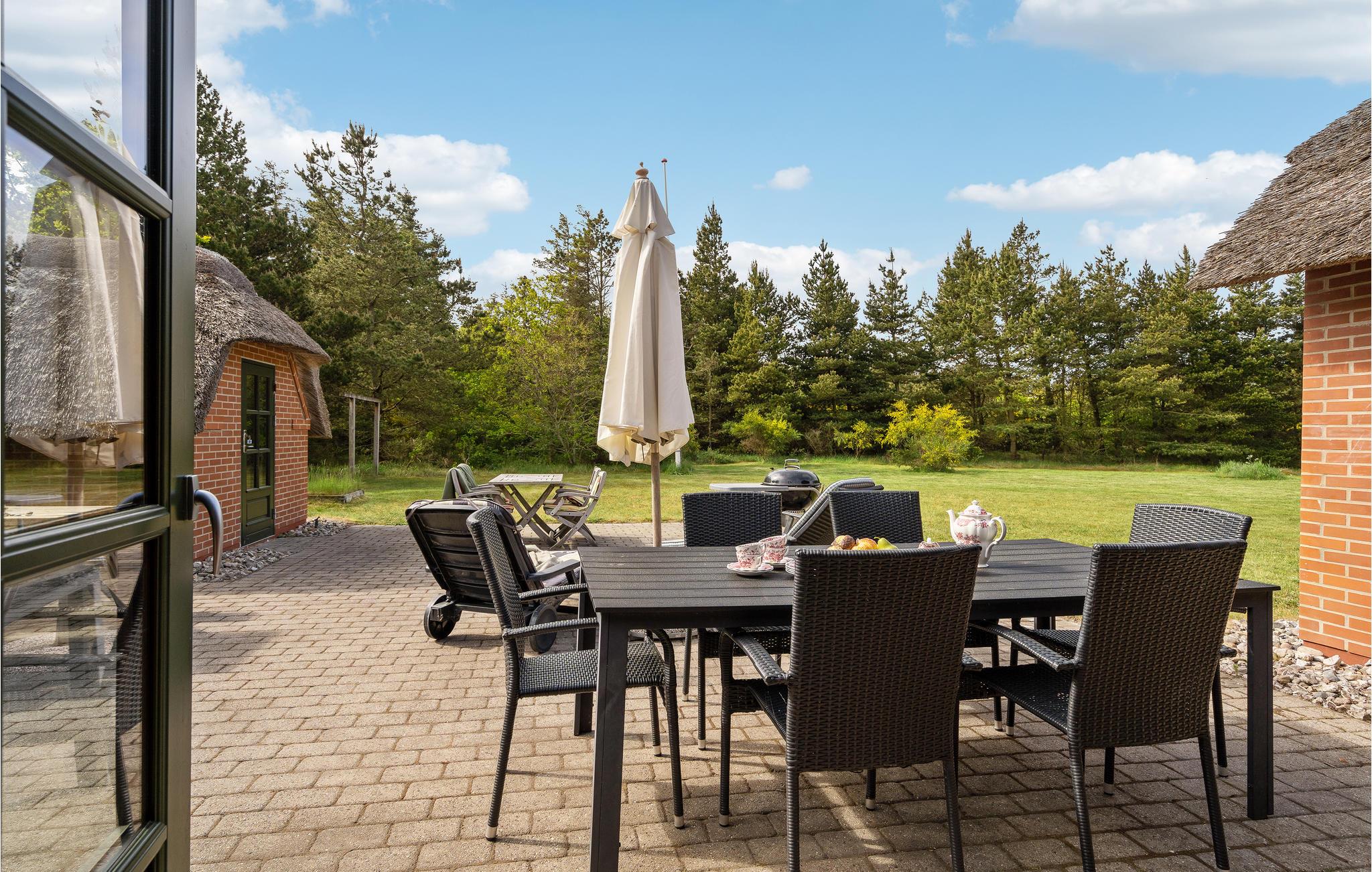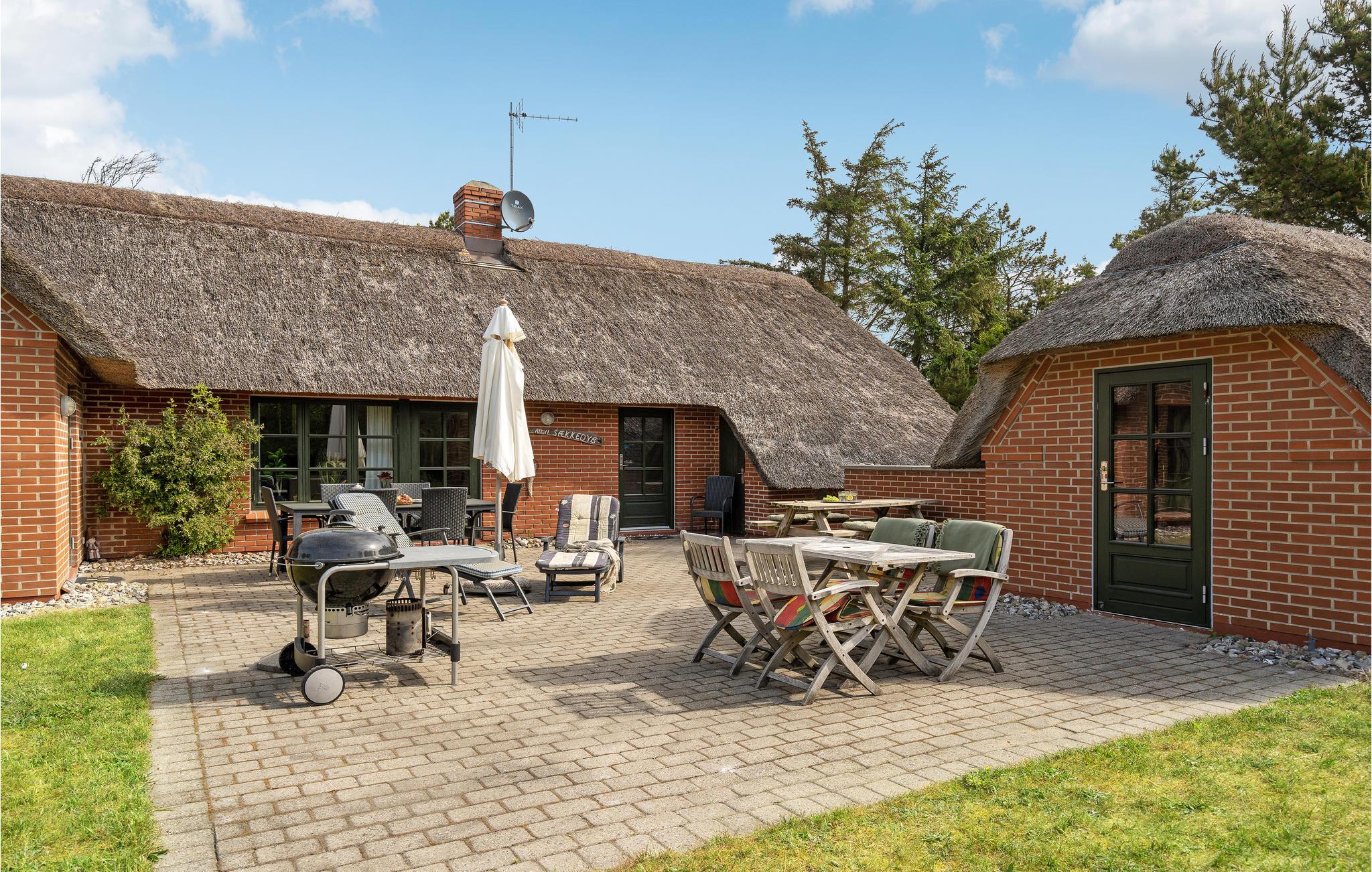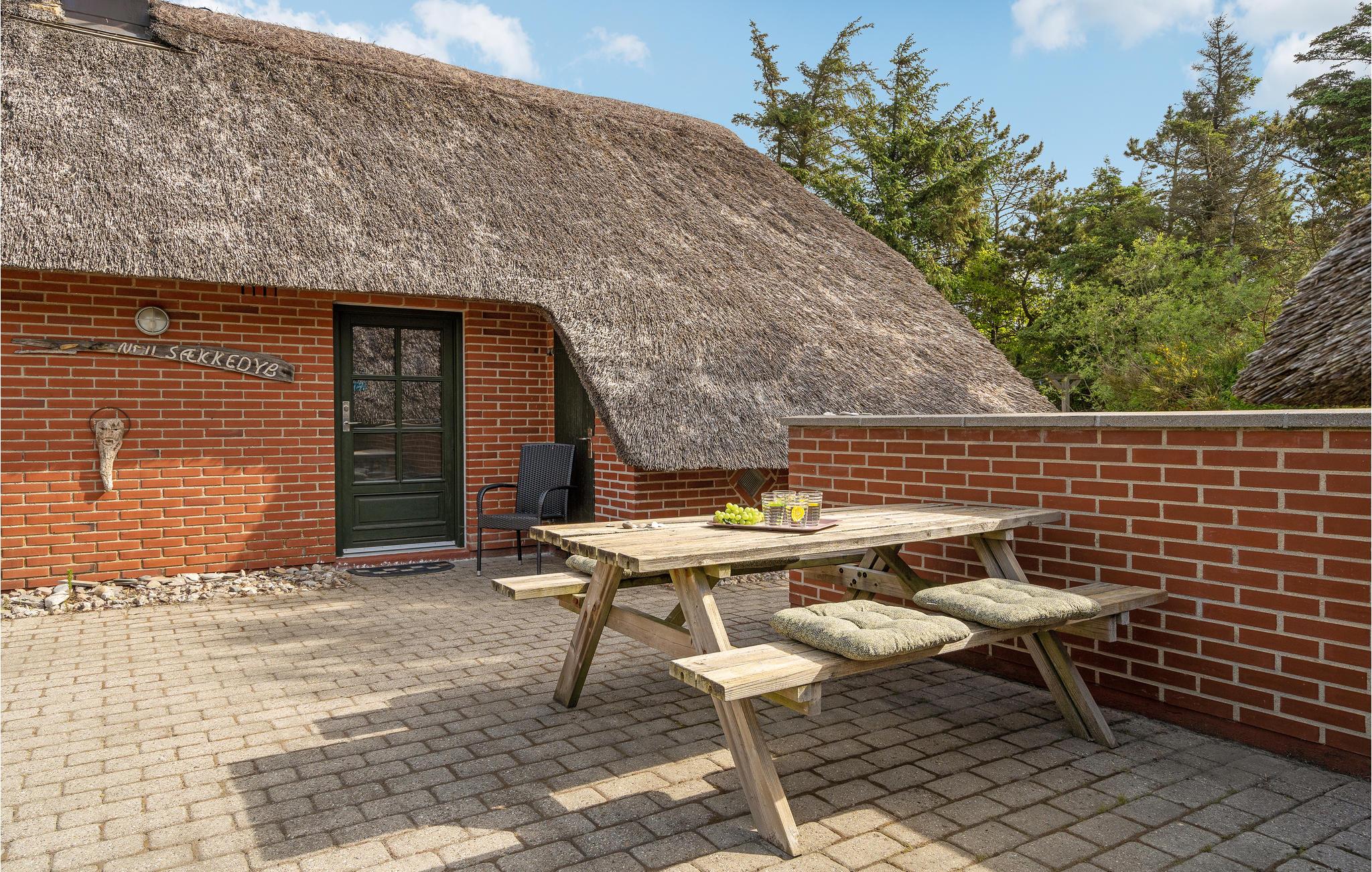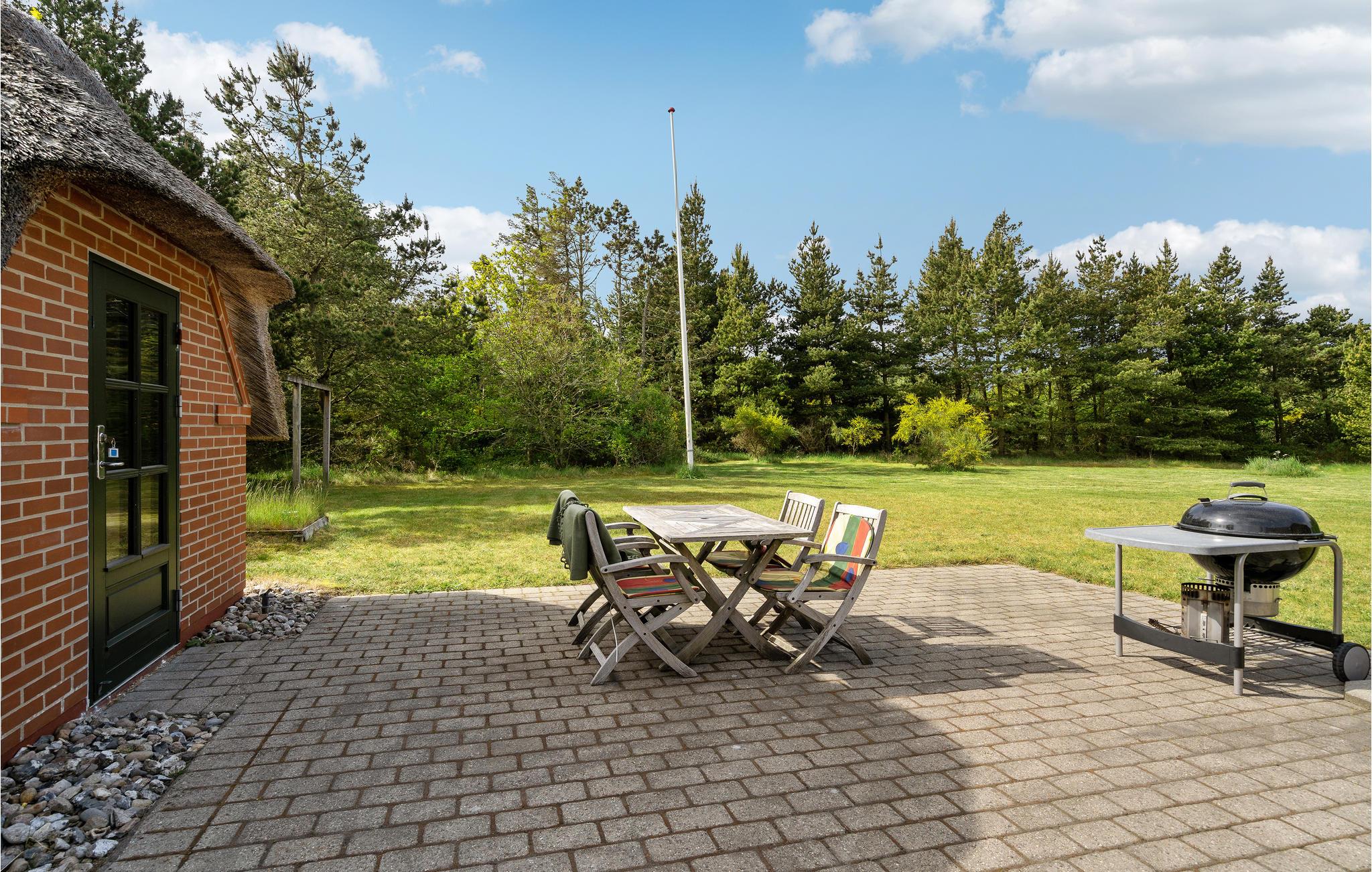 Gemütliches Ferienhaus mit Reetdach nahe dem Nordseestrand in Dänemark, ideal für Naturliebhaber und Familien.