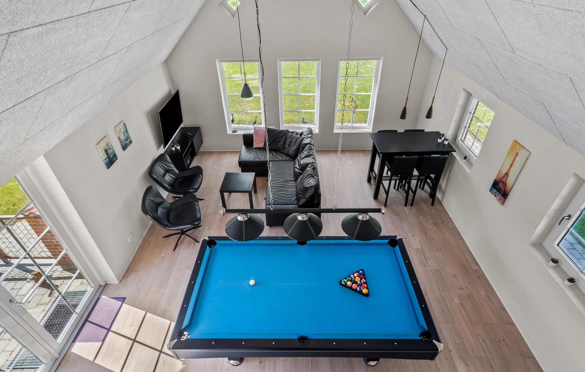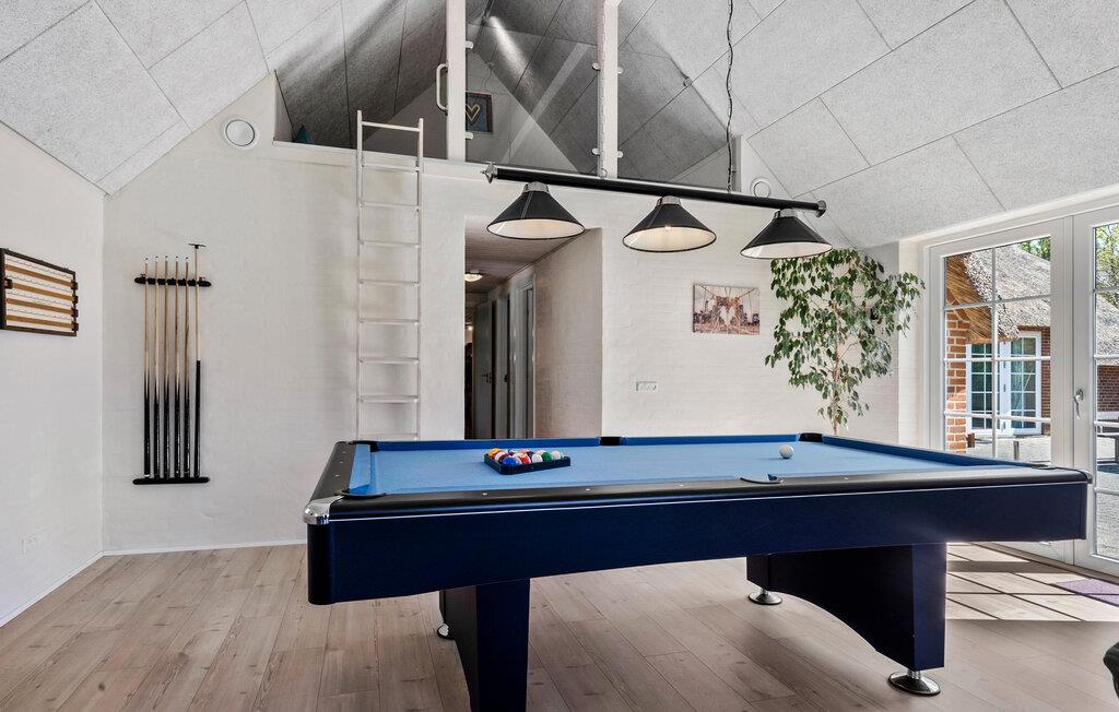 Verbringen Sie Ihren nächsten Urlaub in diesem großzügigen Ferienhaus, das behaglichen Komfort, lustige Aktivitäten und ruhige Erholung vereint. Das Haus bietet mit seiner Ausstattung ideale Bedingungen für einen gelungenen Aufenthalt mit der Familie oder Freunden. Nutzen Sie die moderne Küche mit viel Arbeitsfläche, um gemeinsam zu kochen. Nehmen Sie am langen Esstisch Platz und verbringen Sie gesellige Abende in einer der Sofaecken. Machen Sie es sich mit einem Buch gemütlich oder spielen Sie eine Partie Billard. Der Poolbereich ist ein echtes Highlight. Baden Sie in der Salzwasseranlage mit minimalem Chlorgehalt. Nutzen Sie die Wasserrutsche oder entspannen Sie im Whirlpool. Die Sauna bietet Infrarot-Wärme, unterstützt durch eine Wand aus Himalaya-Salzstein.