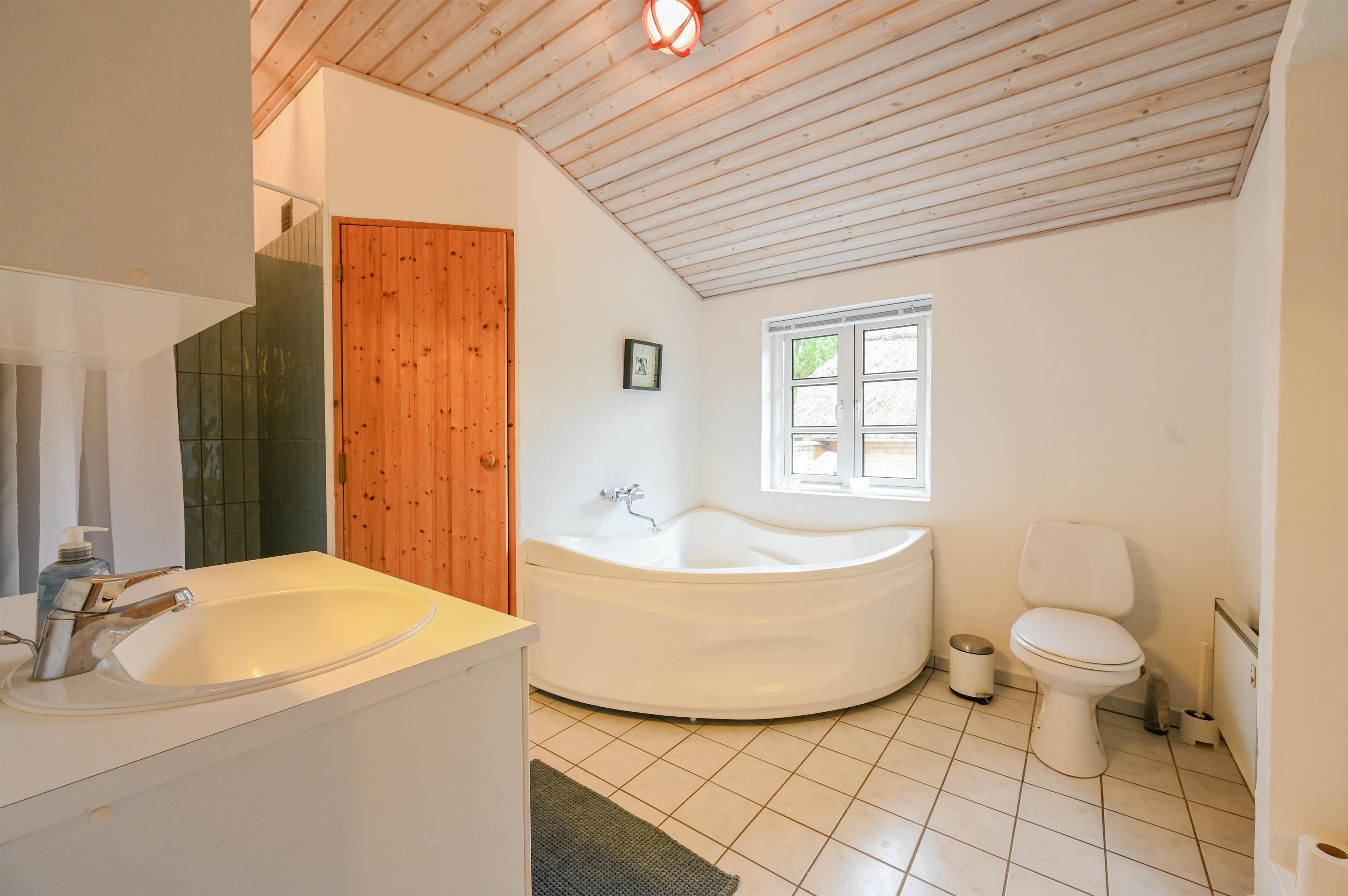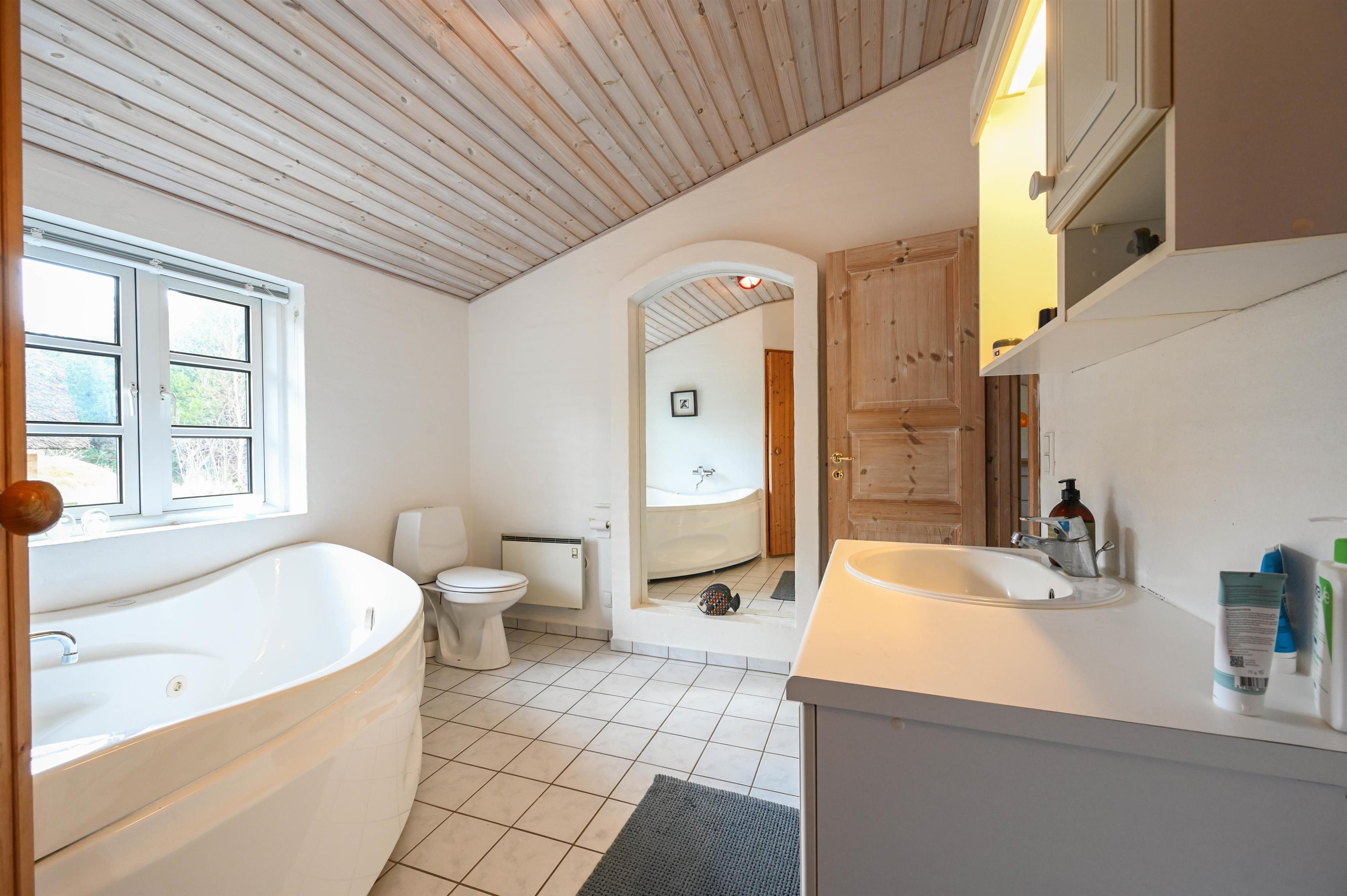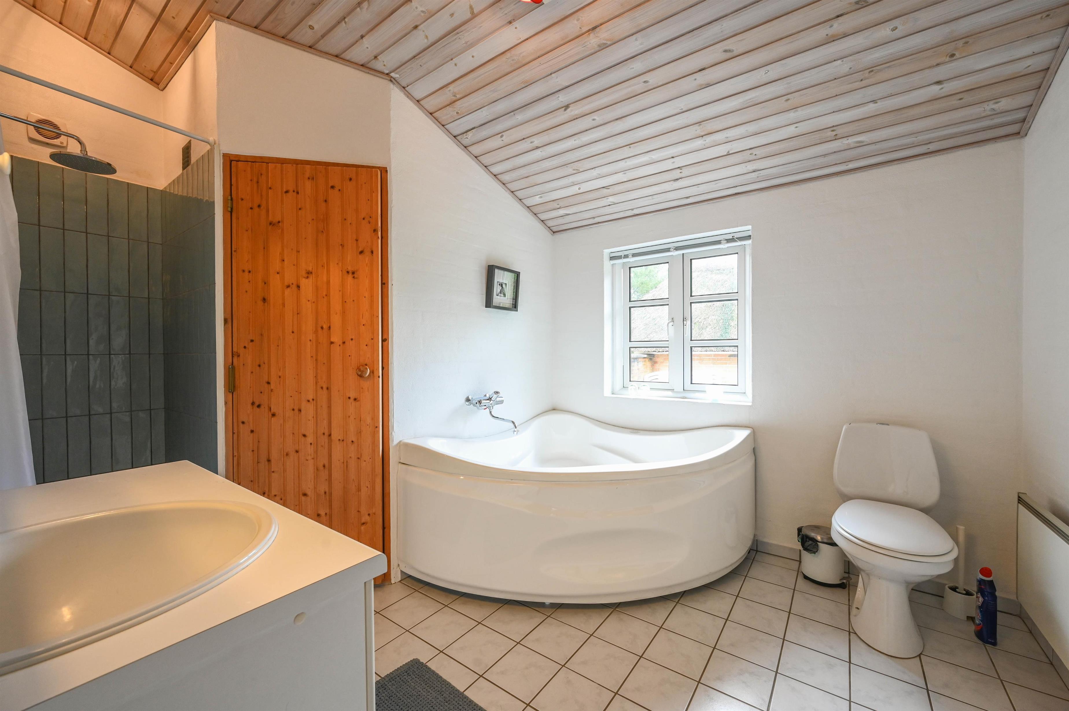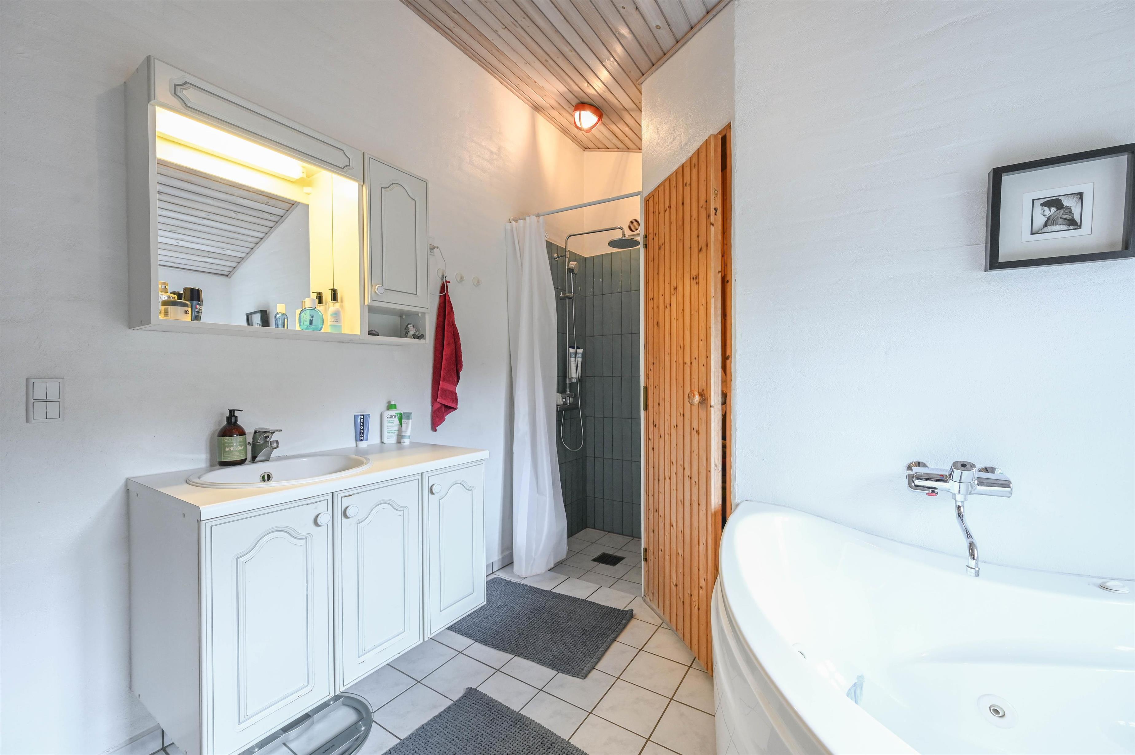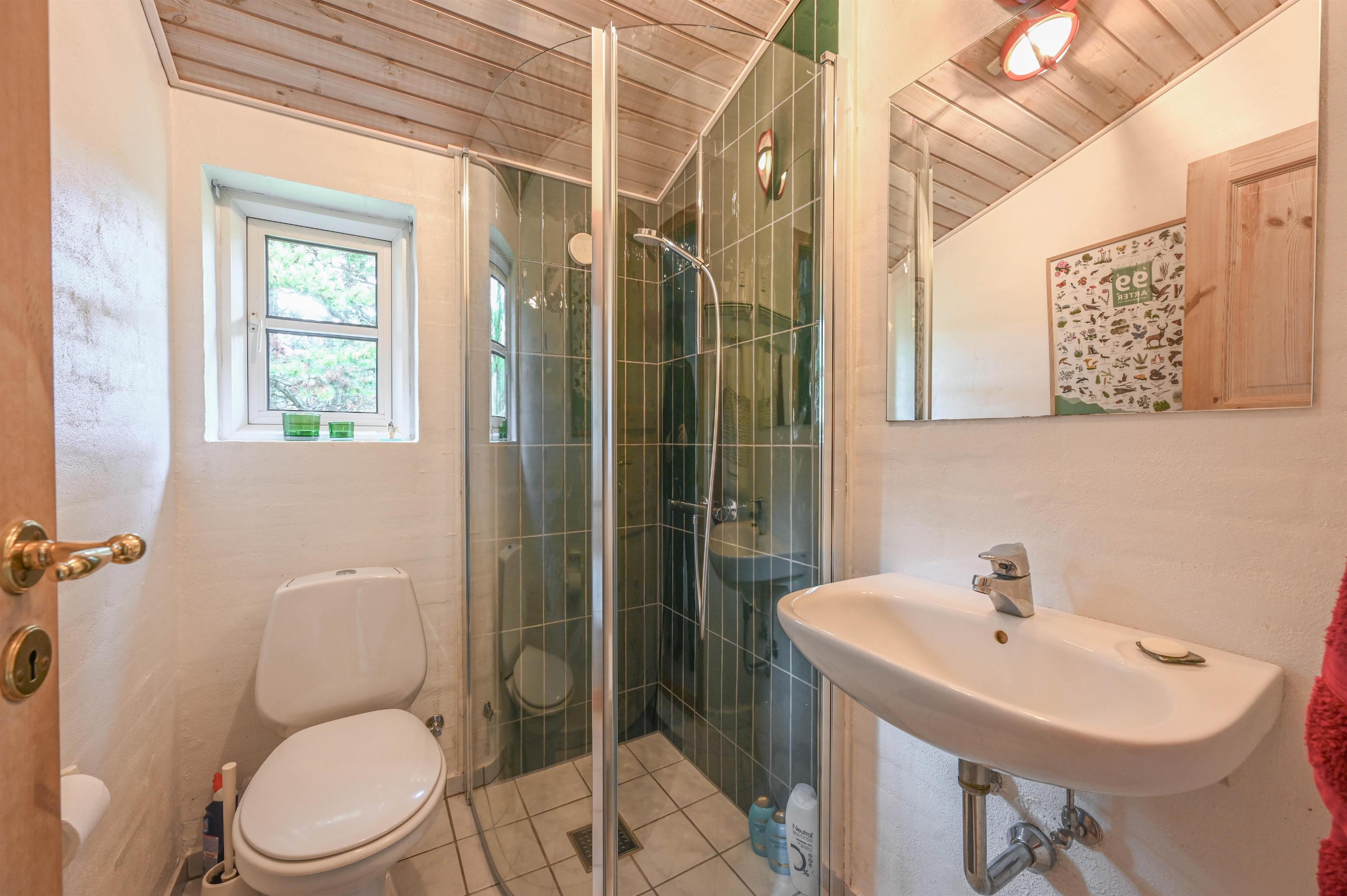 Im westlichen Teil des Hauses gibt es ein weiteres Schlafzimmer sowie ein Badezimmer mit Dusche – eine praktische Aufteilung, die Komfort und Privatsphäre für alle Gäste schafft.