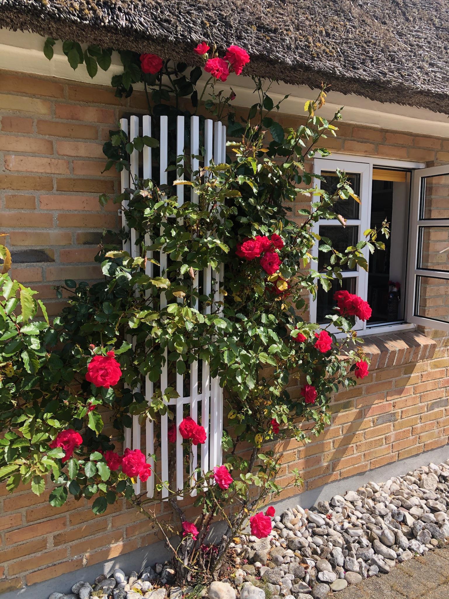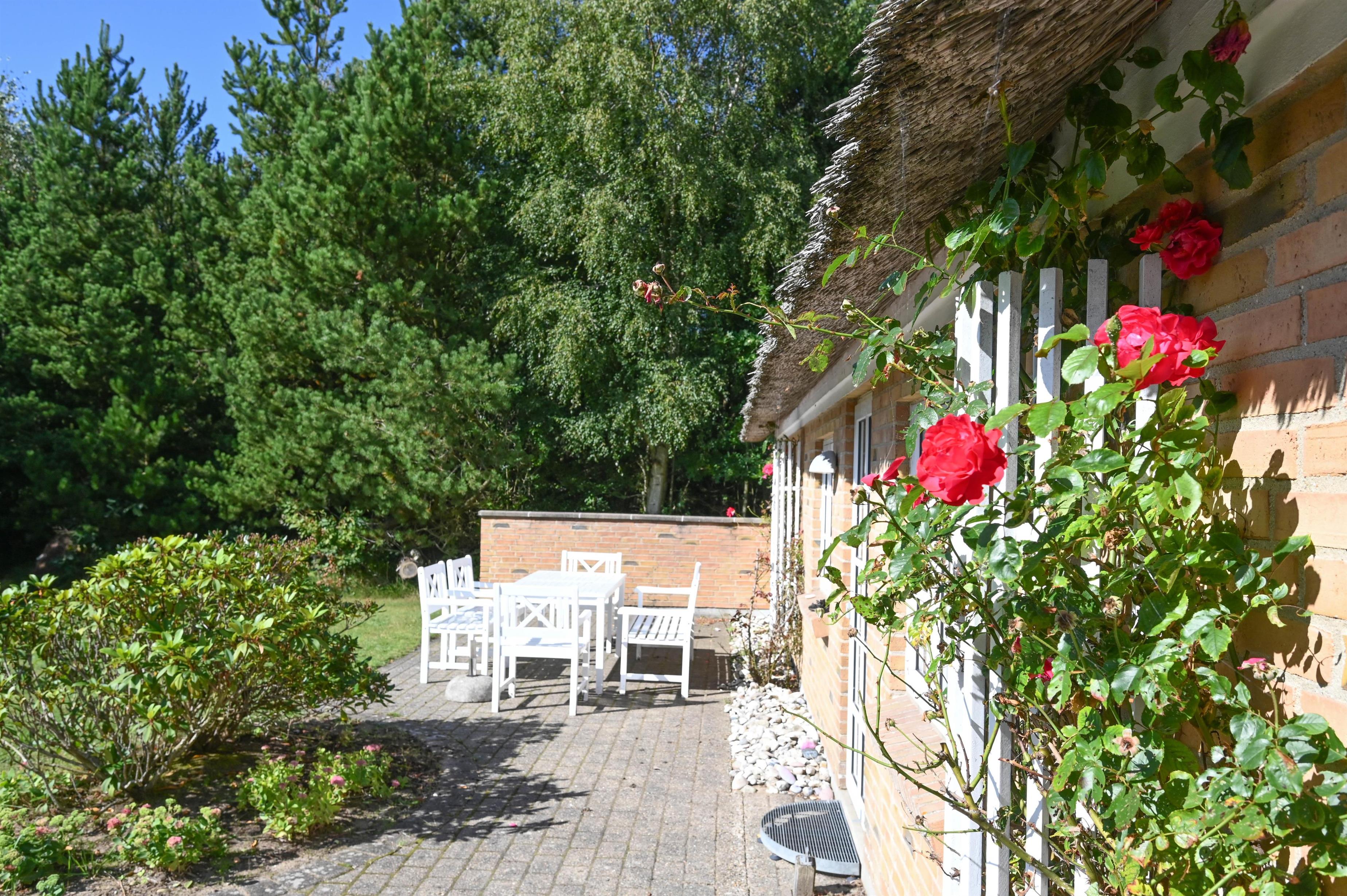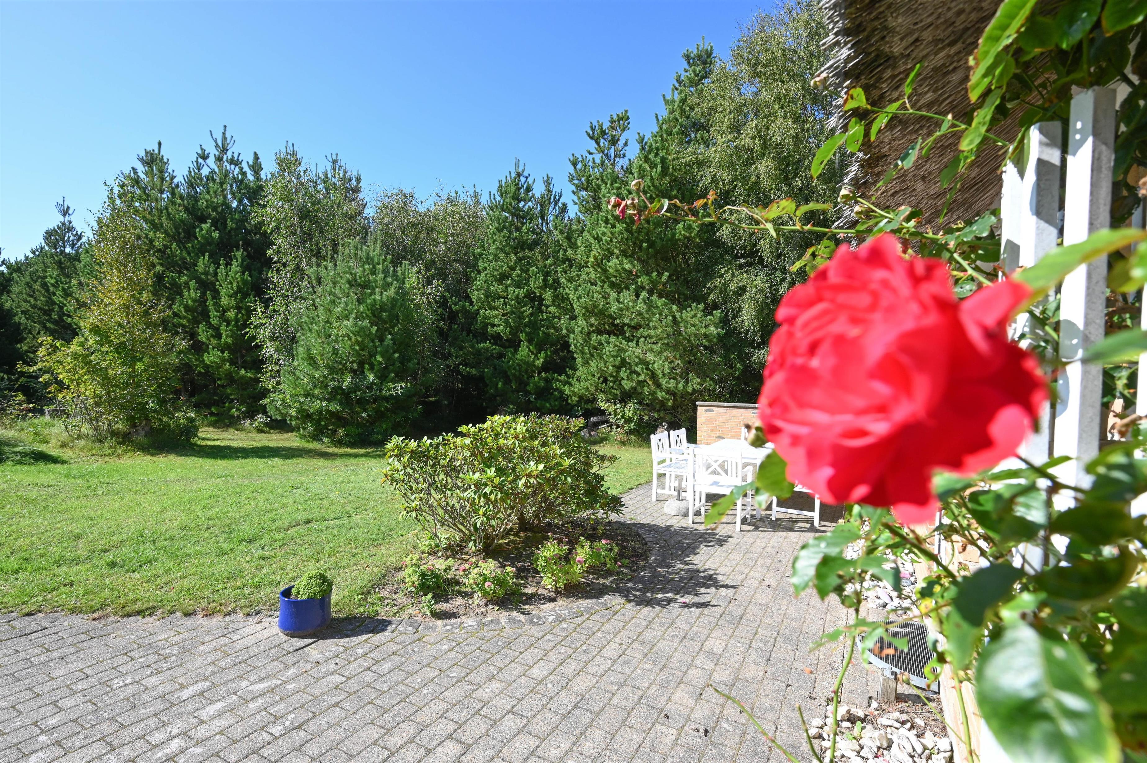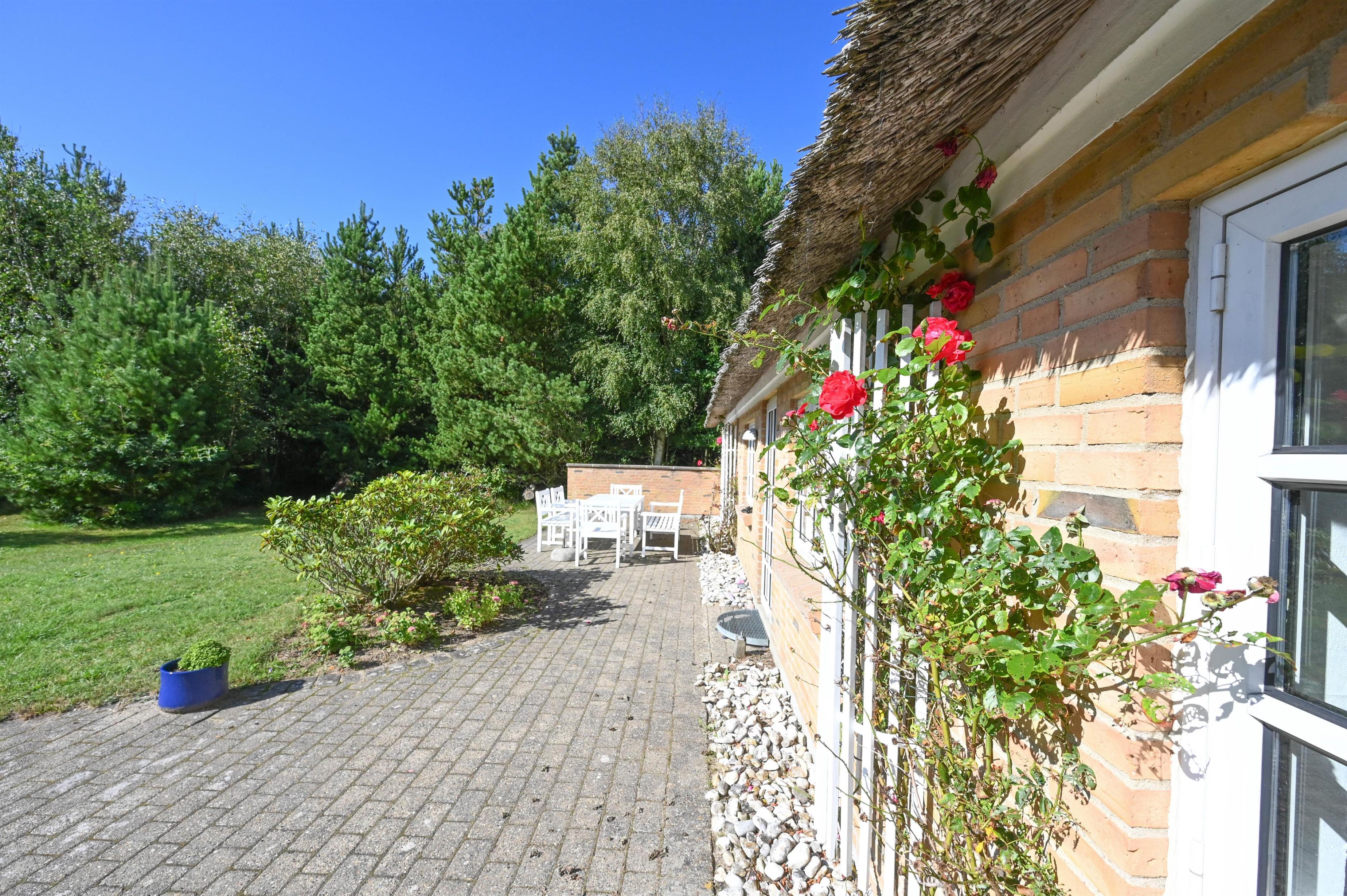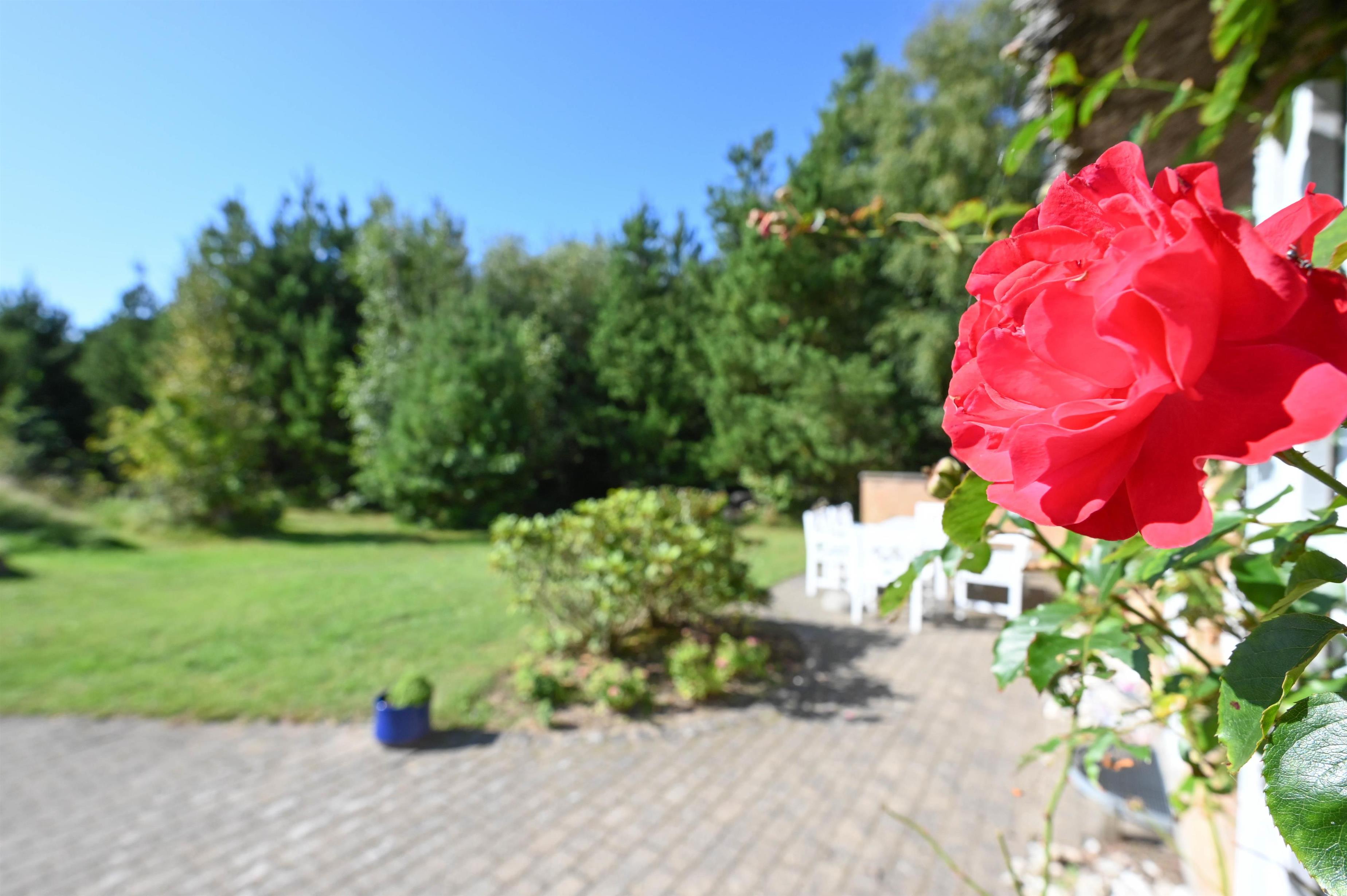 Das Haus steht auf einem großen Naturgrundstück, das Privatsphäre, Windschutz und Ruhe bietet – und von der nach Süden ausgerichteten Terrasse kannst du den ganzen Tag die Sonne genießen.