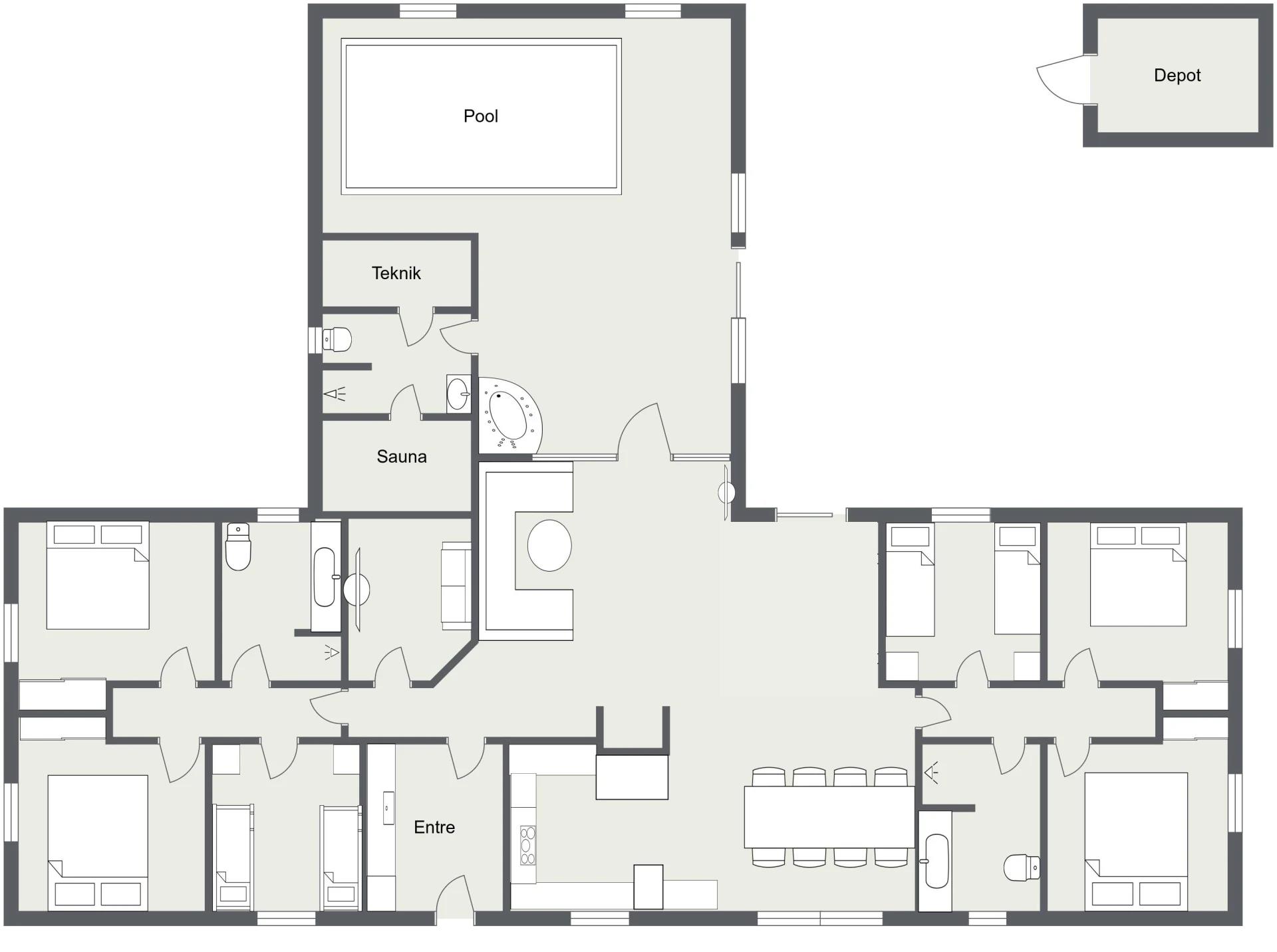 Hier bekommt ihr ein modernes, gut gepflegtes Haus mit allem, was ihr für einen komfortablen Urlaub braucht. Die Küche ist 2024 neu renoviert worden und mit allem ausgestattet, was ihr euch zum Kochen wünscht. Das Haus verfügt über 3 Bäder, so dass es genügend Platz für alle gibt. Ein großes Wohnzimmer mit einem gemütlichen Holzofen schafft die perfekte Atmosphäre, damit ihr euch nach einem langen Tag enspannen könnt. Auch Pool, Sauna und Whirlpool laden dazu ein, es sich so richtig gut gehen zu lassen.