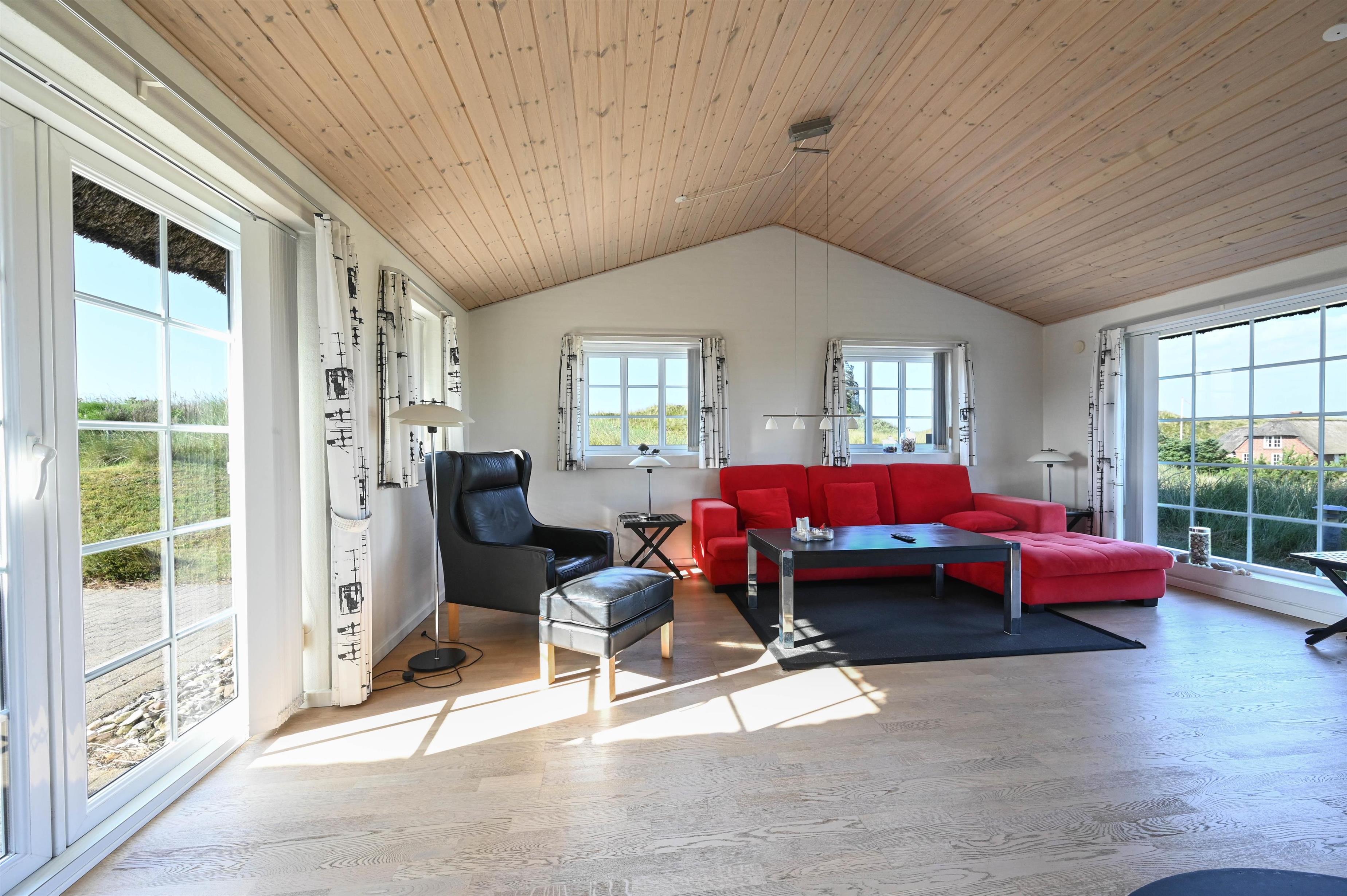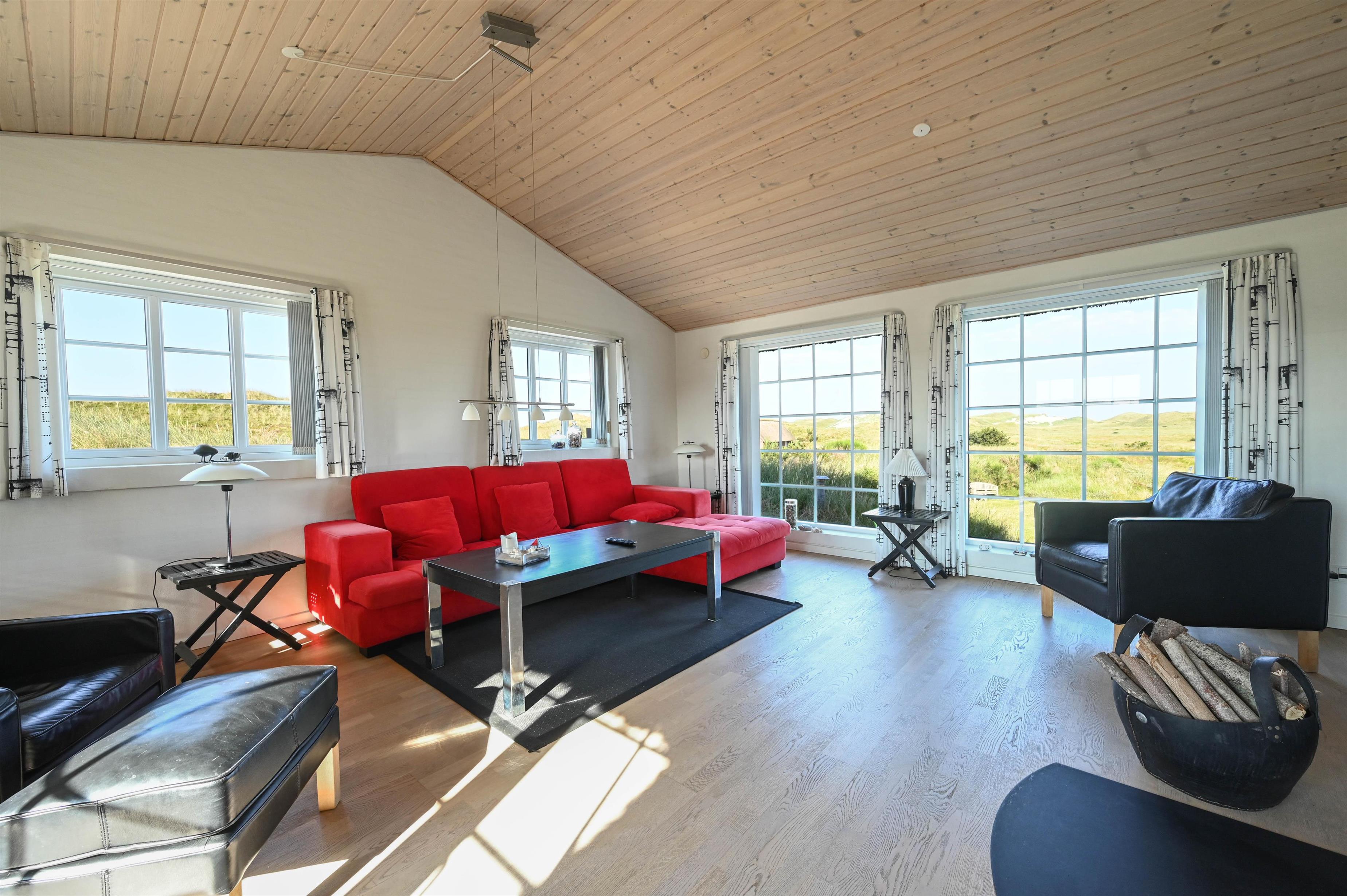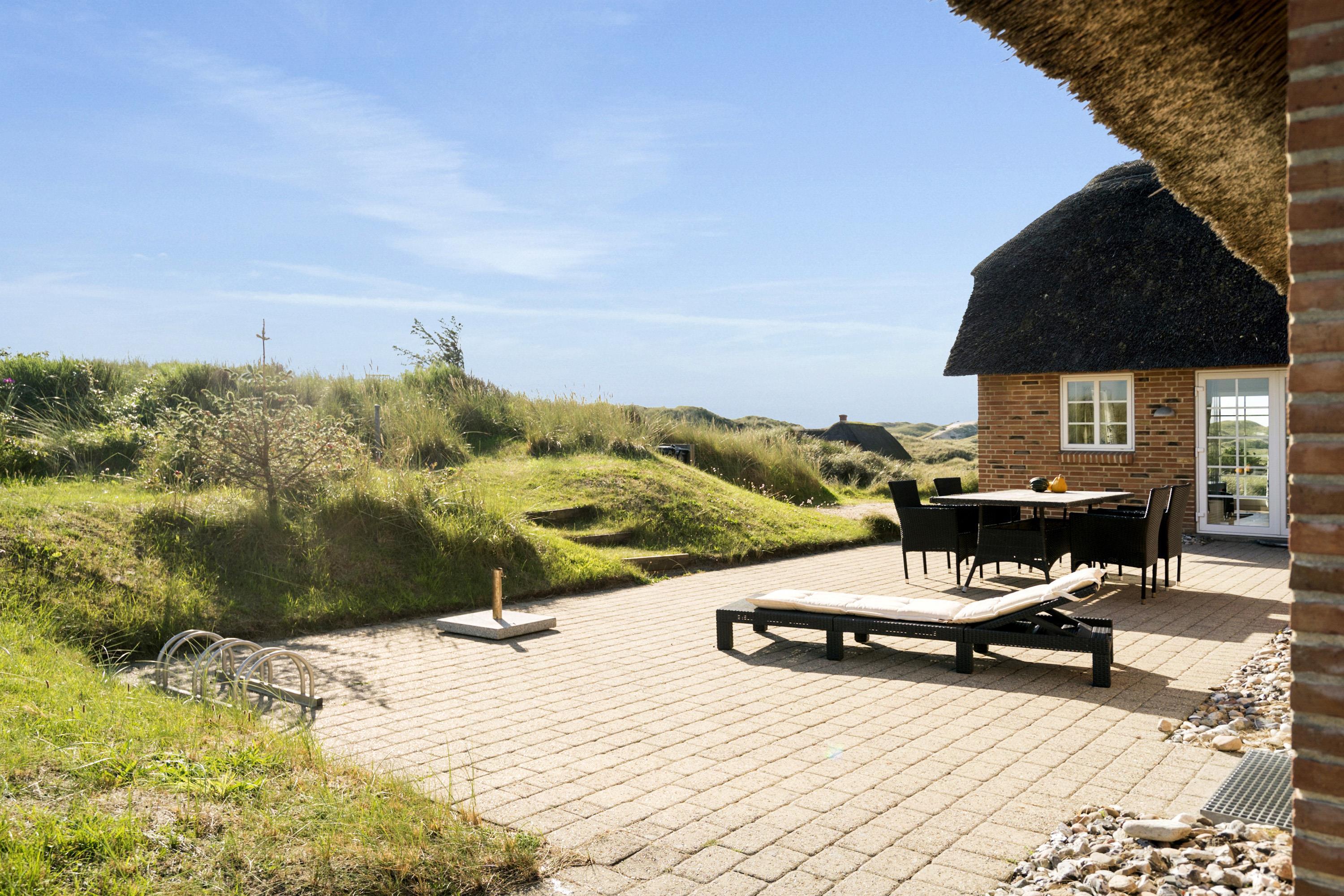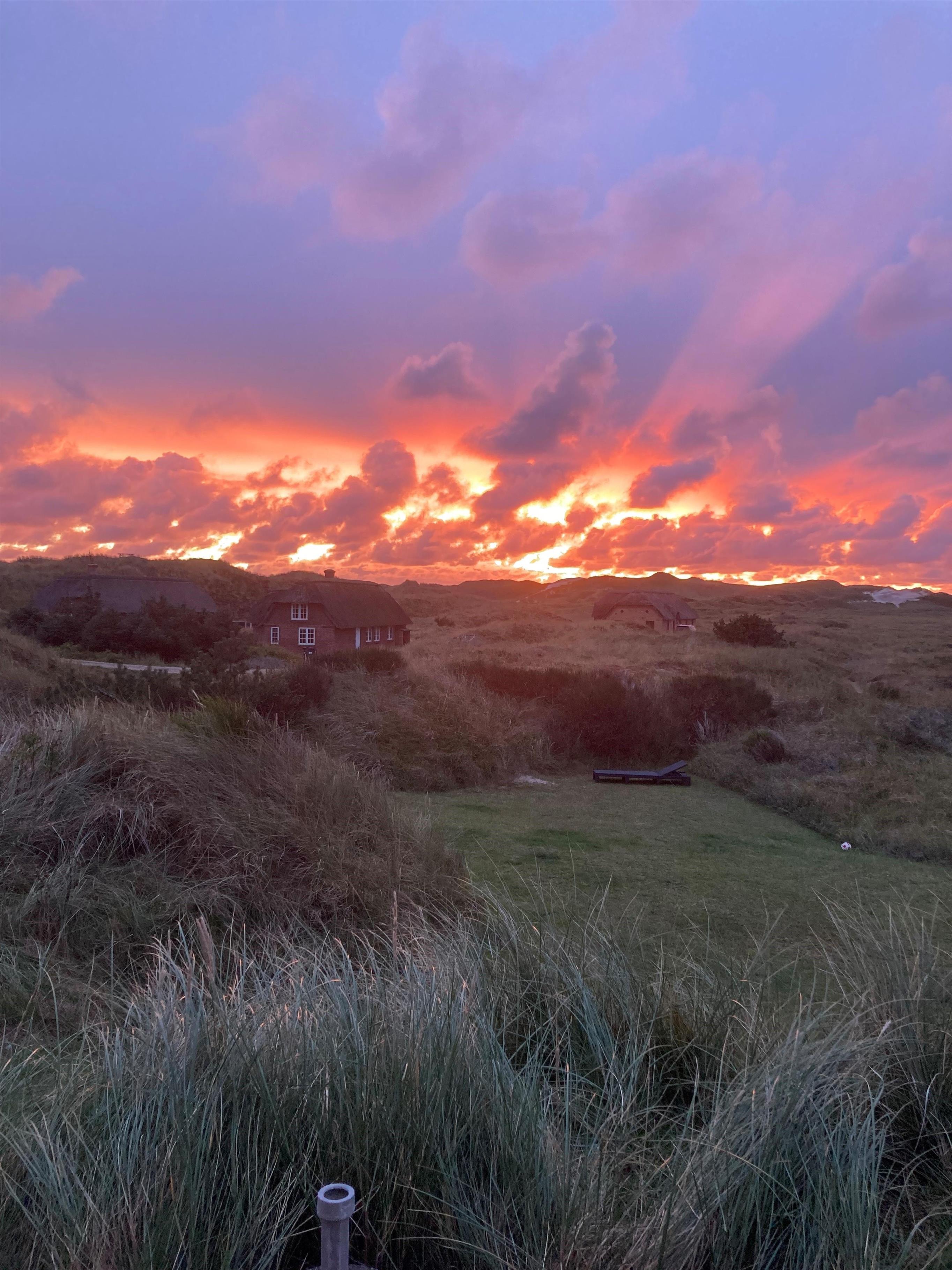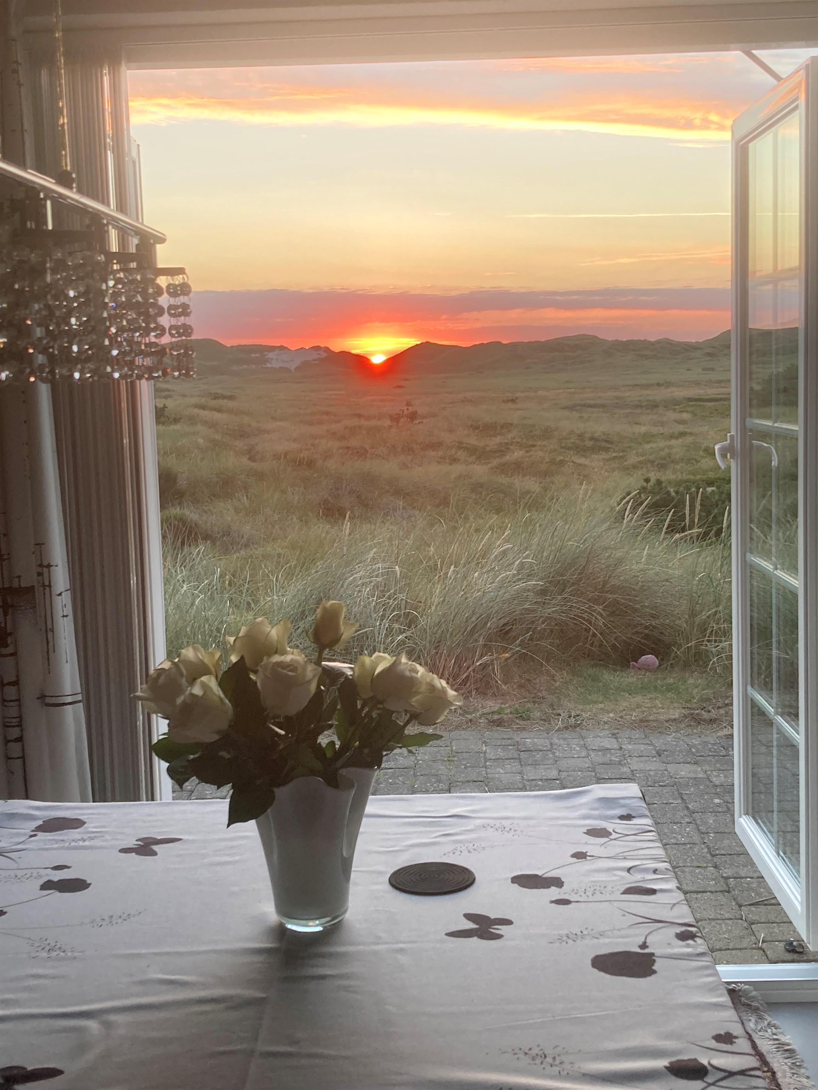 Vom Haus aus hast du einen fast freien Blick auf die Dünen im Westen, und an klaren Abenden kannst du die fantastischen Sonnenuntergänge entweder vom gemütlichen Wohnzimmer oder von der westlich ausgerichteten Terrasse genießen – ganz ungestört und in friedlicher Atmosphäre.