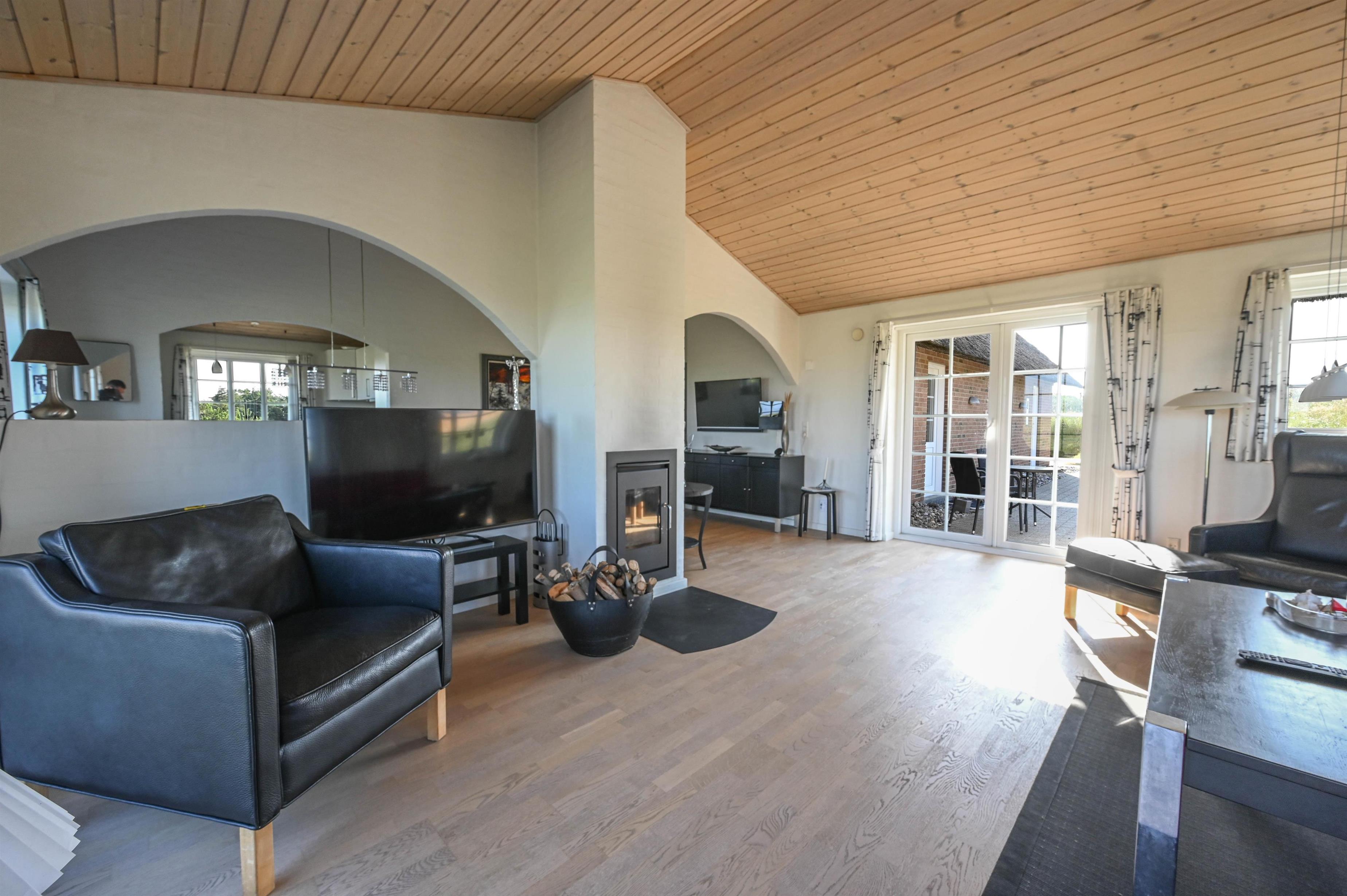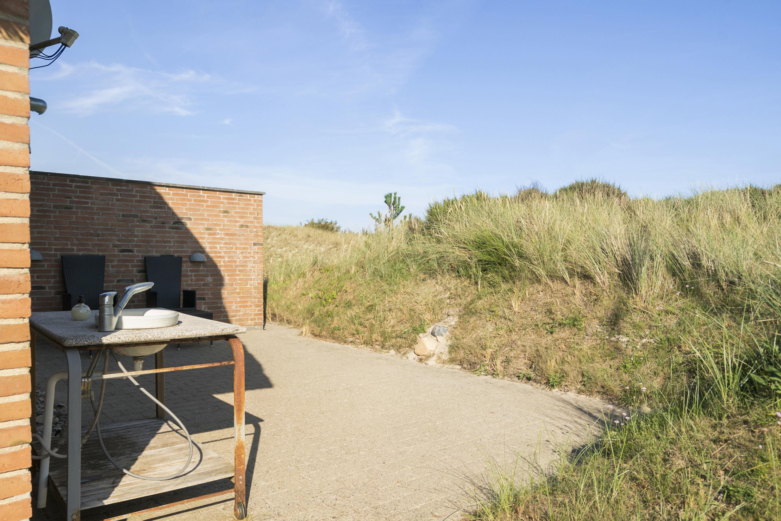 Das Haus steht auf einer kleinen Düne, umgeben von der wunderschönen westjütischen Landschaft, und rundherum findest du mehrere Terrassen und geschützte Ecken, in denen du Sonne, Windstille und Natur gleichermaßen genießen kannst.