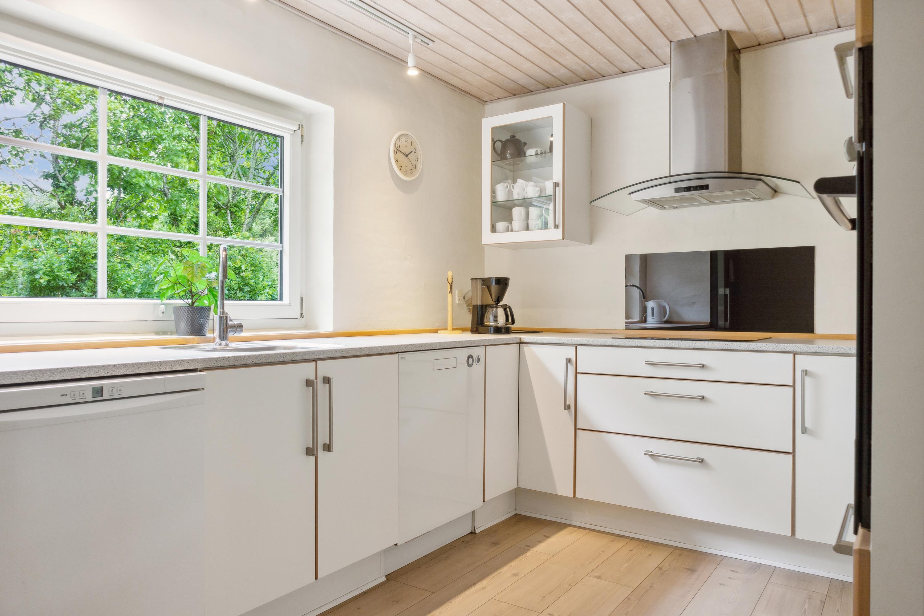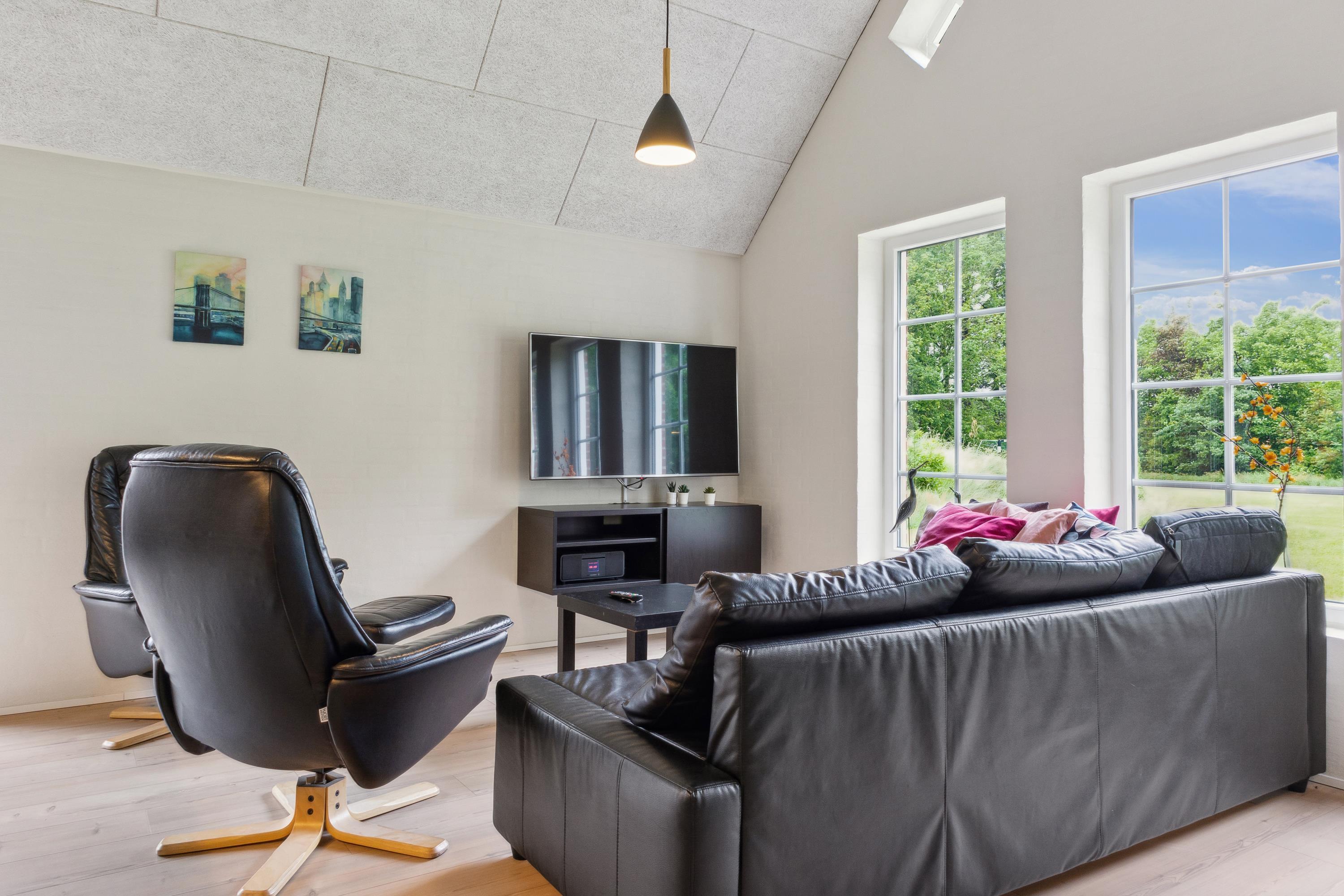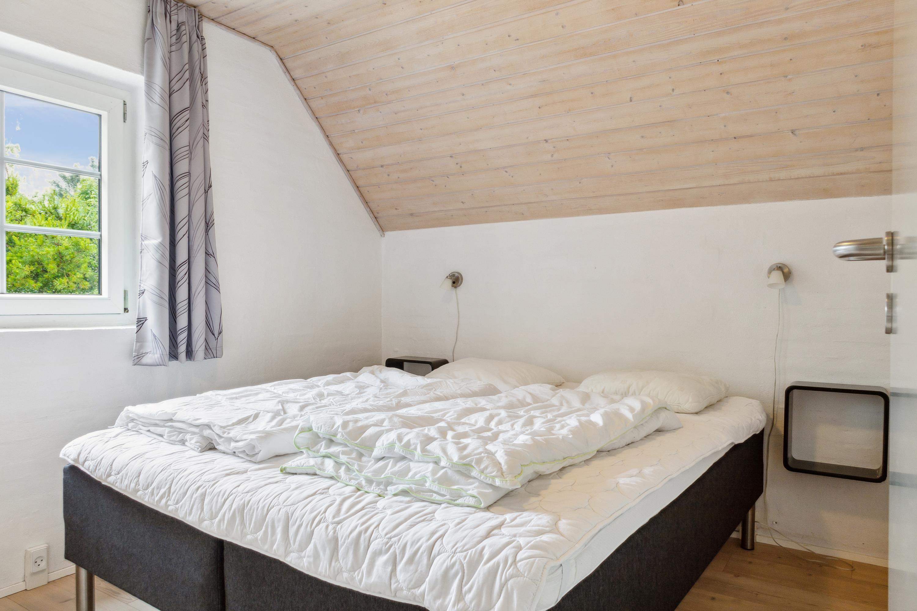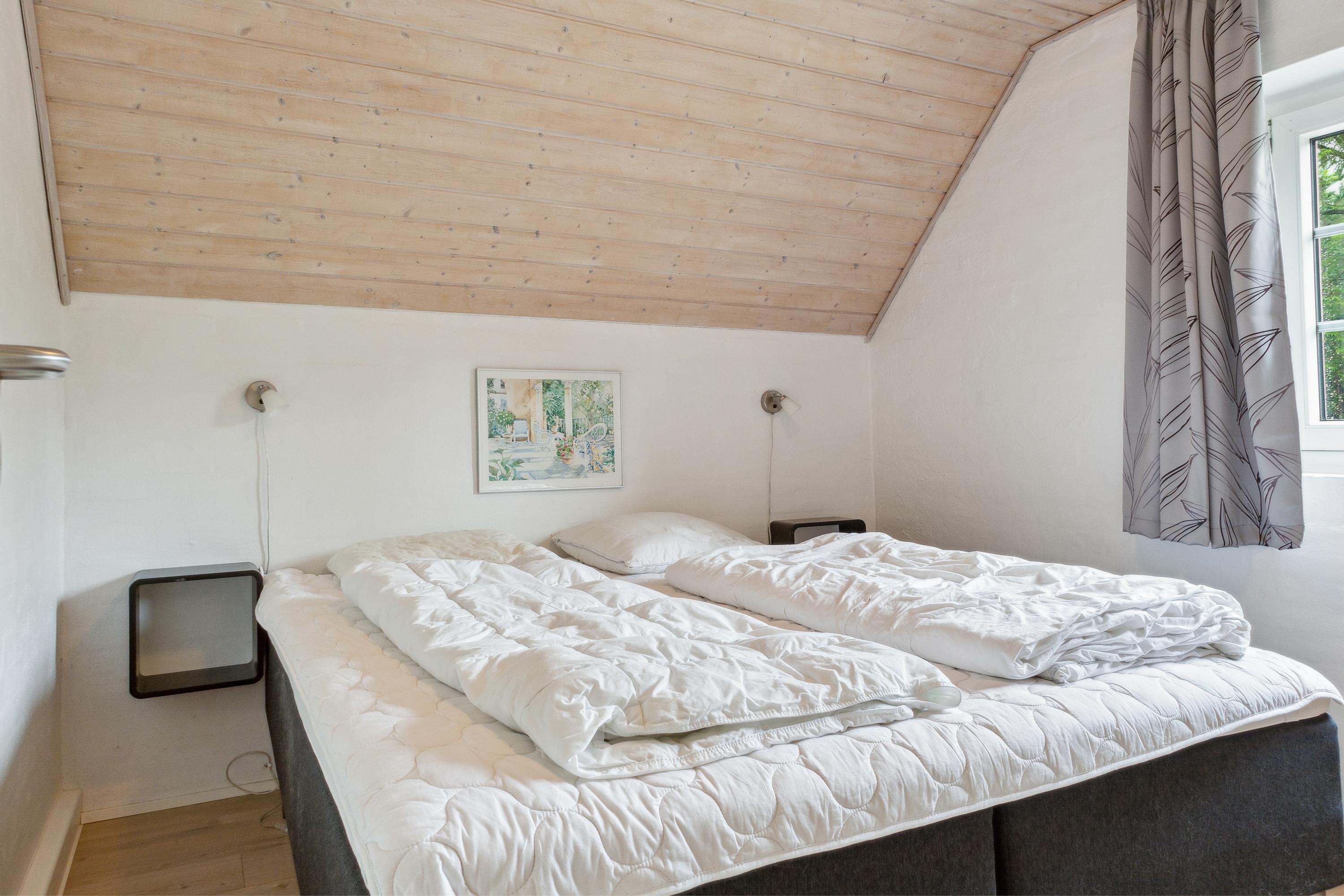 Das Haus ist perfekt für zwei große Familien geeignet, weil es zwei getrennte Flügel mit eigenen Schlafbereichen hat. Jeder Abschnitt hat drei Zimmer, zwei mit je einem Doppelbett und eines mit einem Etagenbett plus Einzelbett. In allen Zimmern habt ihr viel Stauraum und Schrankplatz. In beiden Abteilungen gibt es schön renovierte Bäder mit Duschen und Fußbodenheizung. Das Herz des Hauses ist das Wohnzimmer. Mit dem großen Esstisch, einem guten Kaminofen und einer schönen Sofagruppe mit Fernseher ist viel Platz und Hygge für alle. Es gibt auch einen direkten Zugang zur gut ausgestatteten, offenen Küche und zur Terrasse. Im großzügig geschnittenen Eingangsflur habt ihr viel Platz für Jacken, Sportzeug und Schuhe und im kleinen Hauswirtschaftsraum findet ihr Waschmaschine und Trockner.