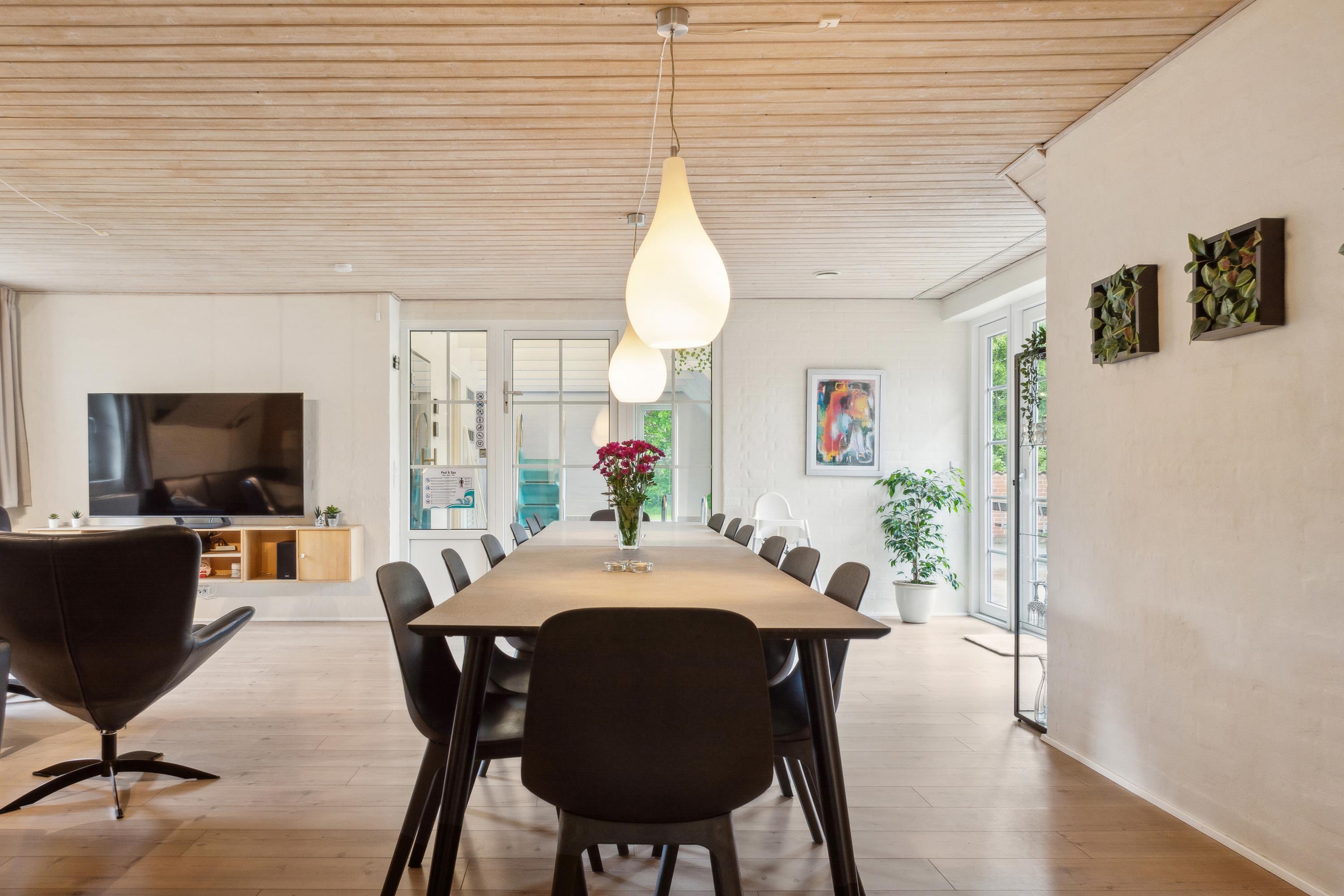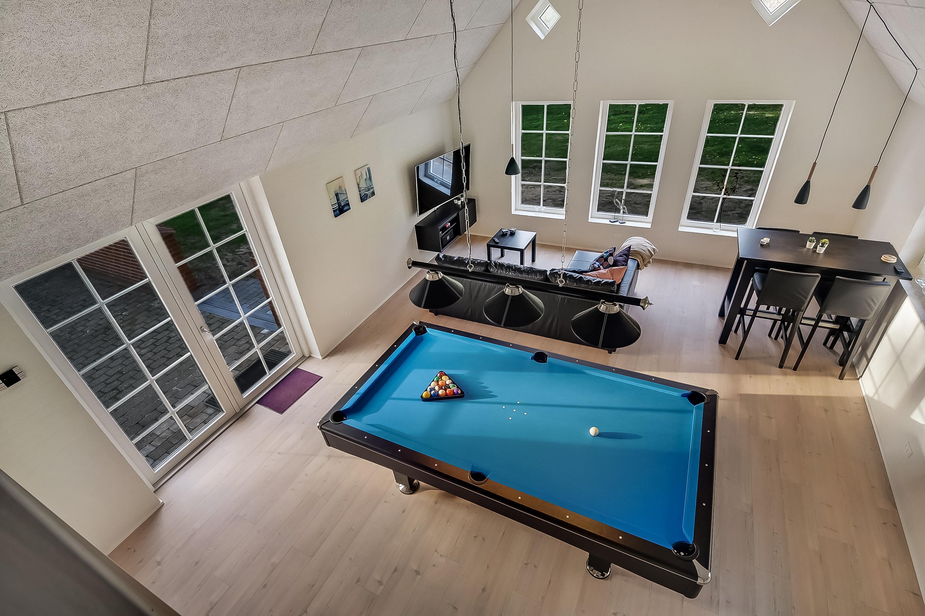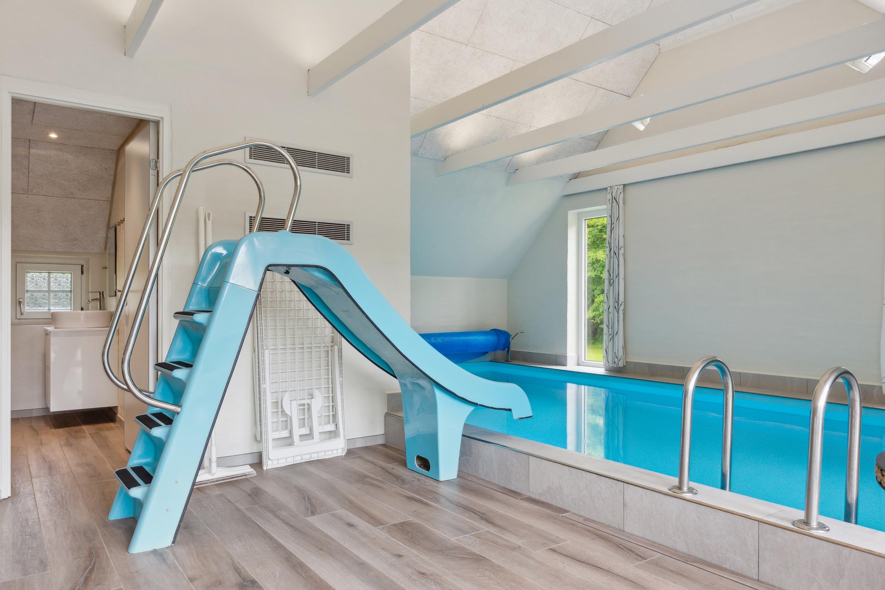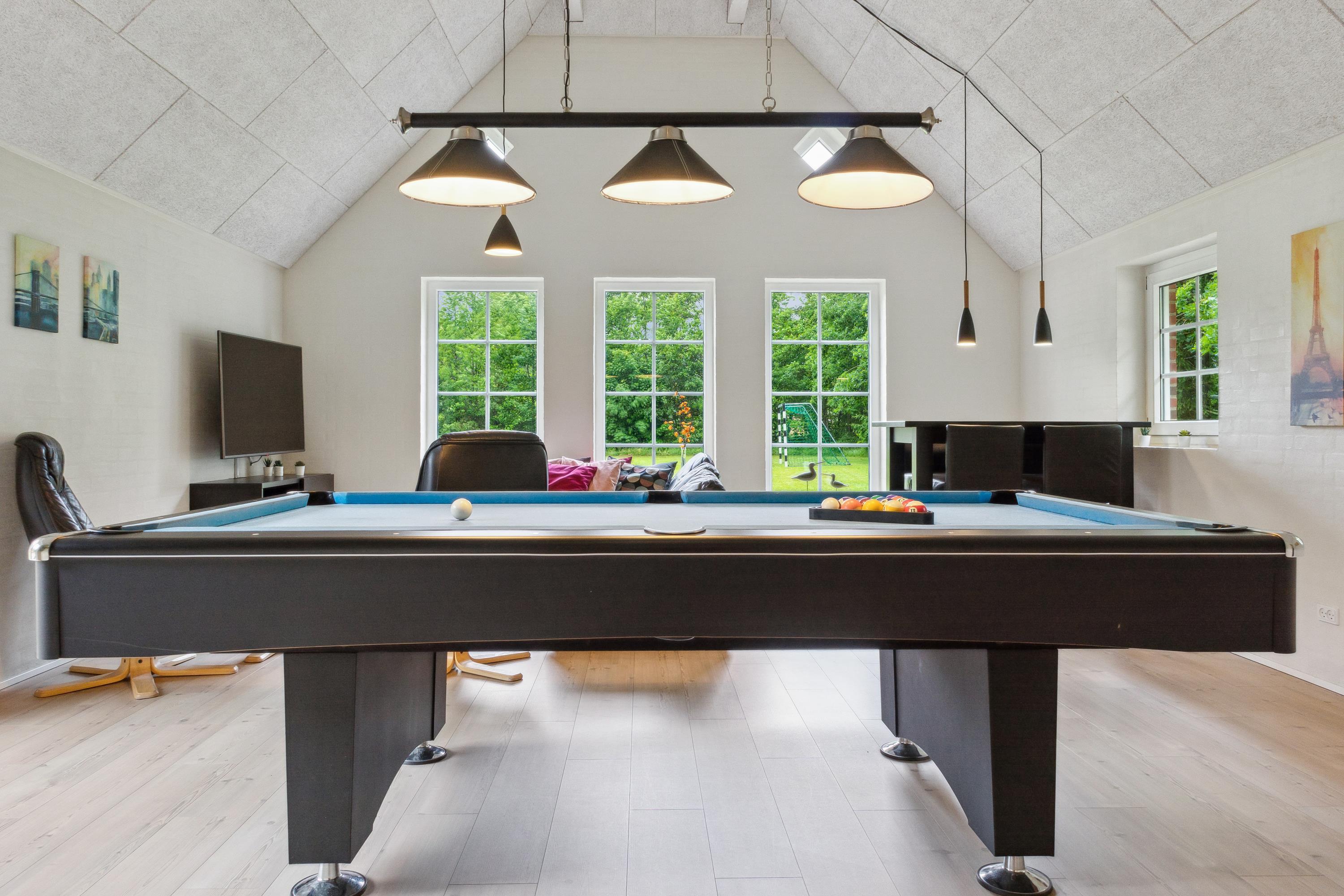 Dies ist eines der gepflegtesten Ferienhäuser mit Pool in Vester Husby. Perfekt geeignet für ein Familienfest "mit allen" oder für zwei befreundete Familien, die einen erholsamen Urlaub mit Fokus auf Wellness machen wollen. Infrarotsauna – mit atemwegsfreundlichem Himalaya-Salzstein, finnische Sauna, Salzwasserswimmingpool mit Rutsche und Gegenstromanlage und großer Whirlpool. Ihr wollt noch mehr? OK! Dann haben wir hier noch einen Spiel-und-Spaß-Raum mit Poolbillard und extra Fernseh-Sitzecke für euch sowie im Garten Fußballtor, Kletterturm und Sandkasten. Auf der Terrasse im Innenhof seid ihr hervorragend vorm Nordseewind geschützt. Hier könnt ihr die Sonne in vollen Zügen genießen und an manchen Tagen hört ihr sogar das Rauschen des Meeres.
