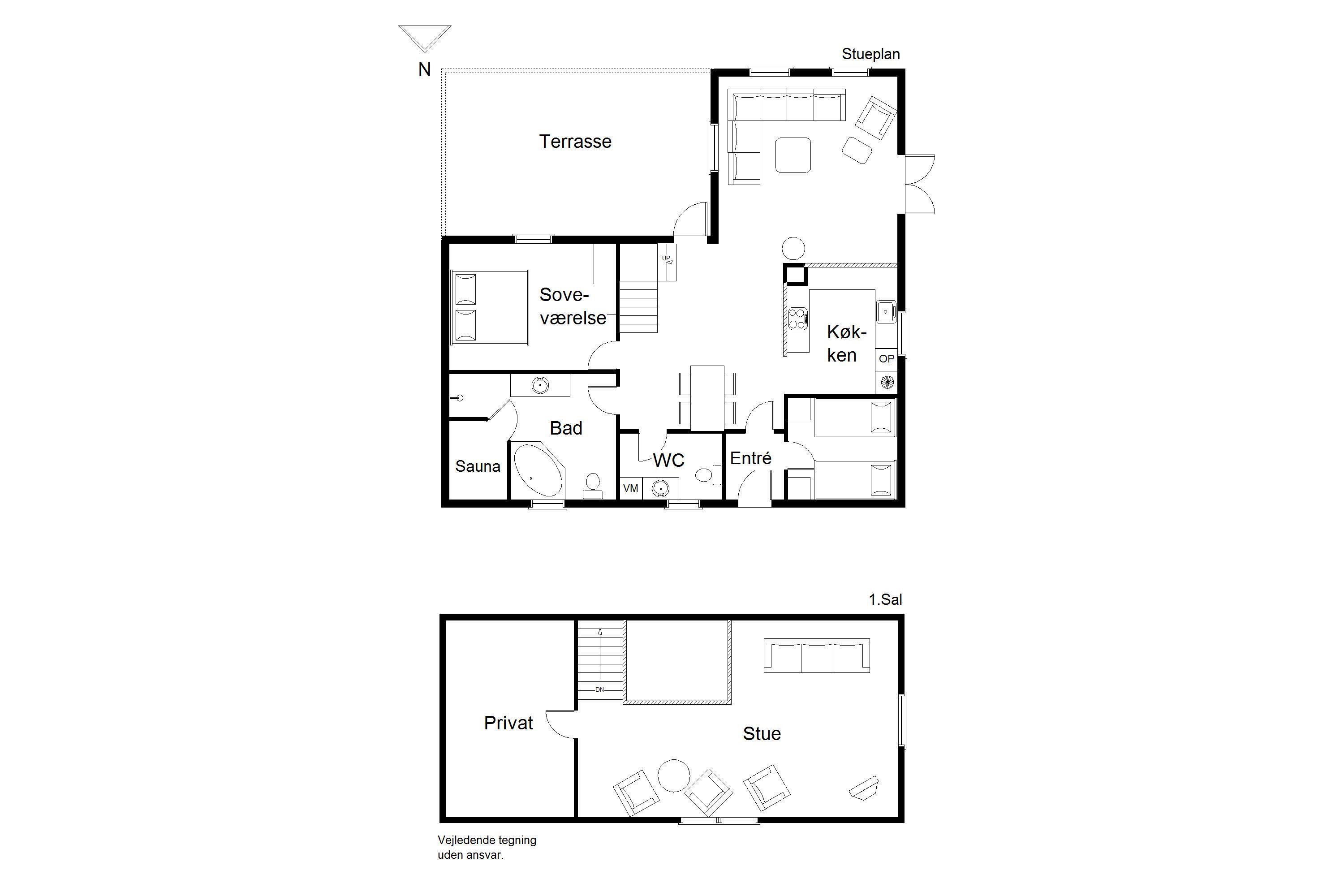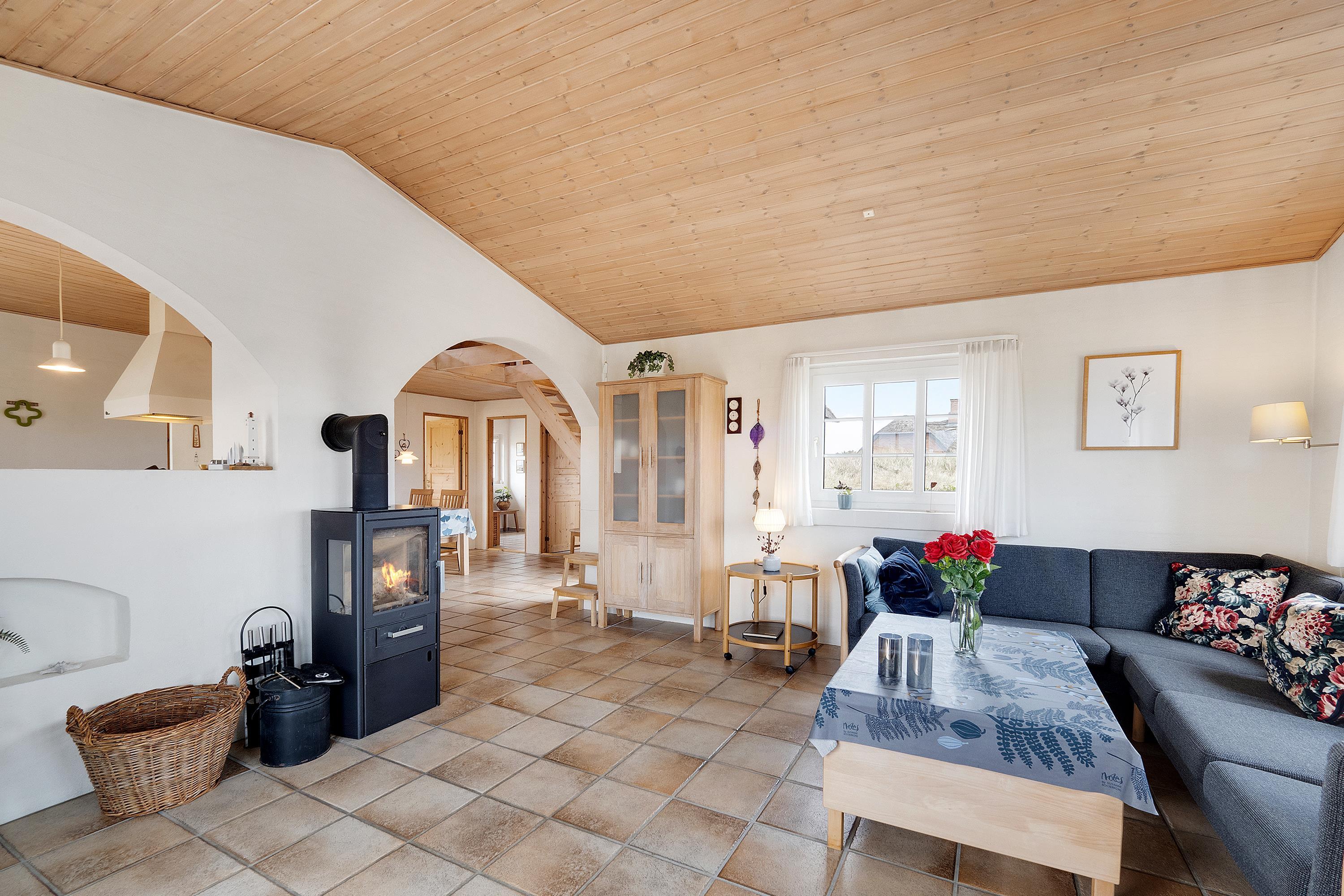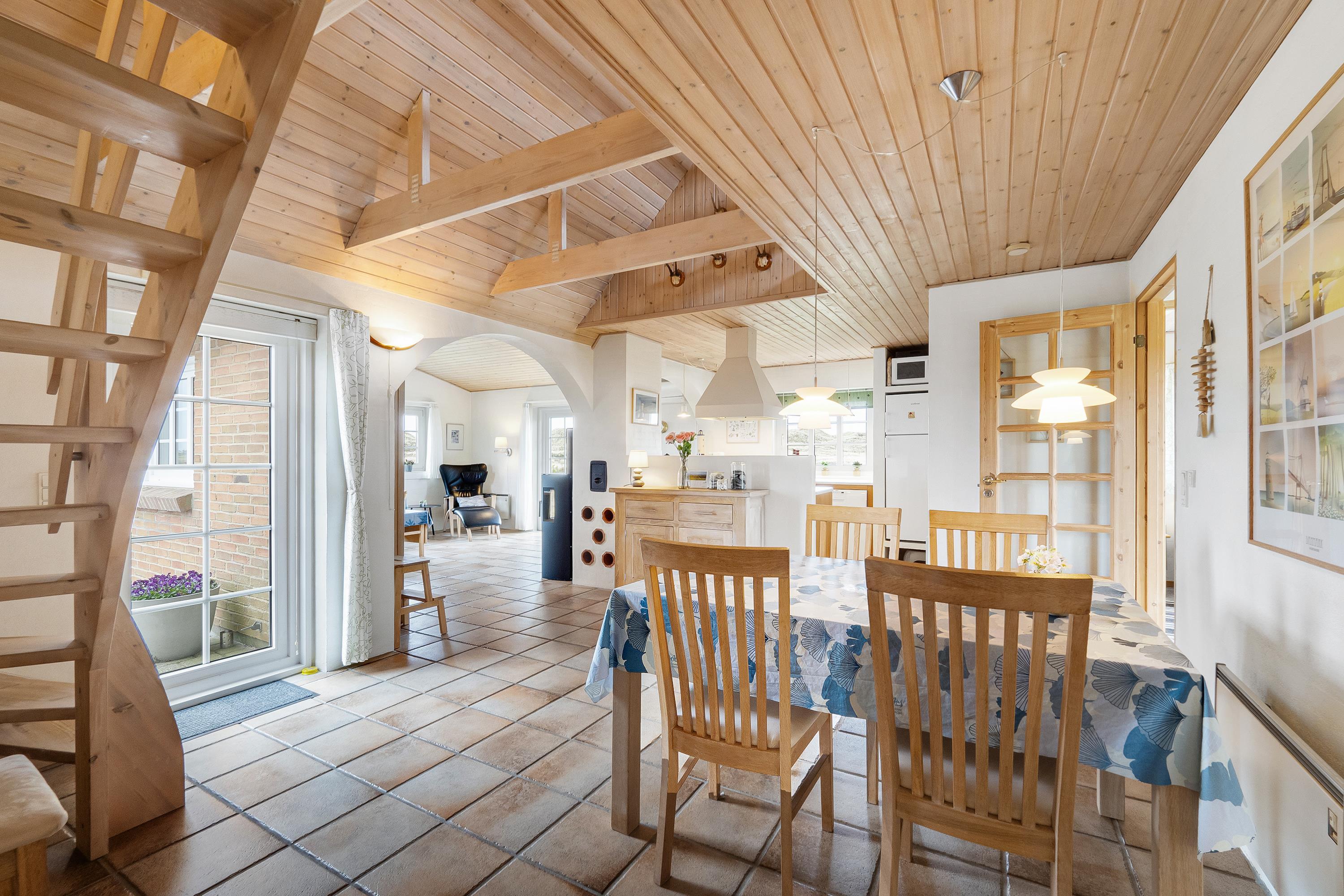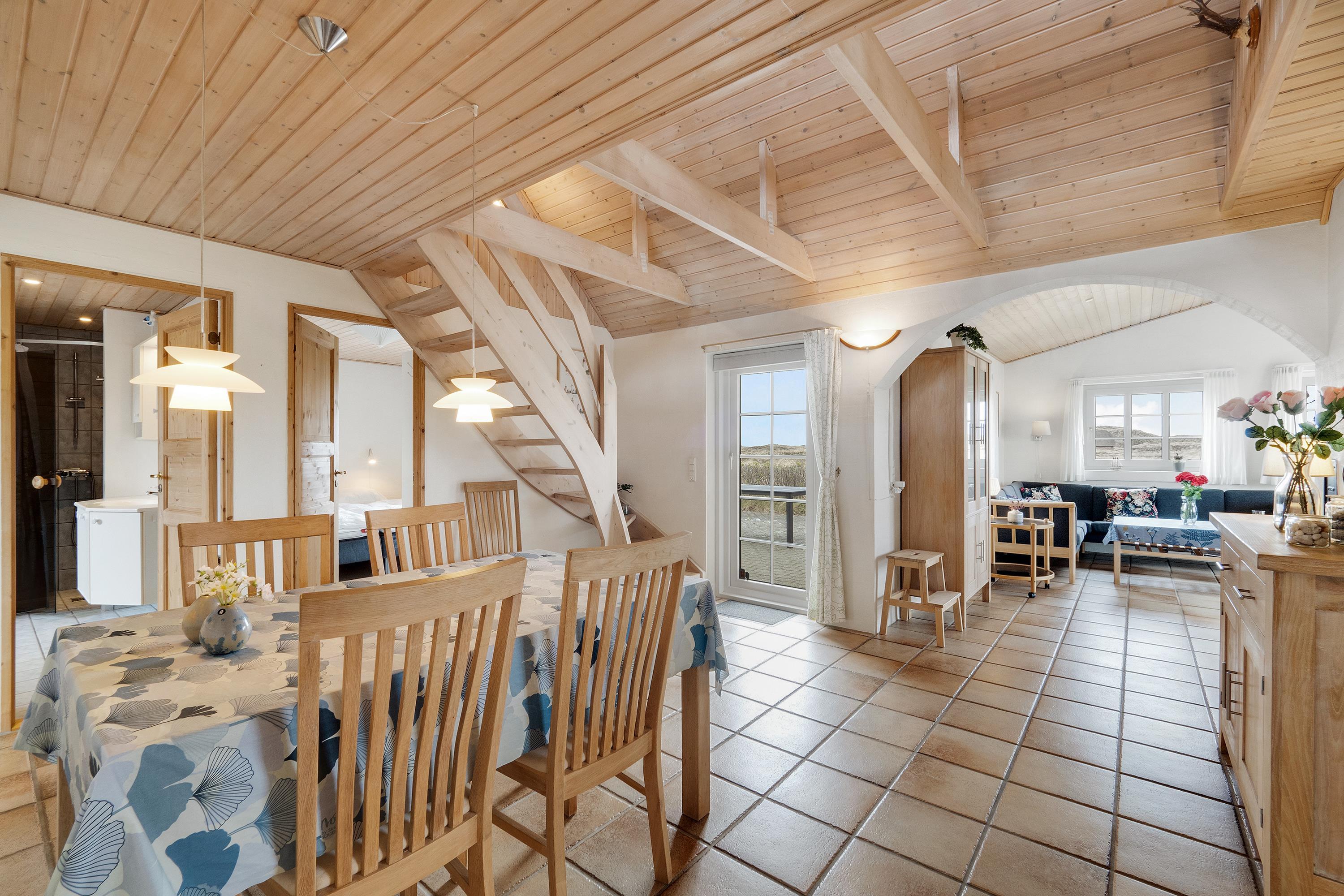 Im Obergeschoss befindet sich ein zusätzlicher Aufenthaltsraum – der perfekte Ort für eine Tasse Kaffee, ein gutes Buch und den Blick über die westjütländische Natur.