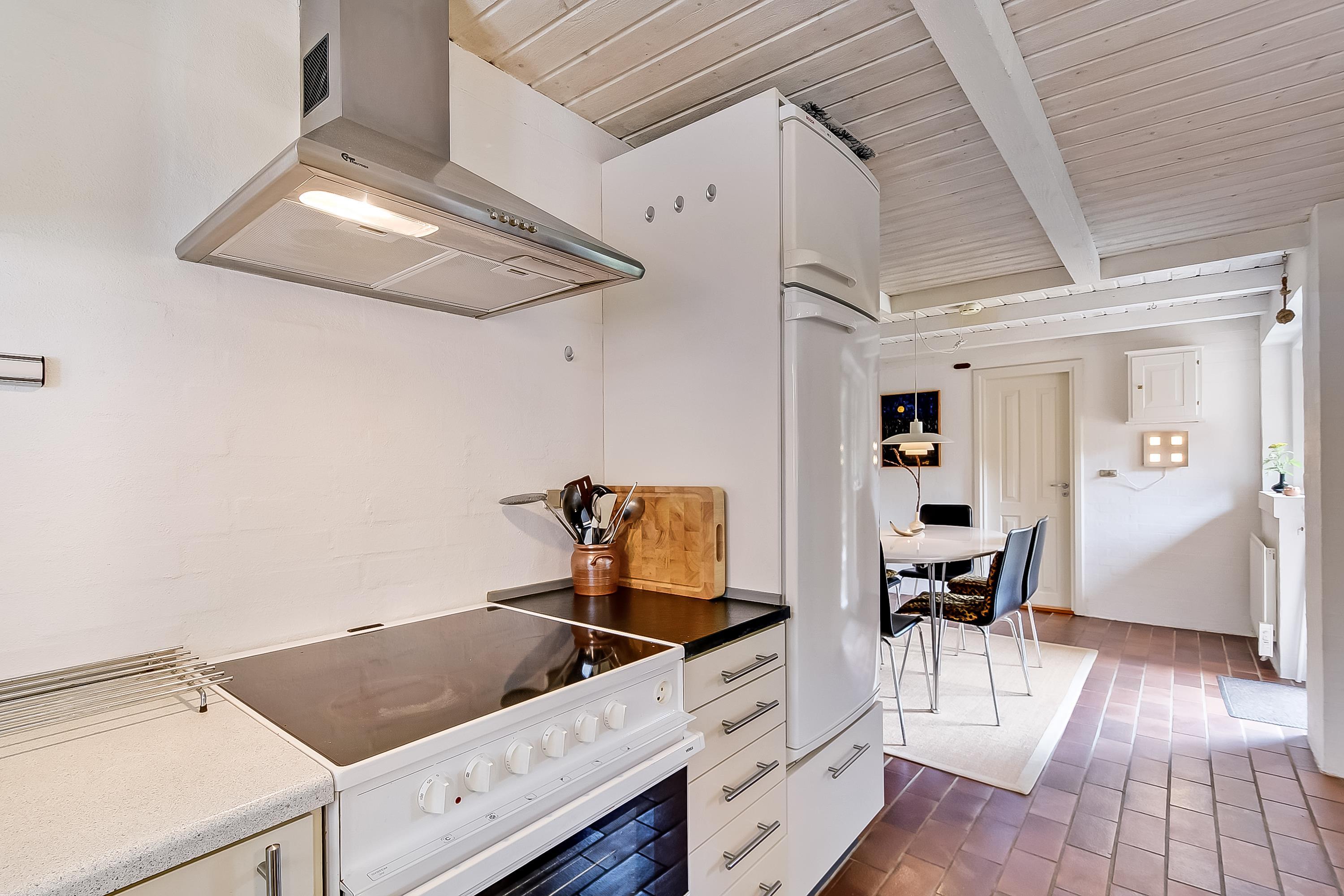 Von der kleinen Diele gelangt ihr ins Badezimmer sowie in das Esszimmer, das offen mit der gut ausgestatteten Küche verbunden ist.