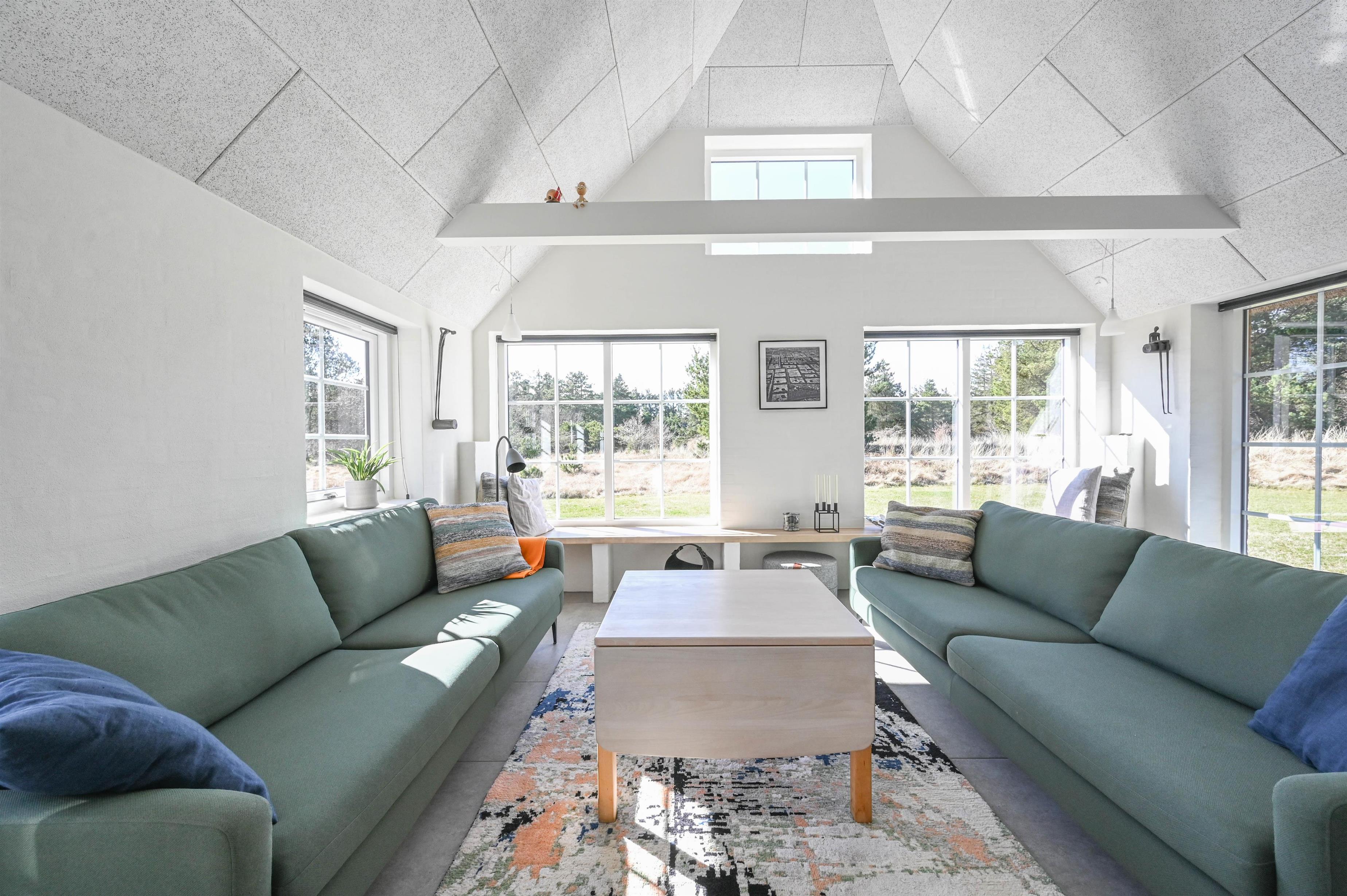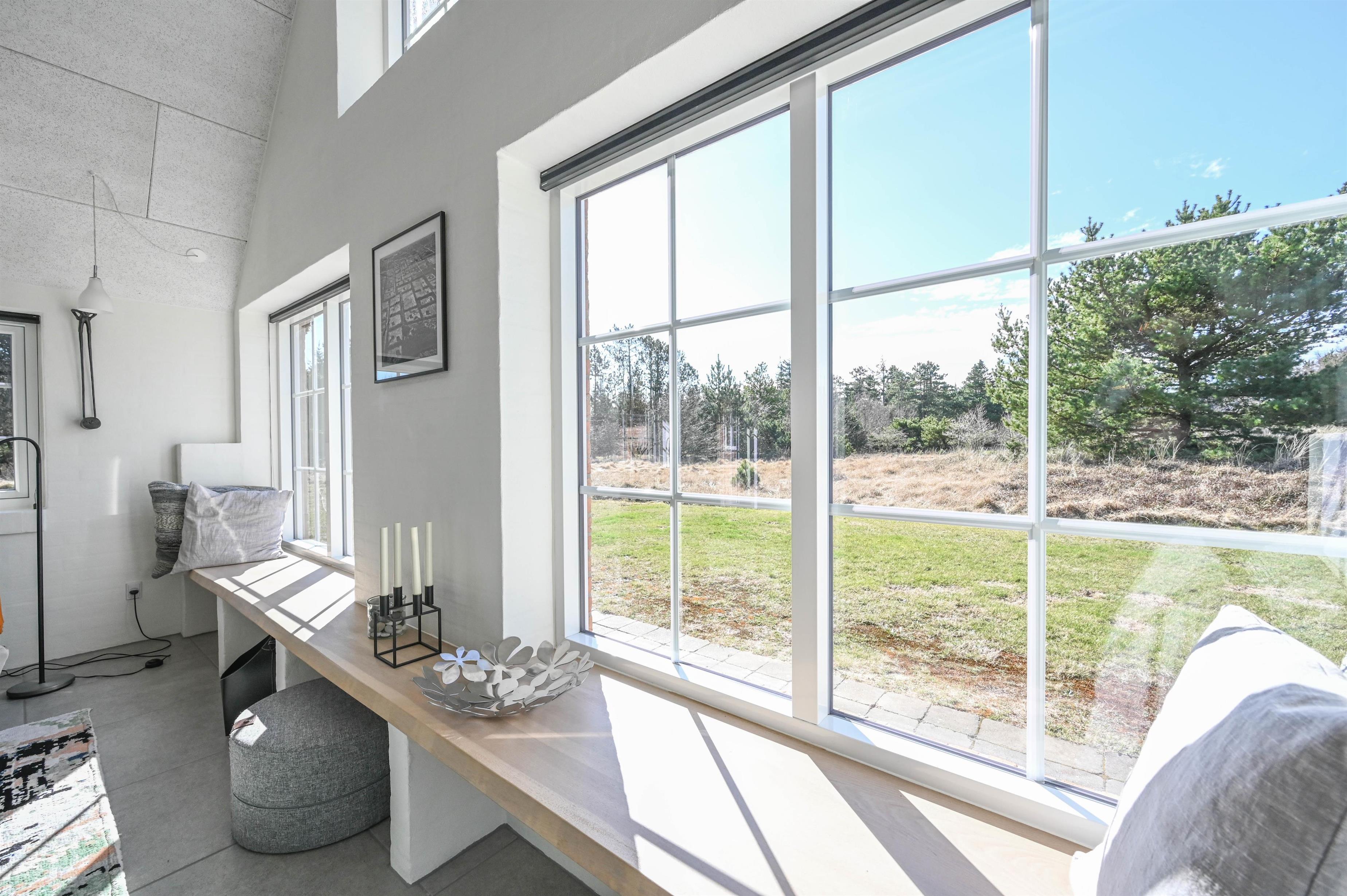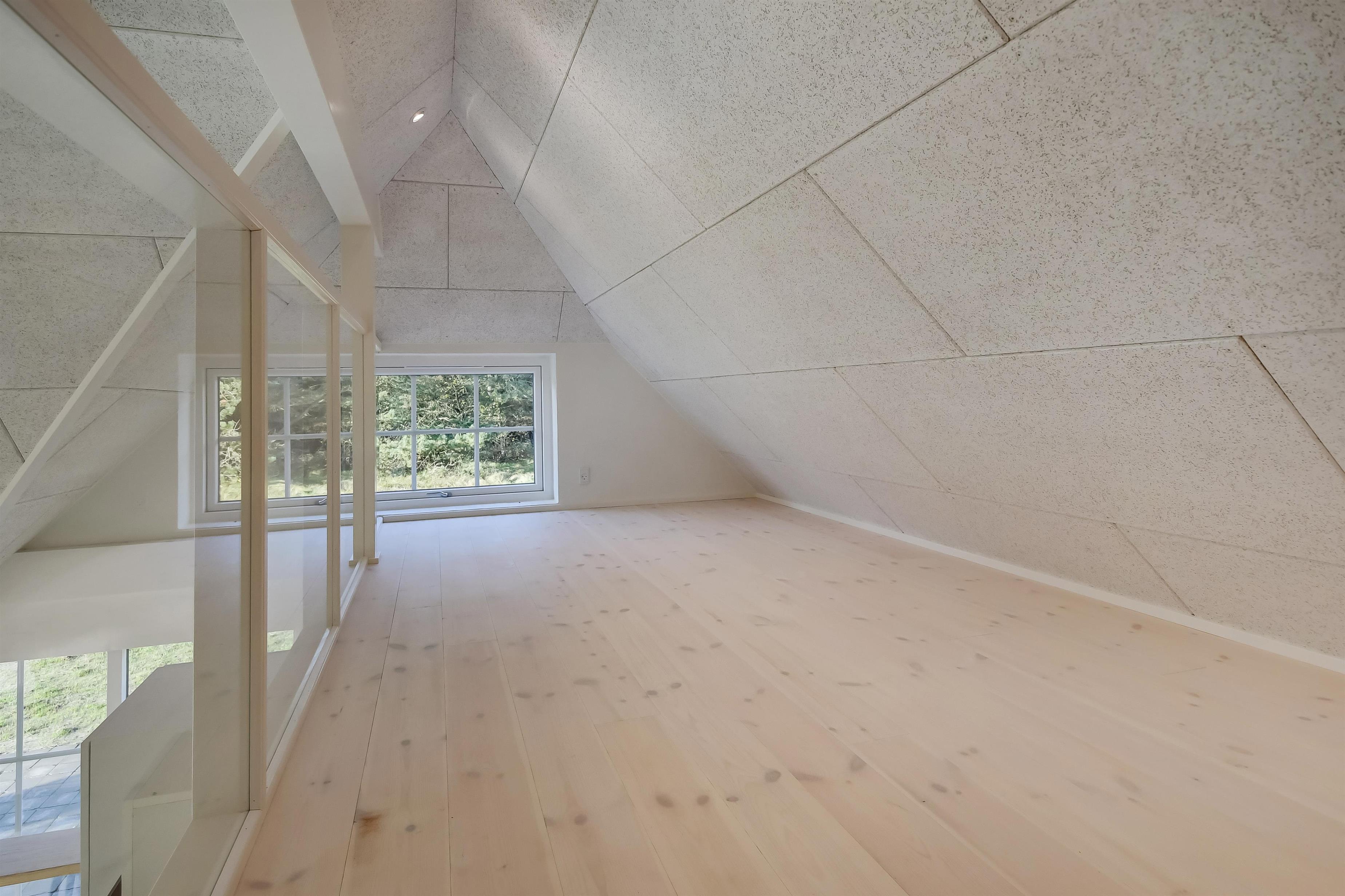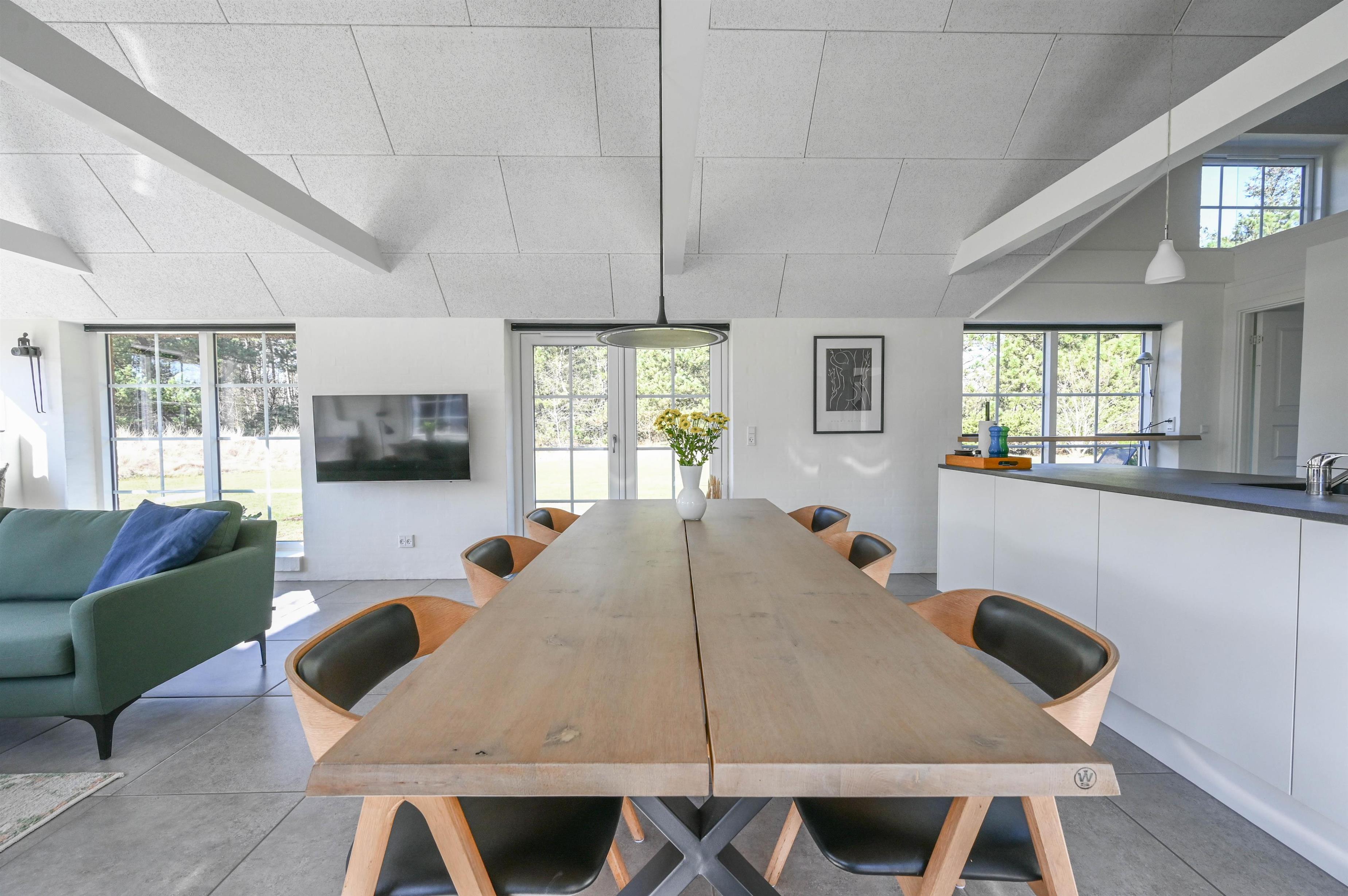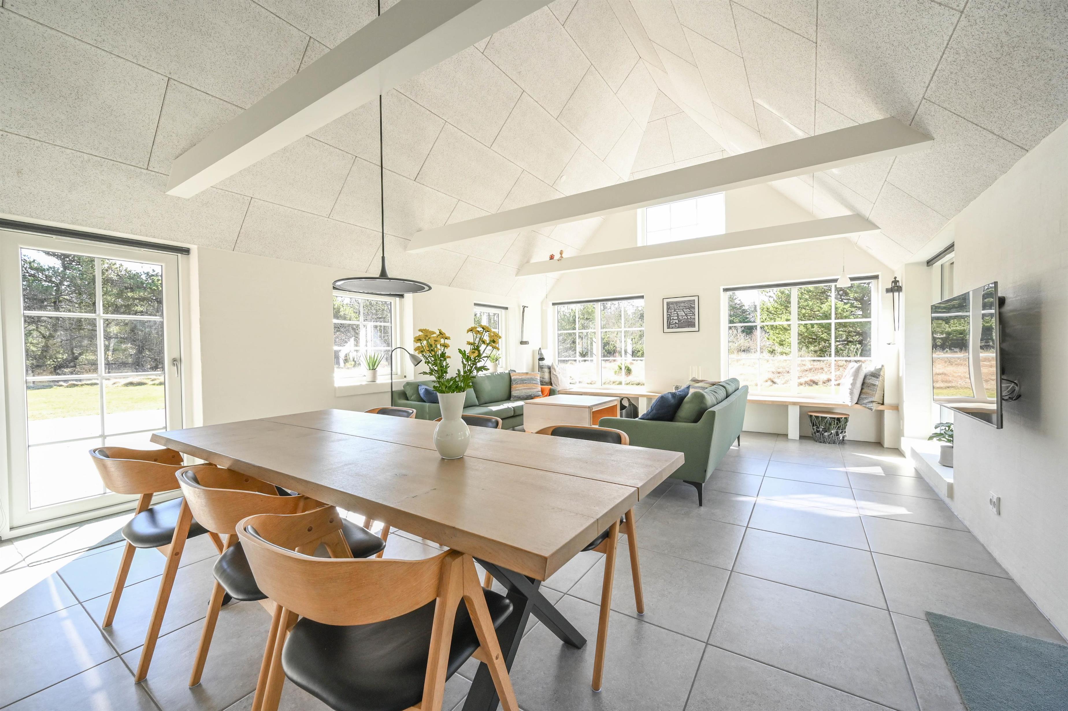 Dieses luxuriöse Ferienhaus mit 113 qm Wohnfläche liegt auf einem riesigen 5.000 qm großen Grundstück, teils Rasenfläche, teils Naturgrund. Schön für Ruhesuchende: Hier wohnt ihr ganz am Ende eines kleinen Kiesweges. Es gibt 2 tolle große Terrassen, die guten Windschutz bieten und eine herrliche Sauna. Der helle Wohnraum ist großzügig geschnitten und bis zum First offen. Kinder kommen über eine Leiter auf die kleine Halbetage unterm Dach, auf Dänisch Hems genannt. Hier können sie ihr eigenes Reich gestalten. Räuberhöhle oder Prinzessinnengemach? Alles eine Frage der Fantasie.