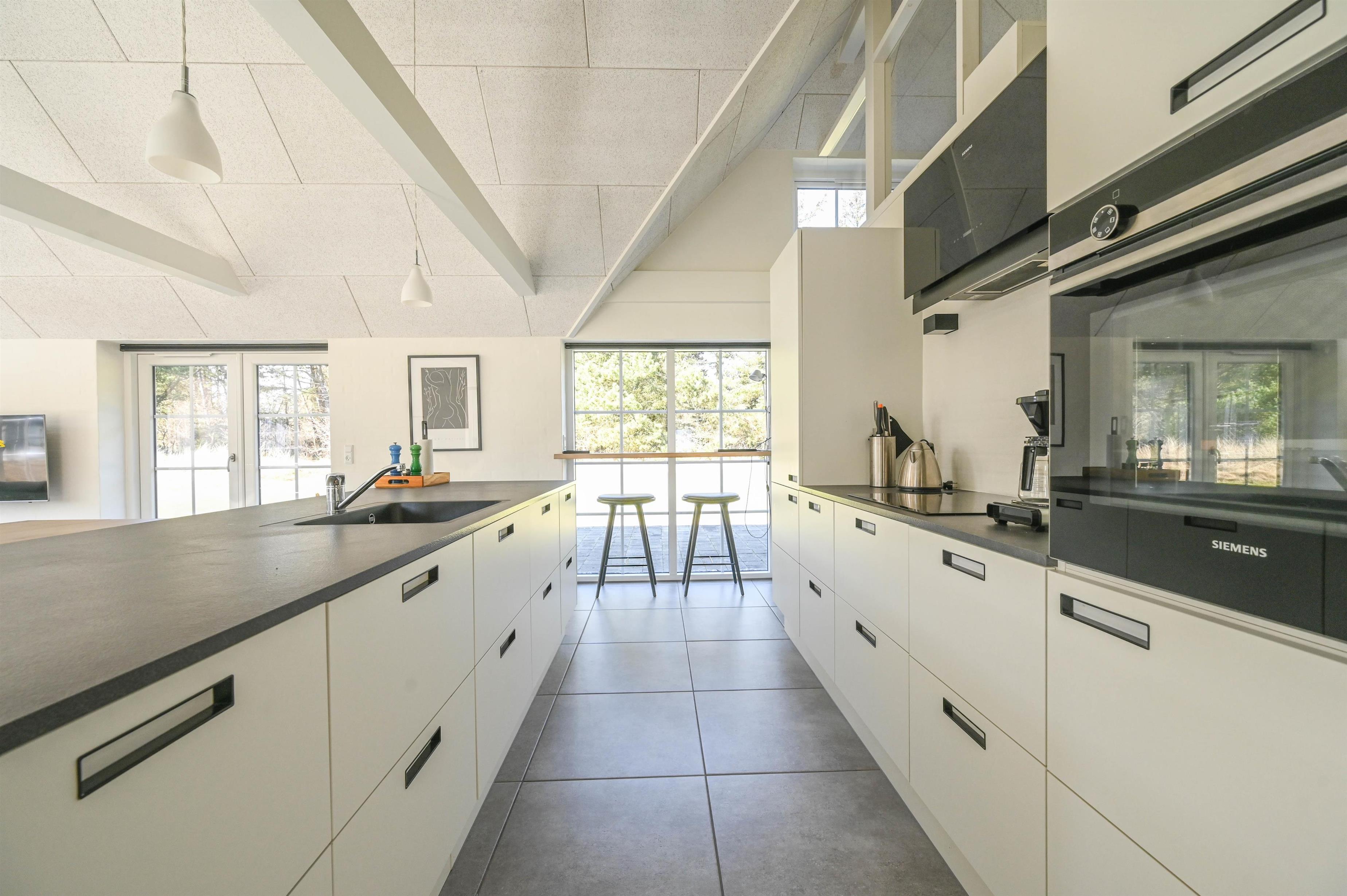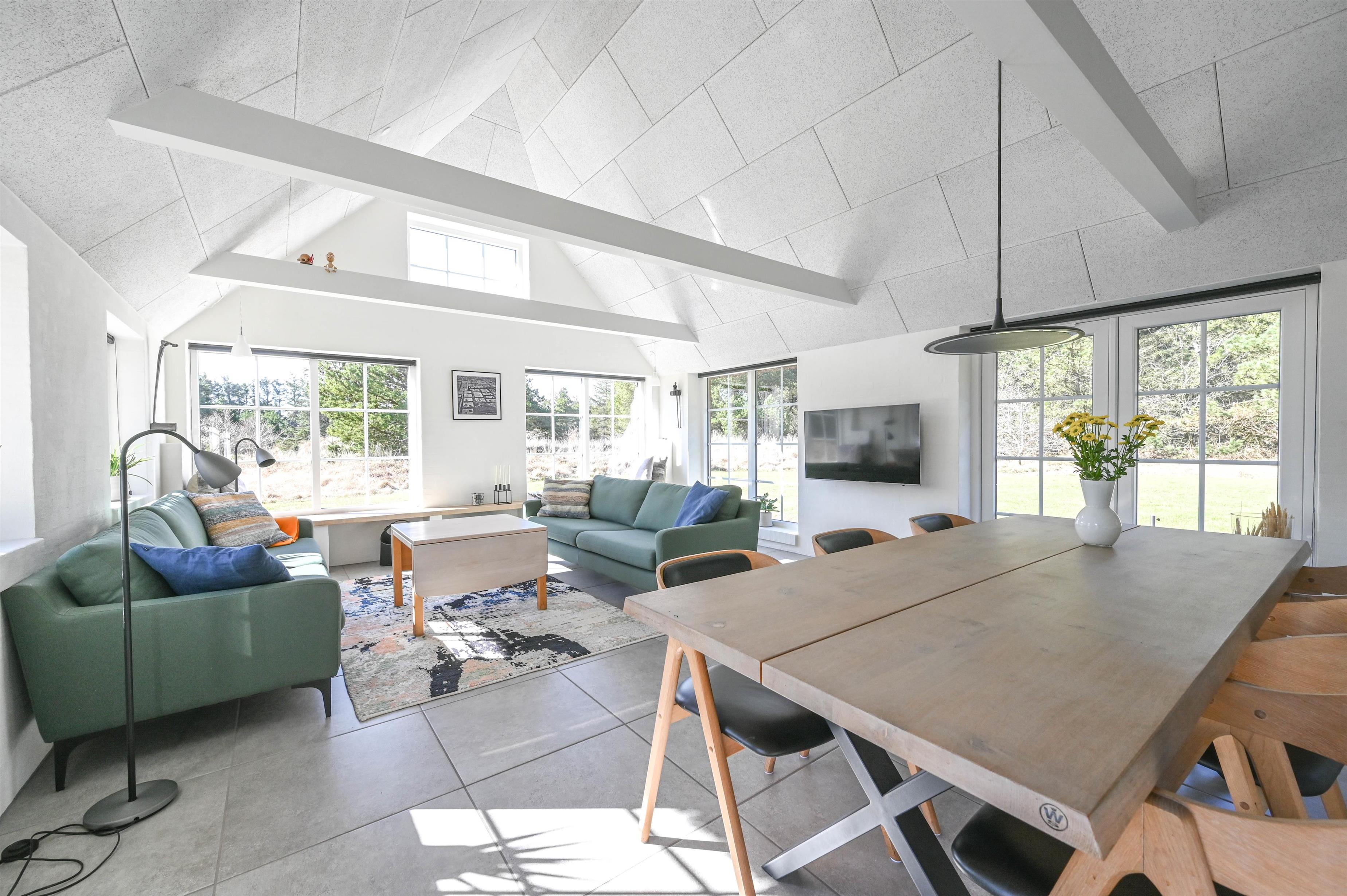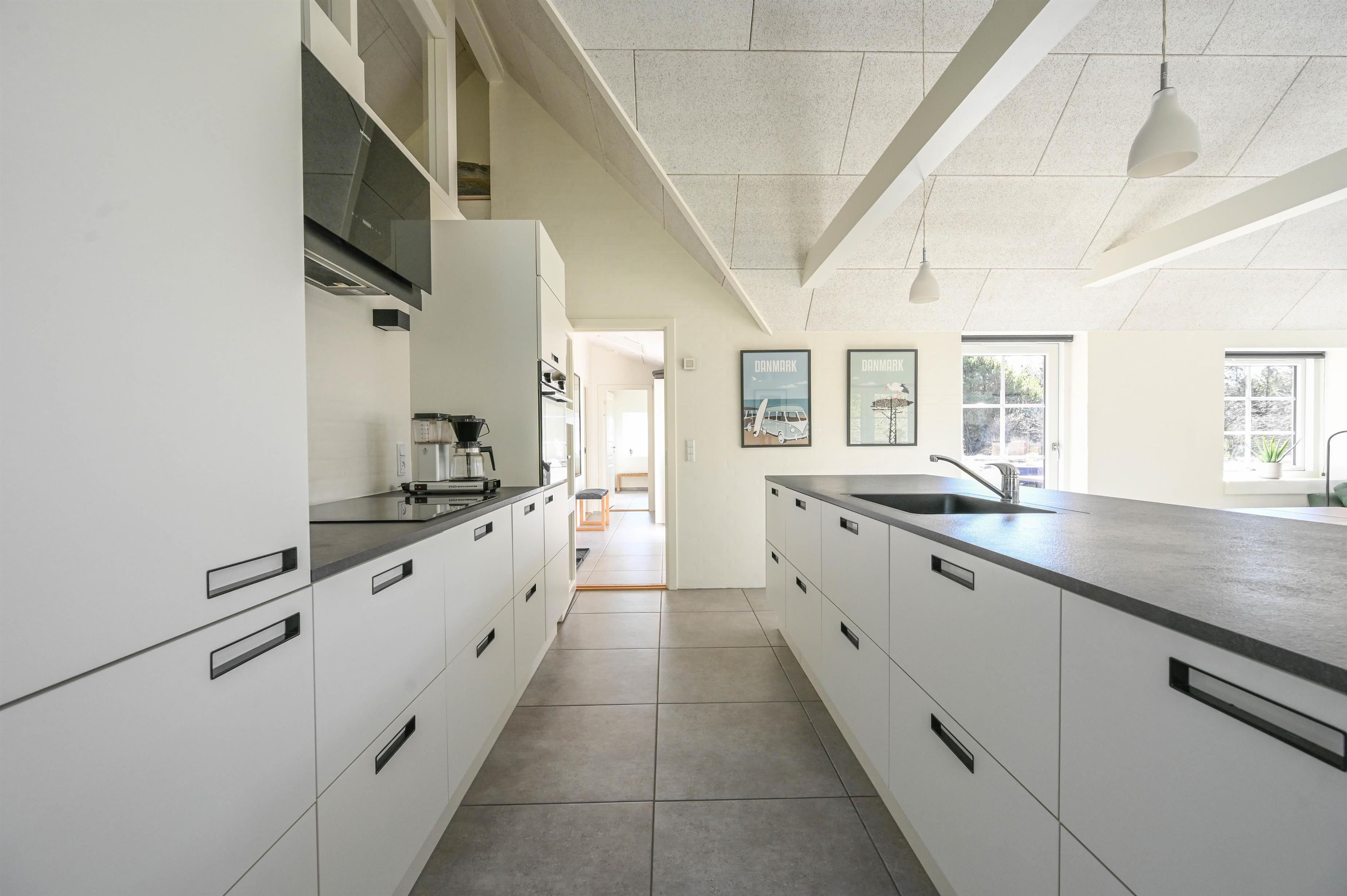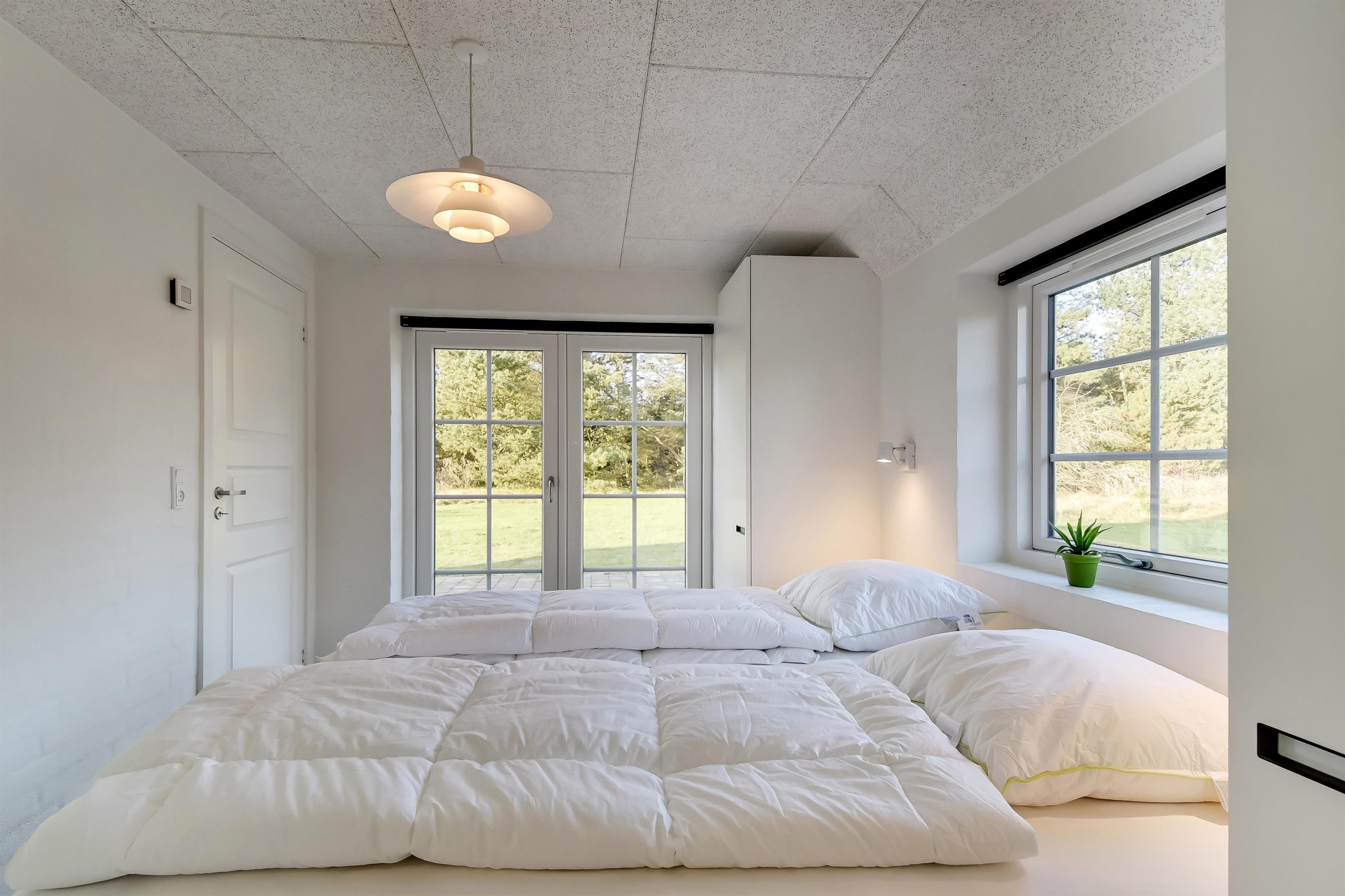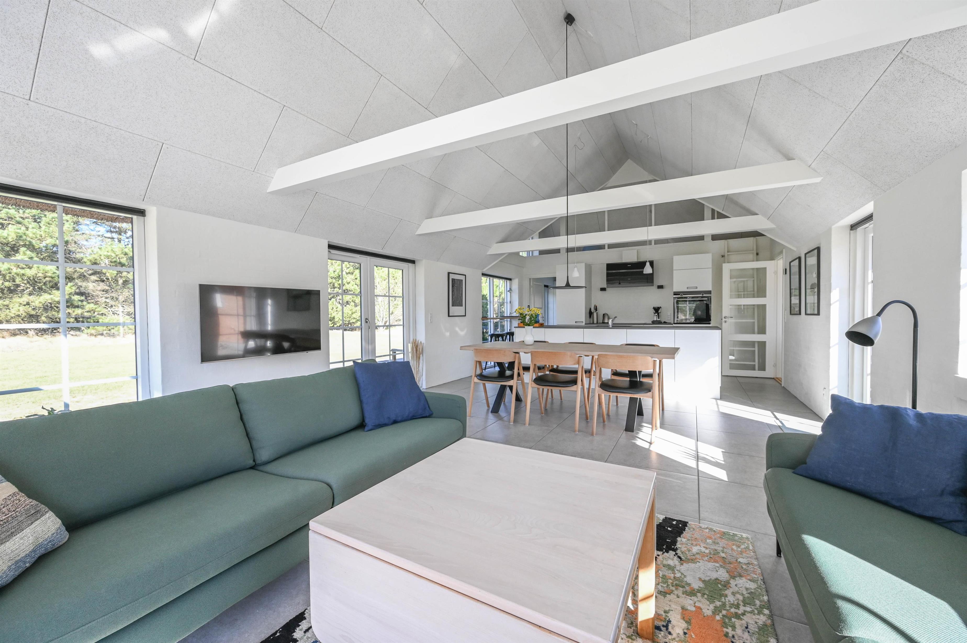 Dieses luxuriöse Ferienhaus mit 113 qm Wohnfläche liegt auf einem riesigen 5.000 qm großen Grundstück, teils Rasenfläche, teils Naturgrund. Schön für Ruhesuchende: Hier wohnt ihr ganz am Ende eines kleinen Kiesweges. Es gibt 2 tolle große Terrassen, die guten Windschutz bieten und eine herrliche Sauna. Der helle Wohnraum ist großzügig geschnitten und bis zum First offen. Kinder kommen über eine Leiter auf die kleine Halbetage unterm Dach, auf Dänisch Hems genannt. Hier können sie ihr eigenes Reich gestalten. Räuberhöhle oder Prinzessinnengemach? Alles eine Frage der Fantasie.