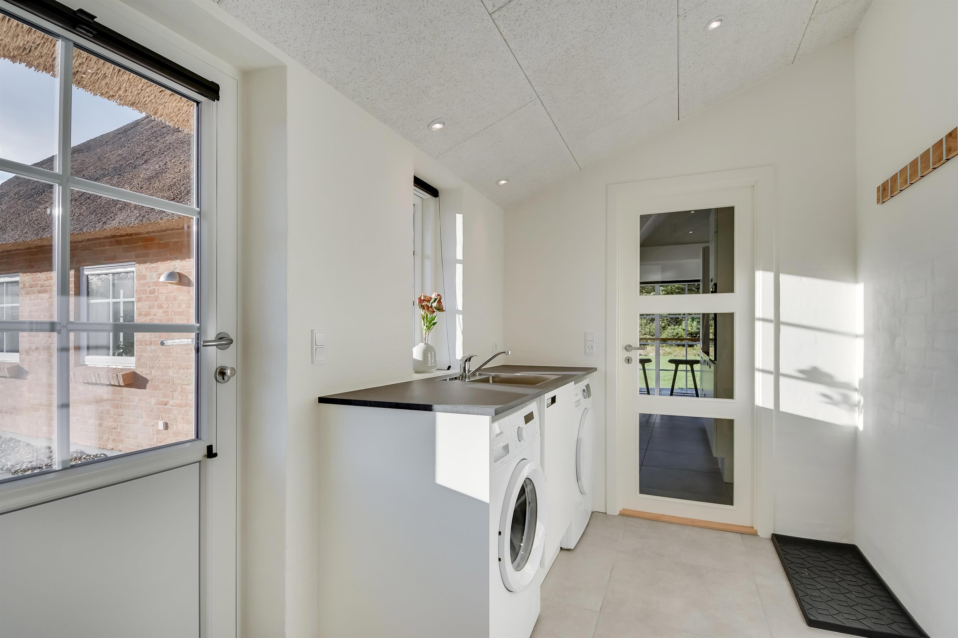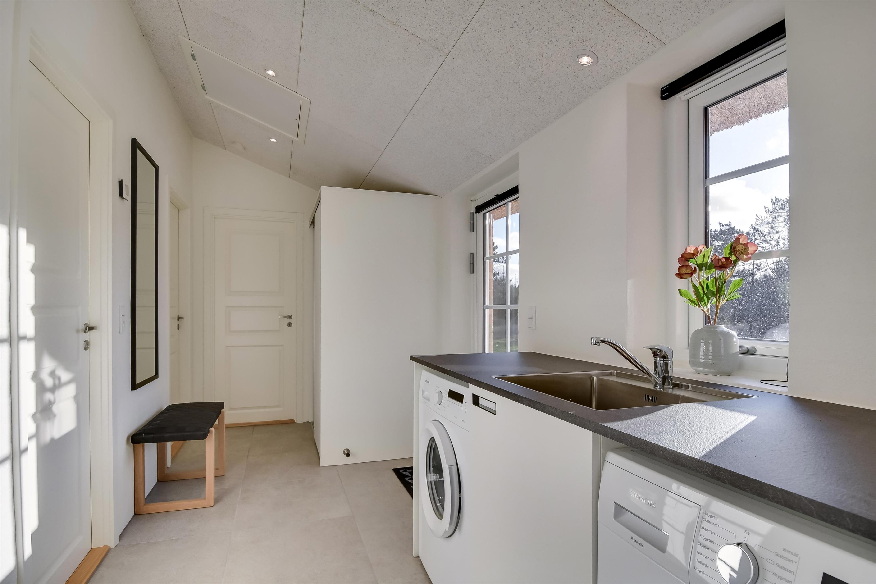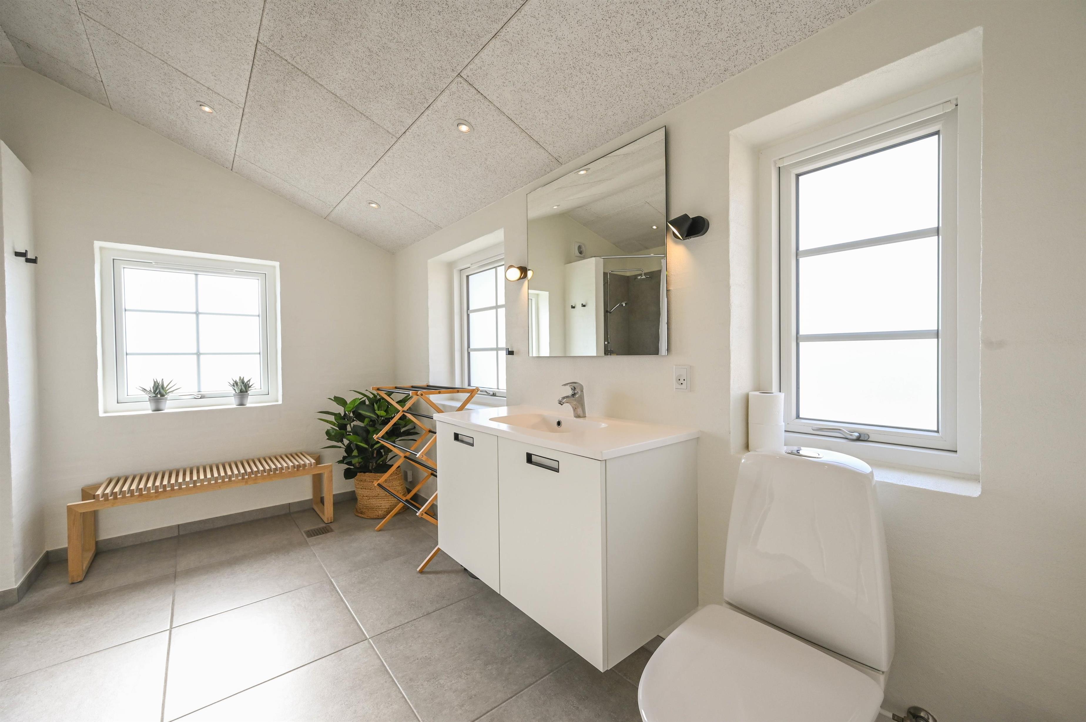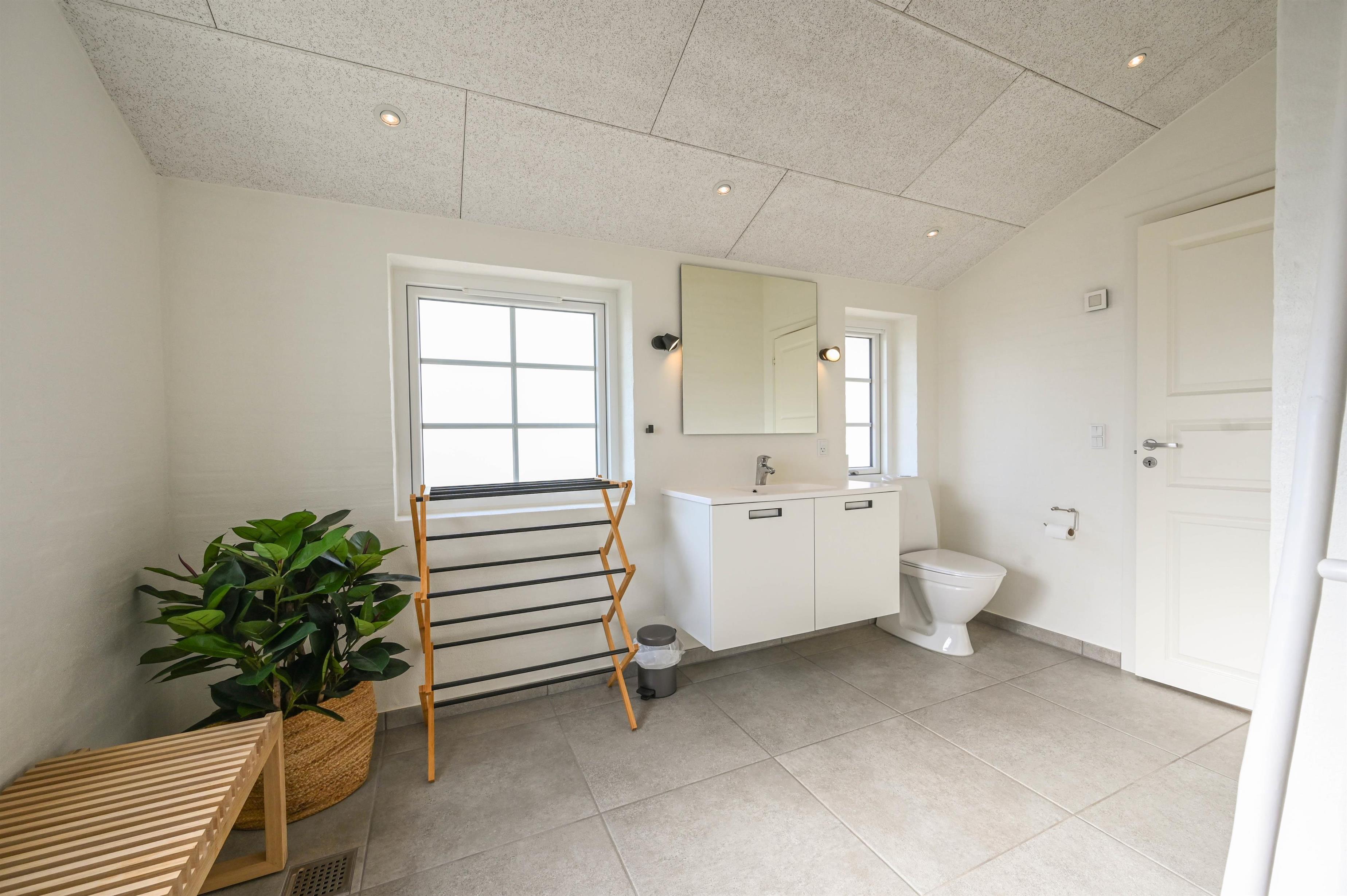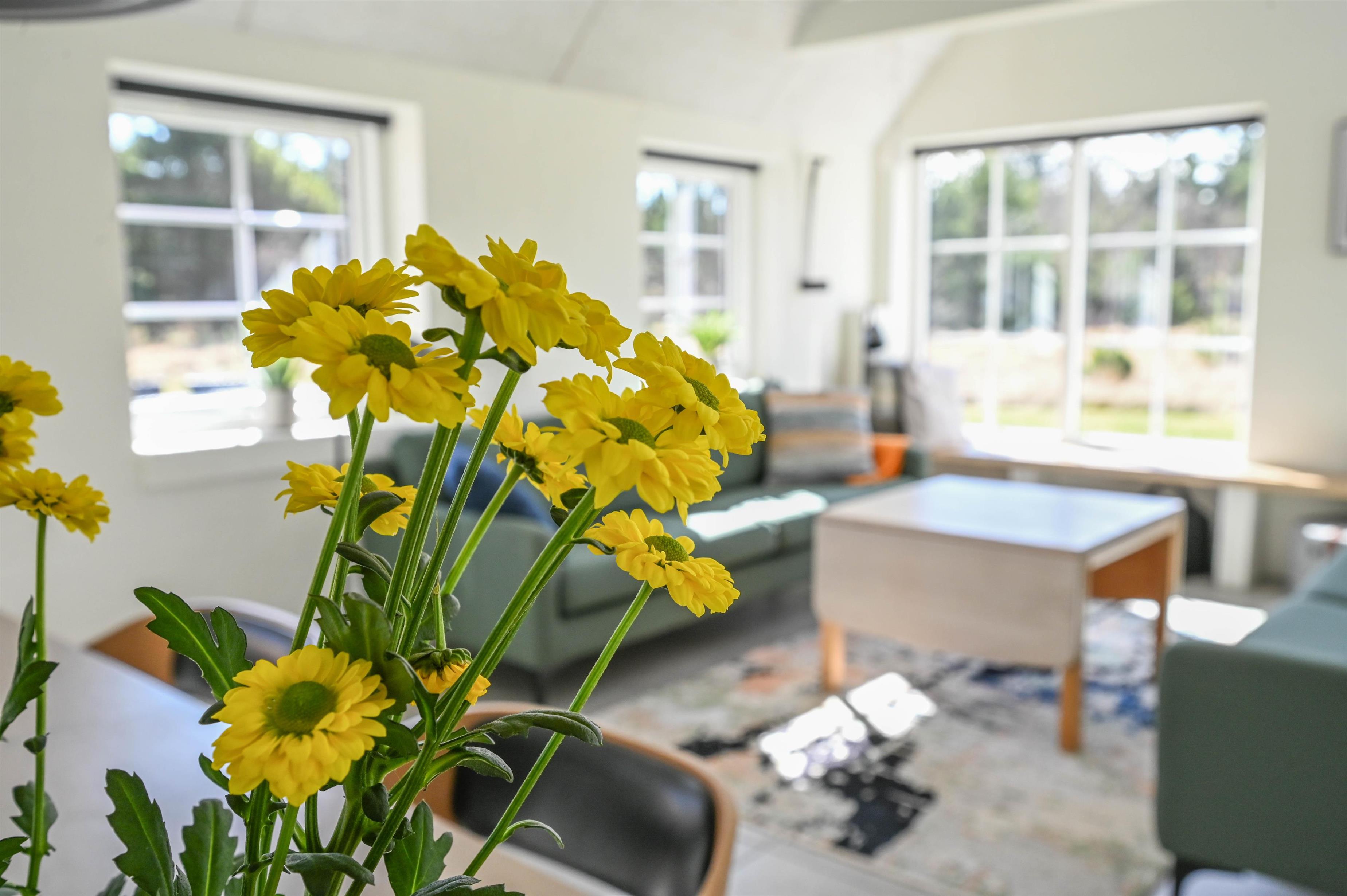 Dieses luxuriöse Ferienhaus mit 113 qm Wohnfläche liegt auf einem riesigen 5.000 qm großen Grundstück, teils Rasenfläche, teils Naturgrund. Schön für Ruhesuchende: Hier wohnt ihr ganz am Ende eines kleinen Kiesweges. Es gibt 2 tolle große Terrassen, die guten Windschutz bieten und eine herrliche Sauna. Der helle Wohnraum ist großzügig geschnitten und bis zum First offen. Kinder kommen über eine Leiter auf die kleine Halbetage unterm Dach, auf Dänisch Hems genannt. Hier können sie ihr eigenes Reich gestalten. Räuberhöhle oder Prinzessinnengemach? Alles eine Frage der Fantasie.