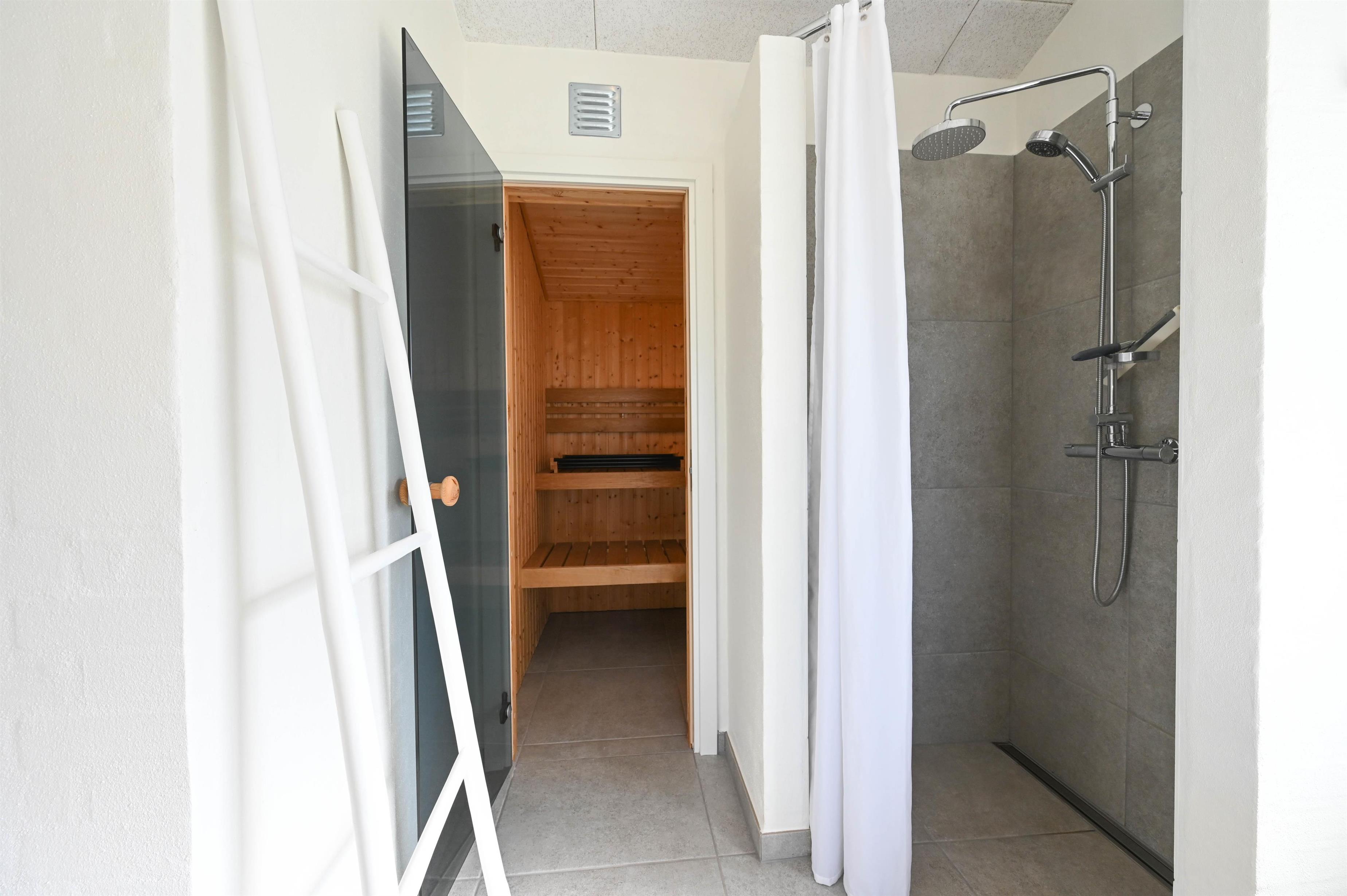 Aufteilung: Eingangsflur mit Waschmaschine und Trockner. Heller, modern im skandinavischen Design eingerichteter Wohnraum, gefliest und mit Fußbodenheizung. Schöner Essplatz und offene Küche, die richtig viel Arbeitsfläche bietet und sehr gut ausgestattet ist. Insgesamt 3 Schlafzimmer mit Holzfußboden: Zwei mit Doppelbett, davon eines mit Zugang zum Bad, eines mit Ausgang auf die Terrasse und eines mit 2 Einzelbetten. Ihr habt 2 Bäder zur Verfügung, davon ein großes Luxusbad mit Sauna.