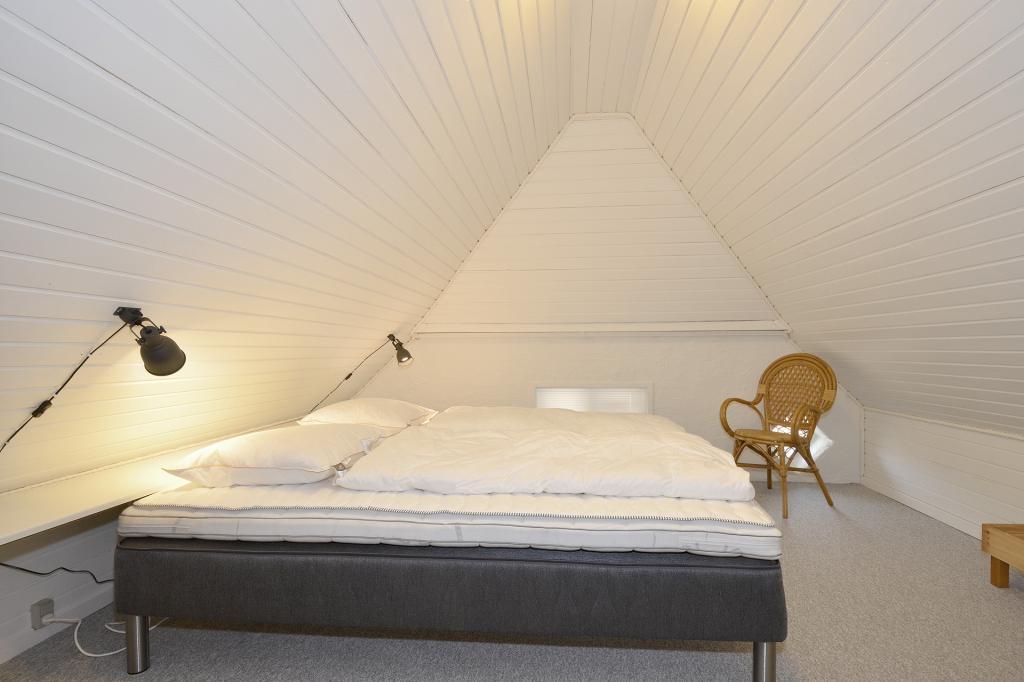 Schlafzimmer im Erdgeschoss mit kleinem Doppelbett