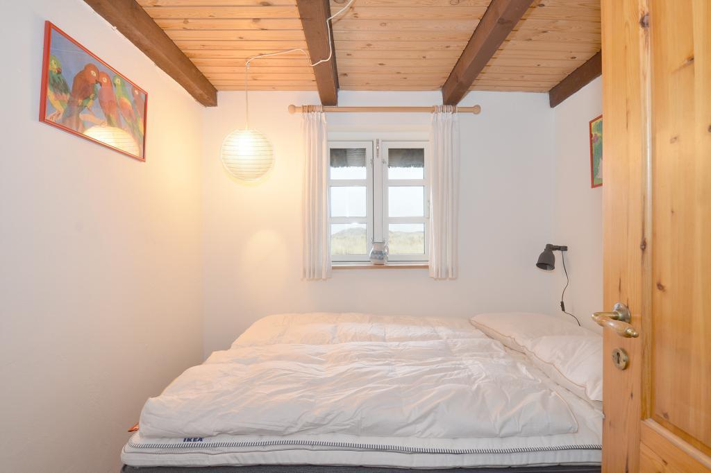 Obergeschoss: Großes Schlafzimmer mit Doppelbett und wunderschönem Blick auf die Dünen