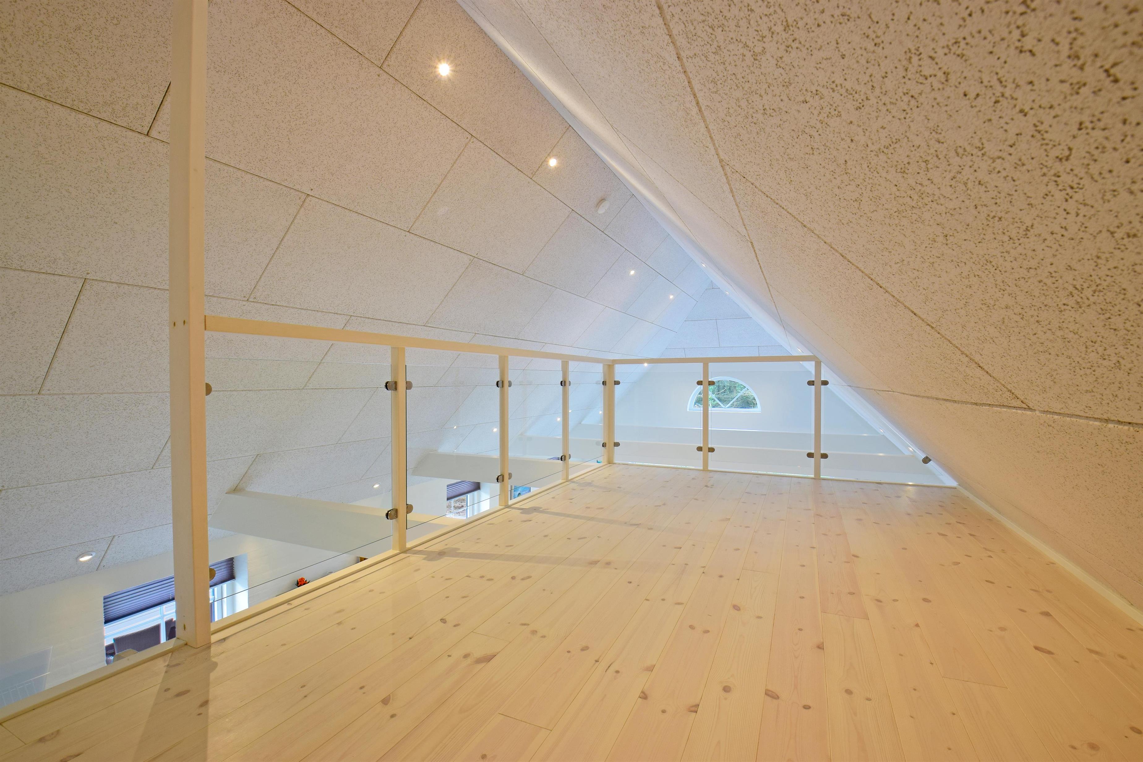 Große Fenster nach Westen sorgen für viel Licht und einen schönen Blick auf das Naturgrundstück, während die offenen Decken in Wohn- und Küchenbereich für ein luftiges Raumgefühl sorgen.