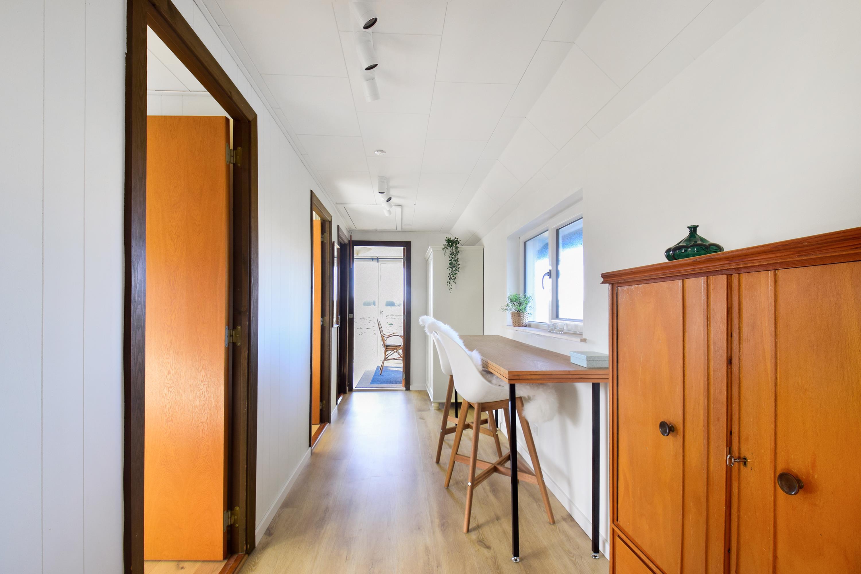 Das Ferienhaus ist 100 m² groß und in hellen, freundlichen Farben gestaltet – mit natürlichen Materialien und großen Fenstern, die viel Licht hereinlassen und den Blick auf die umliegende Natur öffnen.