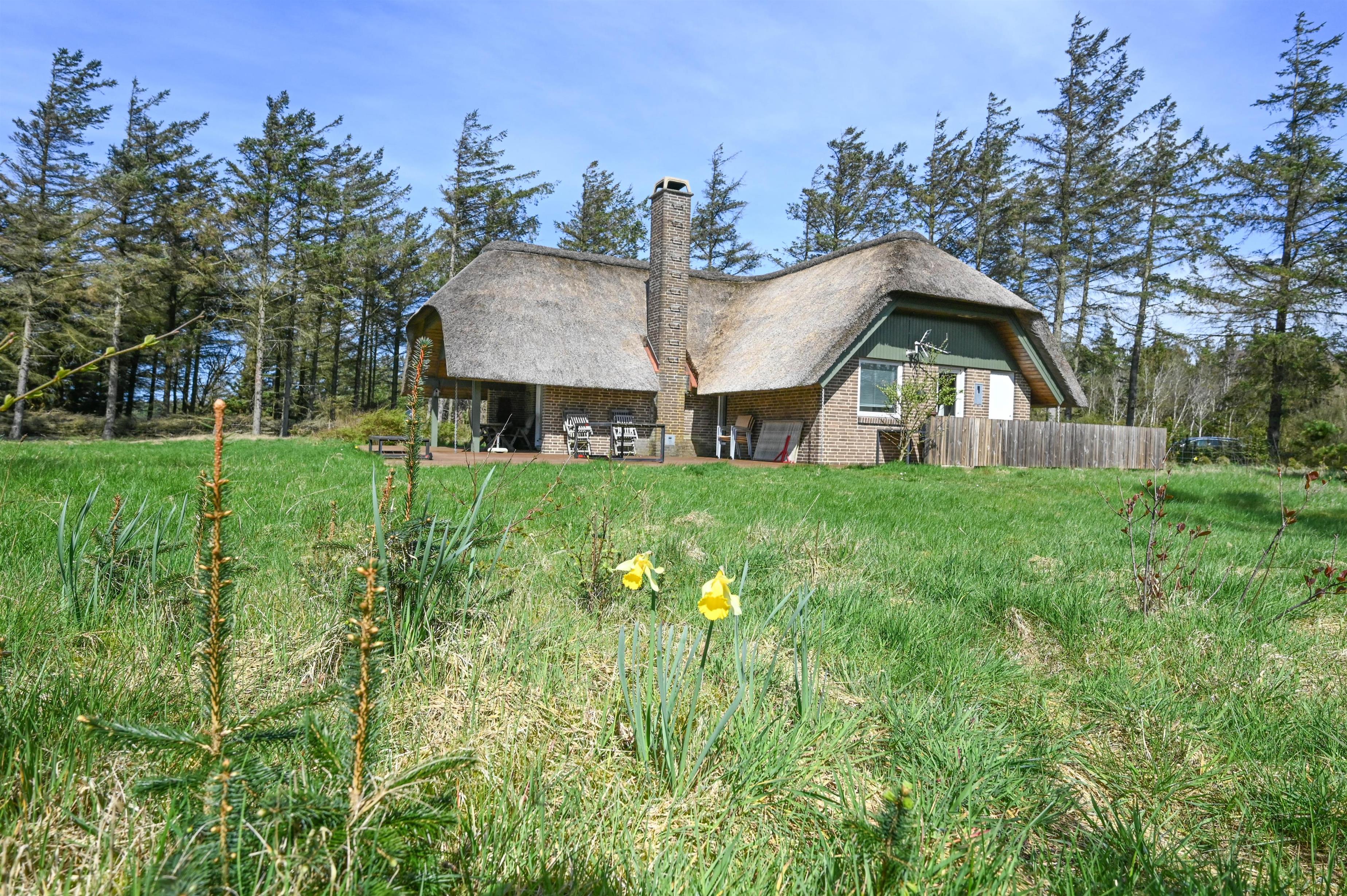 Auf einem schönen, teilweise gepflegten Naturgrundstück von 5.000 m², umgeben von Dünen und grüner Bepflanzung, liegt dieses gepflegte Ferienhaus mit Reetdach und guten Windschutzverhältnissen.