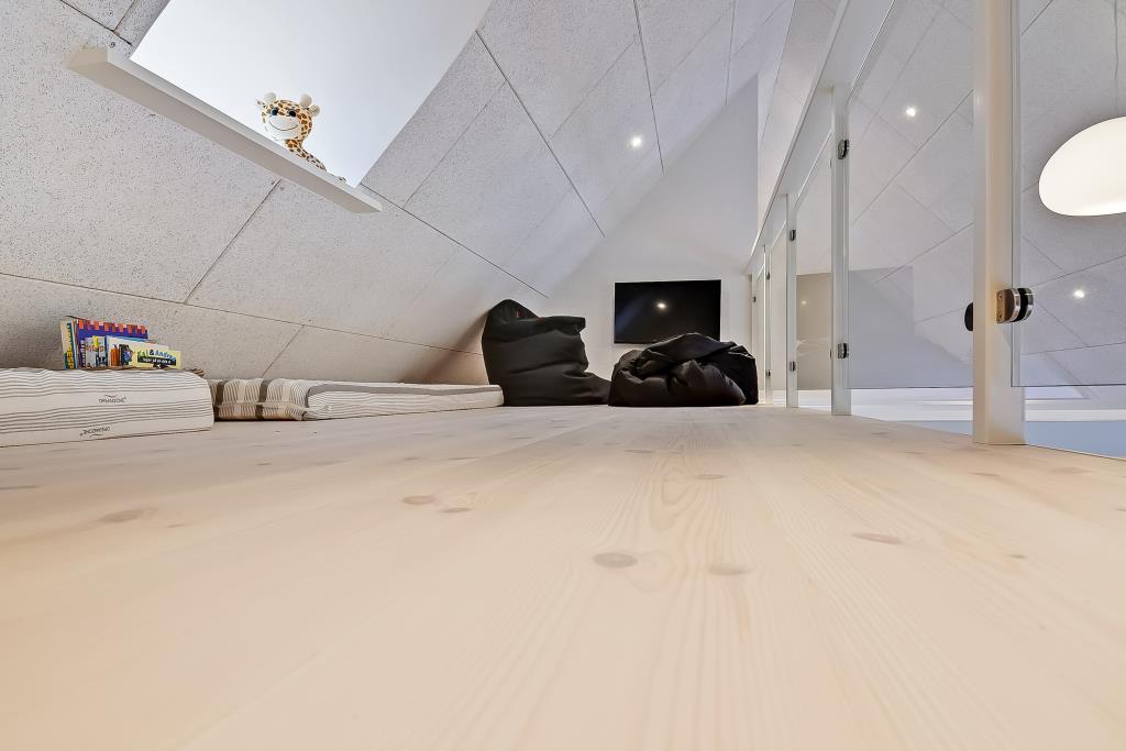 Vom Wohnzimmer führt eine Treppe auf den Hems, wo sich eine gemütliche Spielecke mit Konsole befindet – perfekt für Kinder oder ruhige Abende.