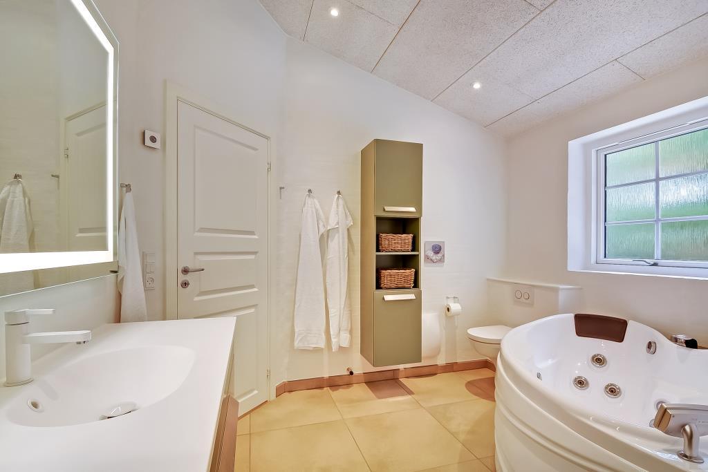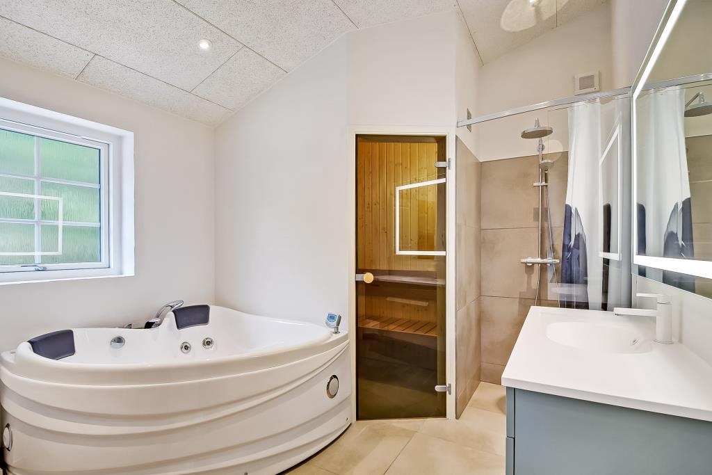 Großes Badezimmer mit Dusche, Whirlpool und Sauna