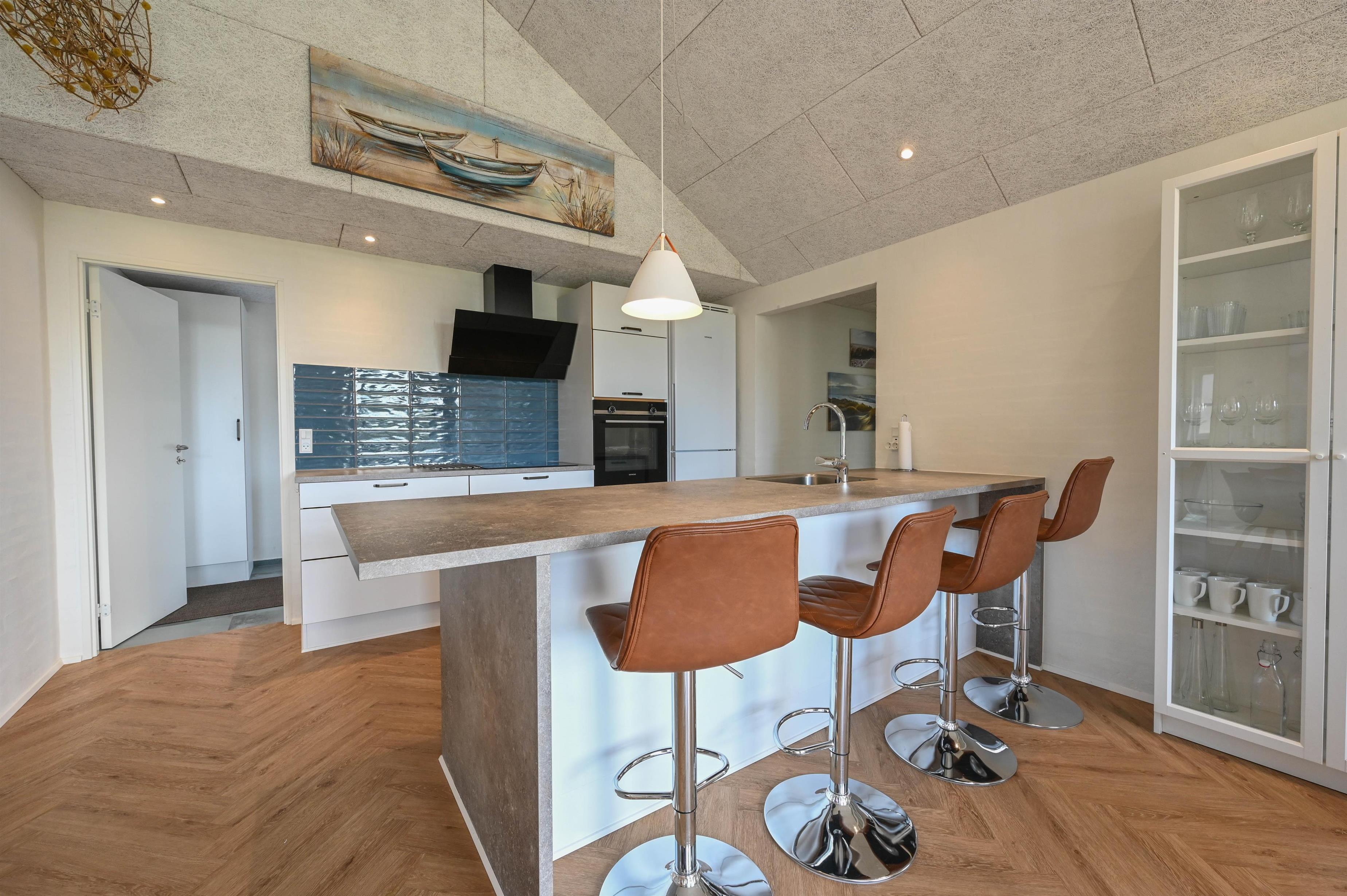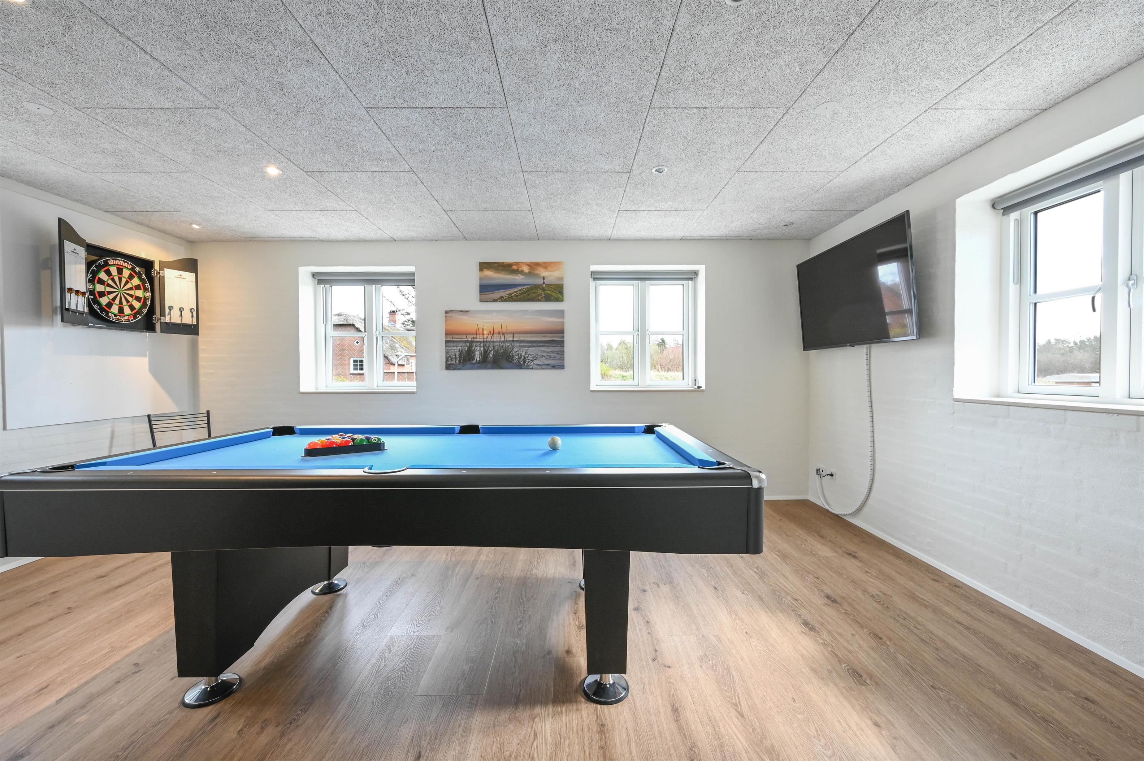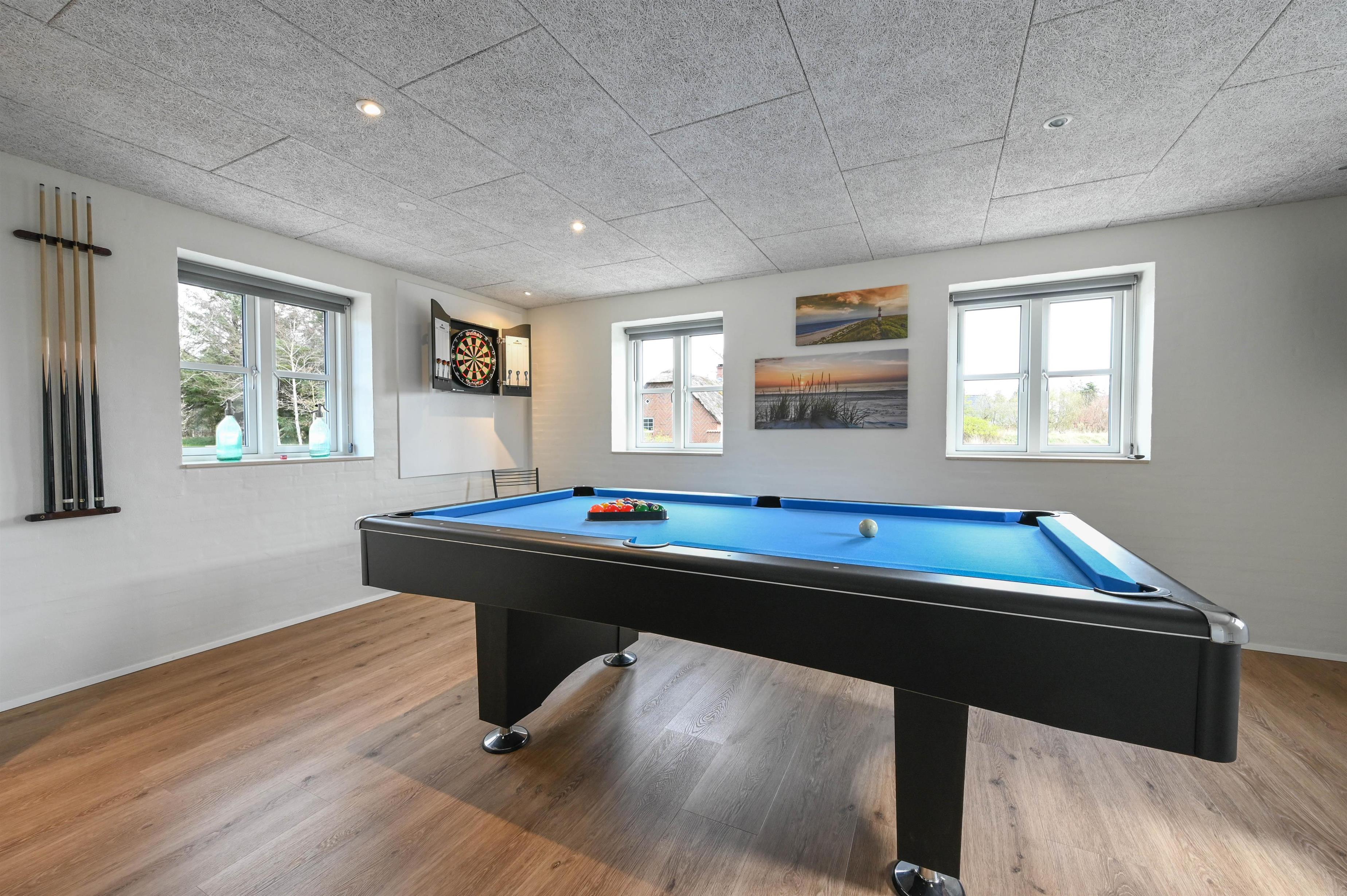 Aufteilung: Eingangsflur, großer Wohnbereich mit offener, großzügig geschnittener Küche, Essplatz und Kaminofen. Insgesamt 2 Schlafzimmer, beide mit großem Doppelbett. Zwei Bäder, eines davon mit Whirlpool und Sauna. Extra Fun-Raum mit Billardtisch und Dartscheibe. Mehrere, gut windgeschützte Terrassen und Außenspa.