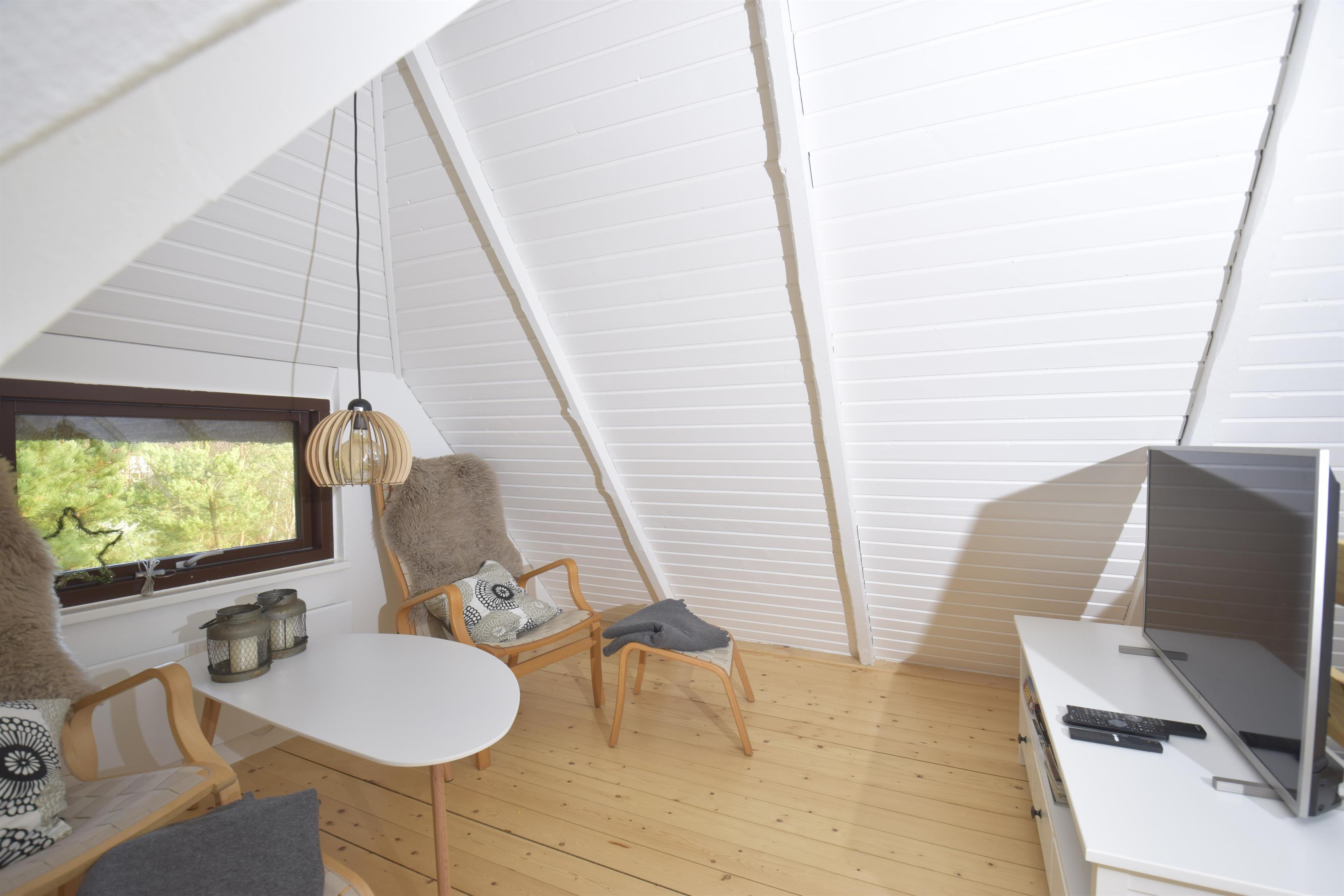 Kleiner Aufenthaltsbereich mit Sesseln und Flachbildfernseher