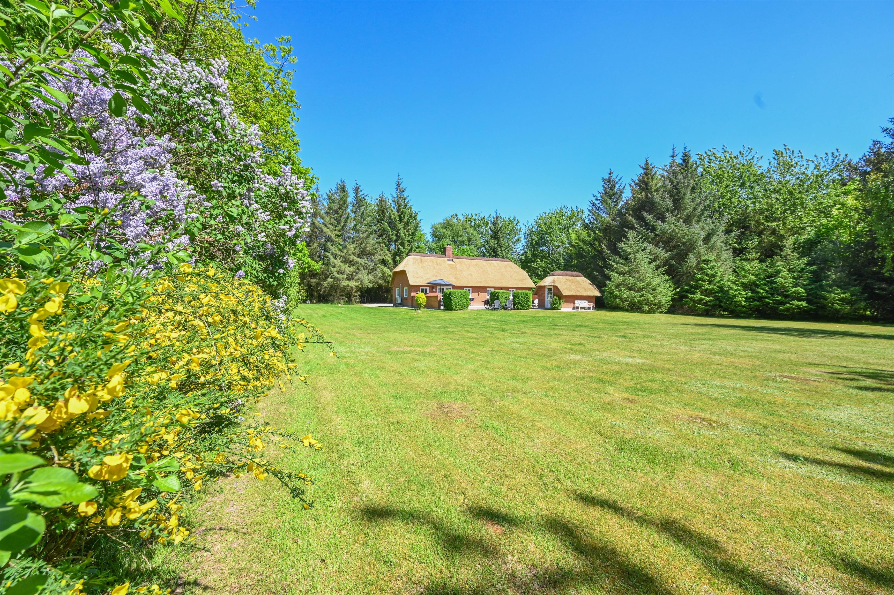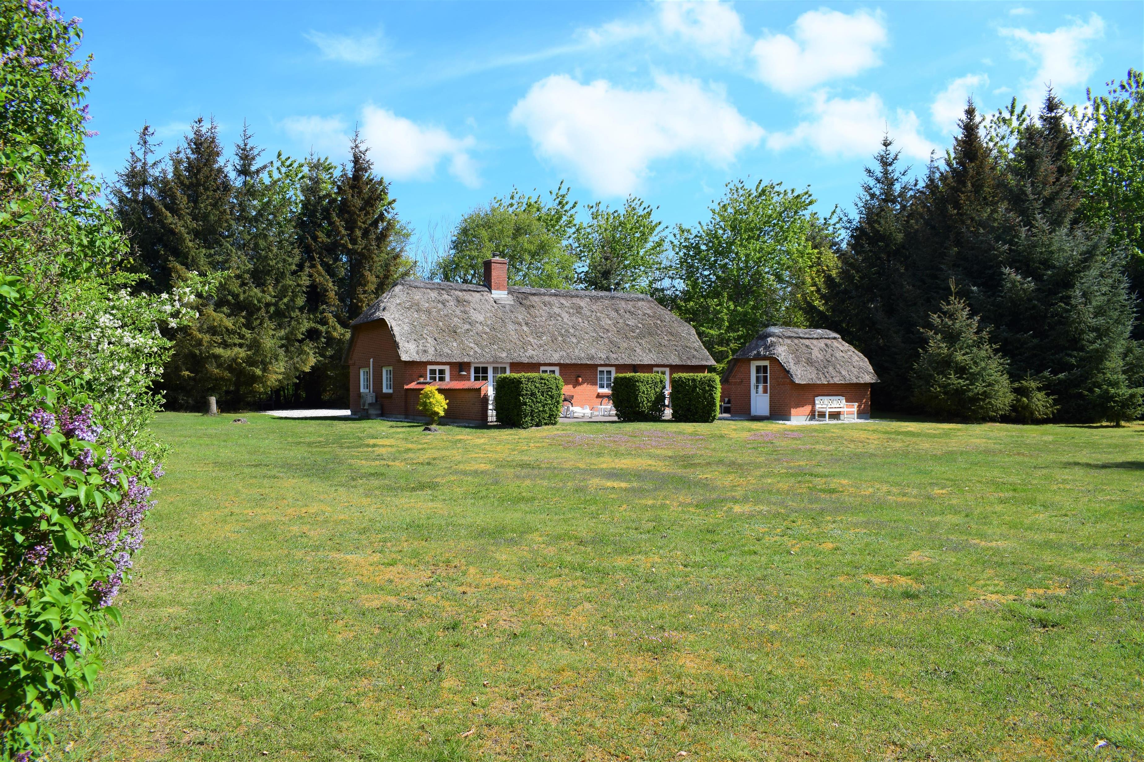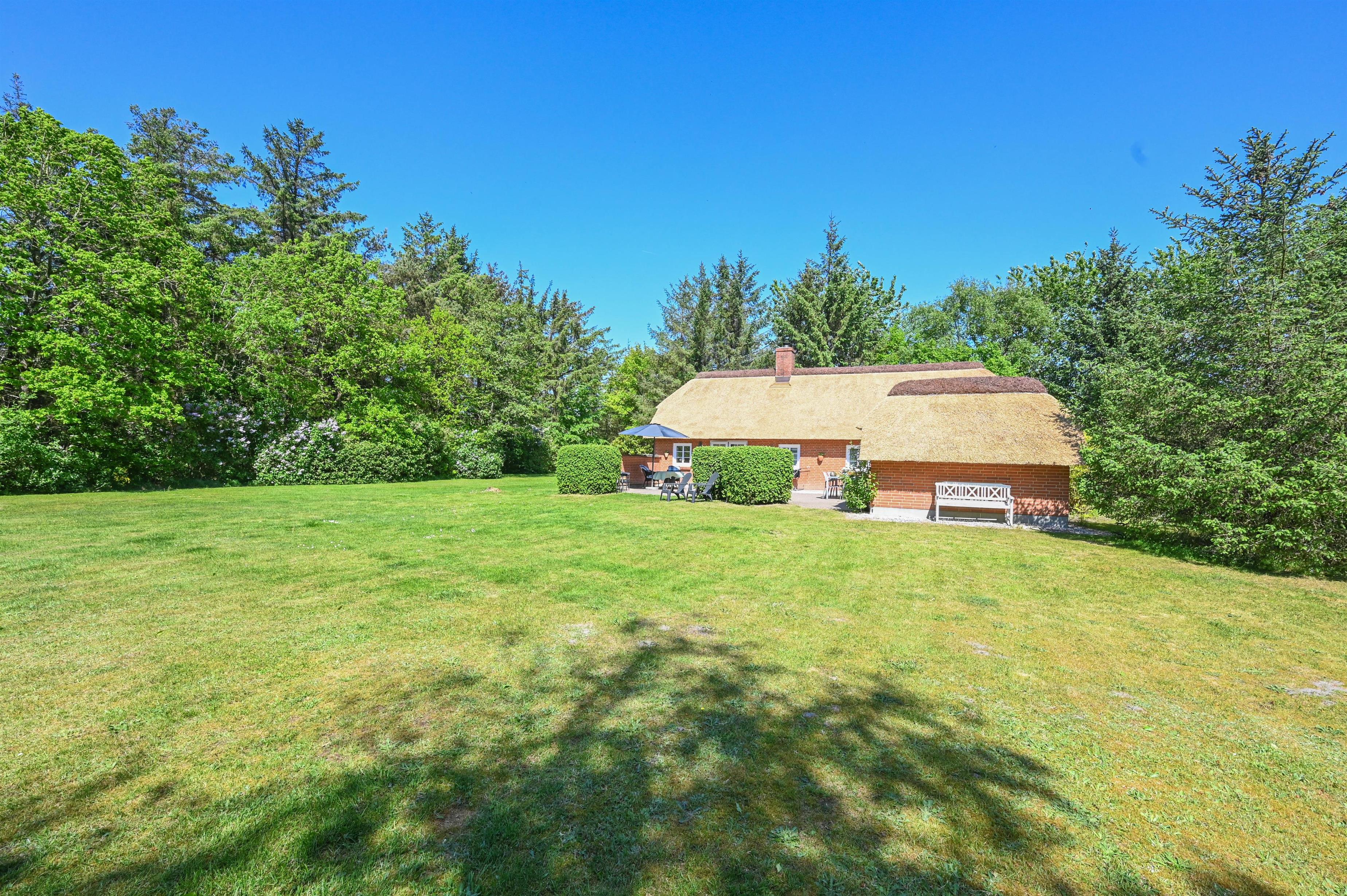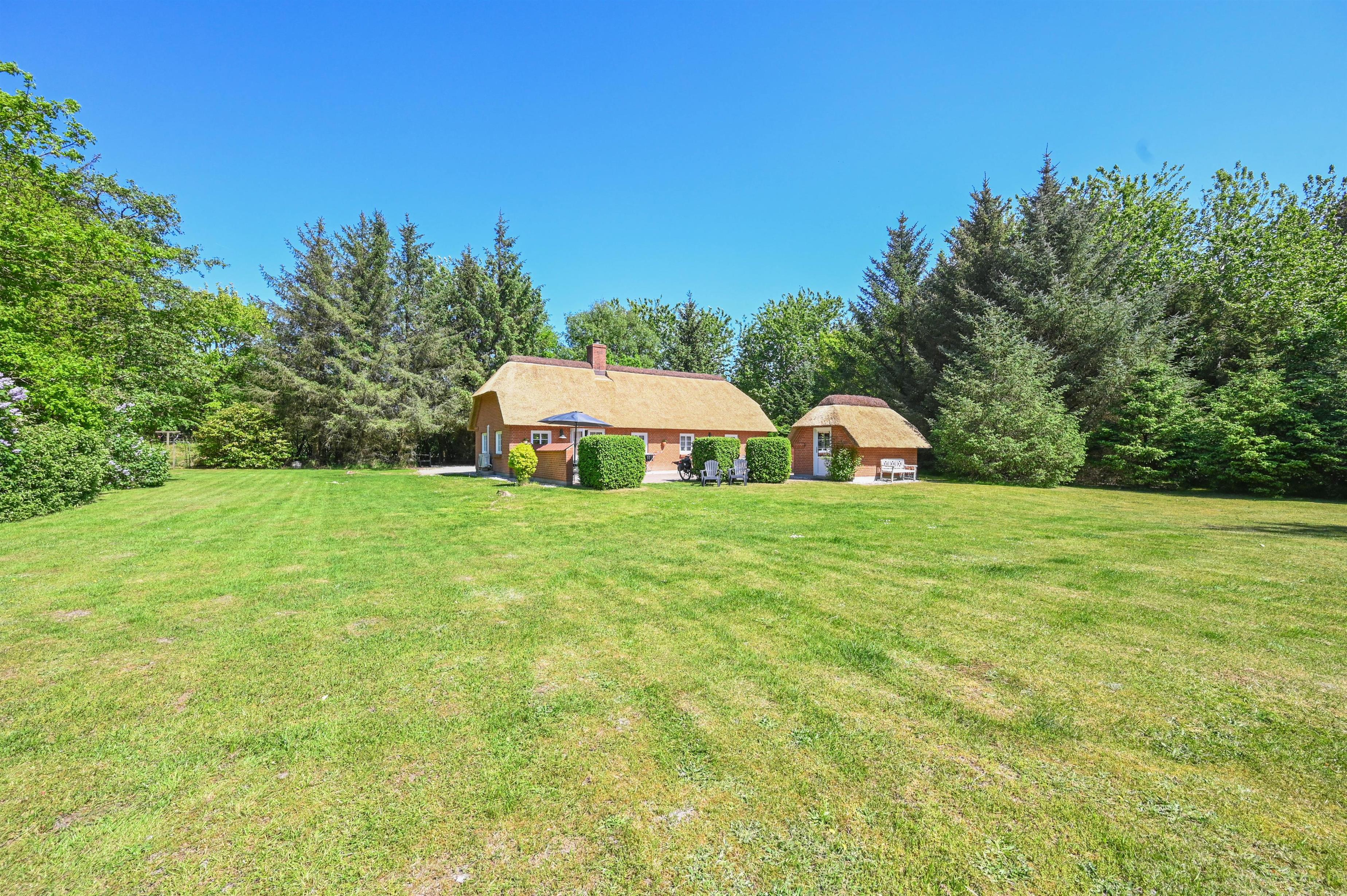 Auf einem großen, friedlichen Naturgrundstück, das hauptsächlich aus Rasenfläche besteht und von Bäumen umgeben ist, liegt dieses gepflegte und gemütliche Ferienhaus – der perfekte Ort für alle, die Ruhe, Platz und Erholung inmitten der Natur suchen.