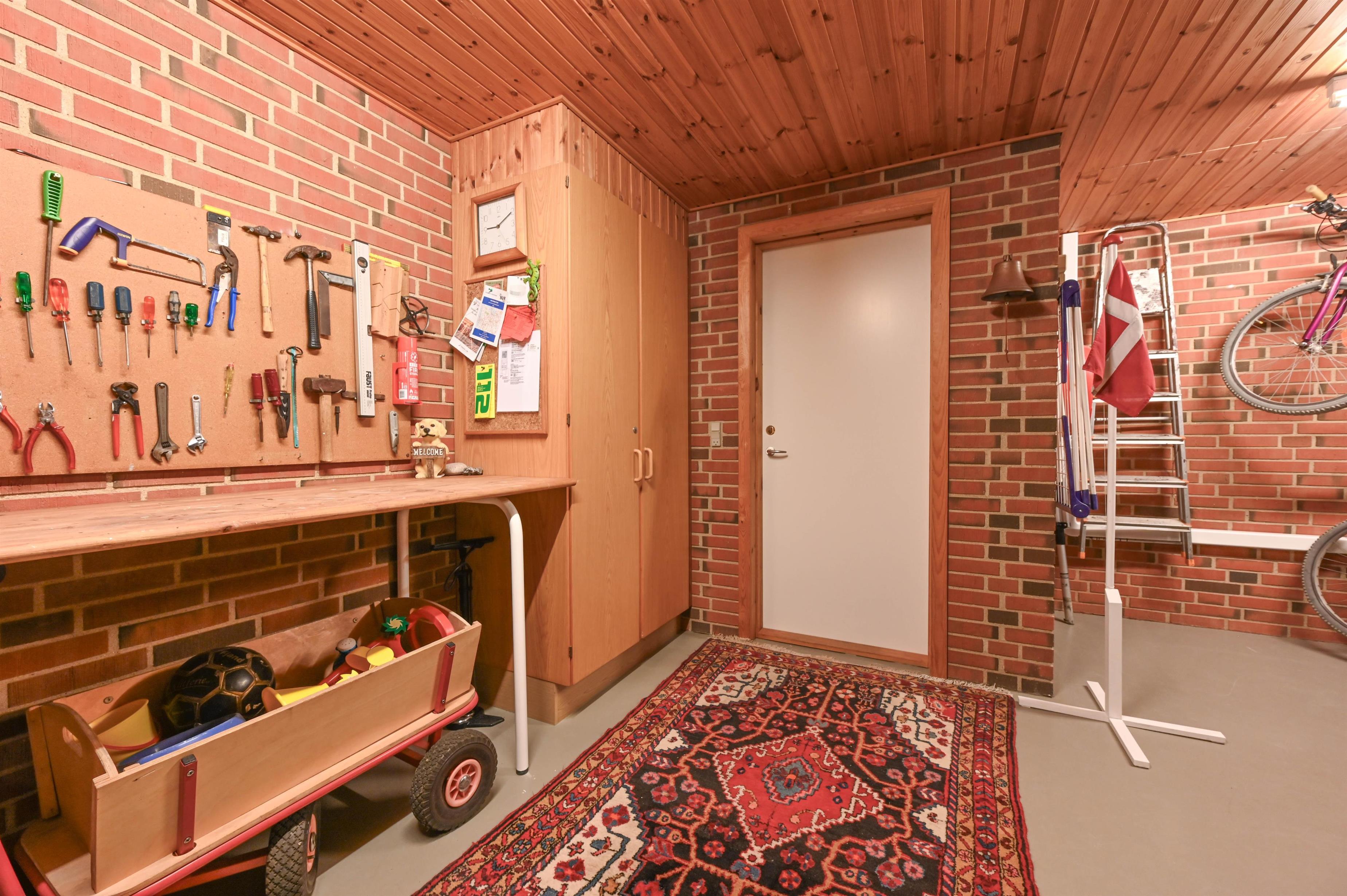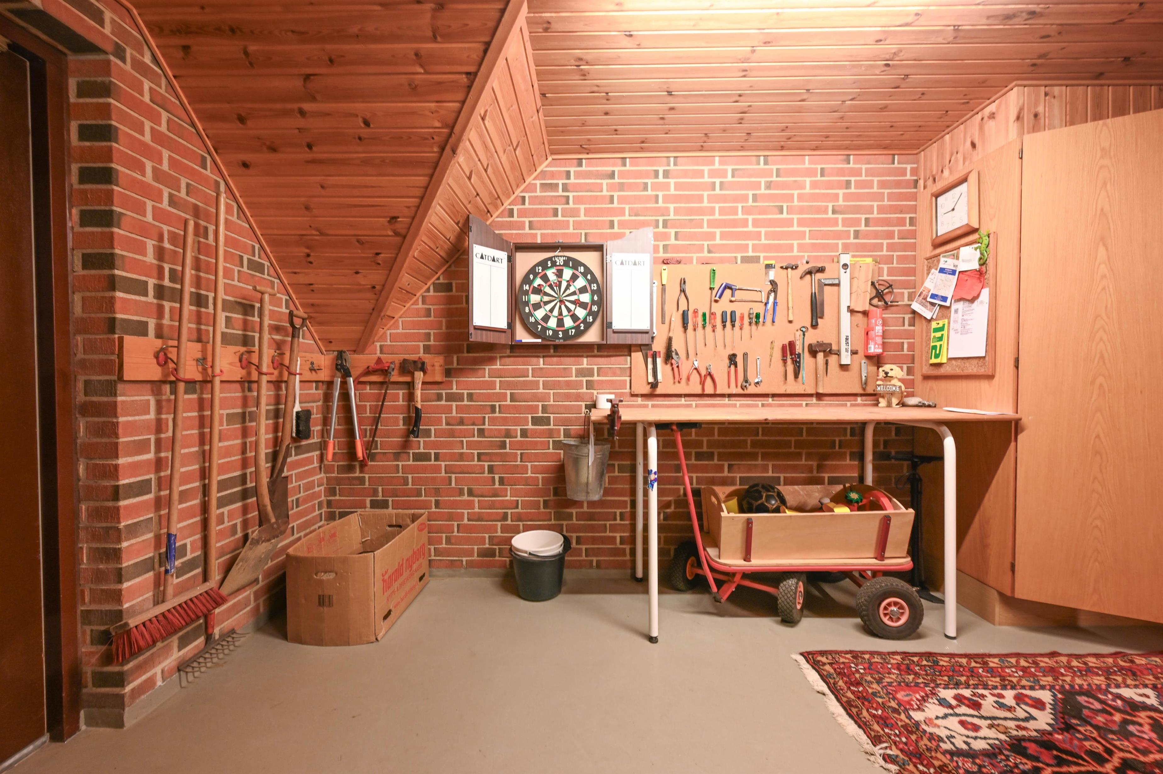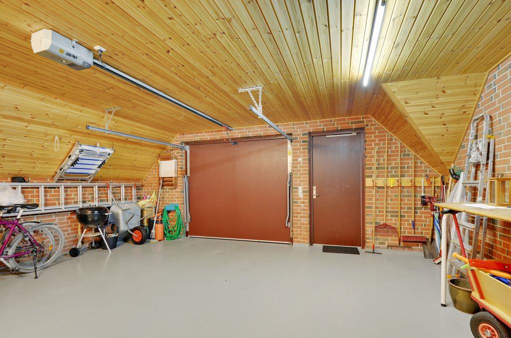 Das Haus verfügt außerdem über eine integrierte Garage / Mehrzweckraum (37 m²) mit viel Platz für Fahrräder, Brennholz und Aufbewahrung – mit direktem Zugang zum Haus.