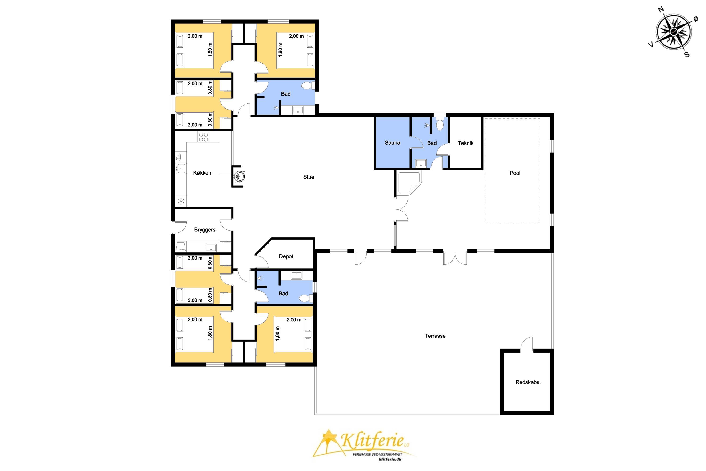- Zwei separate Schlafbereiche mit jeweils 3 Schlafzimmern und 1 Badezimmer