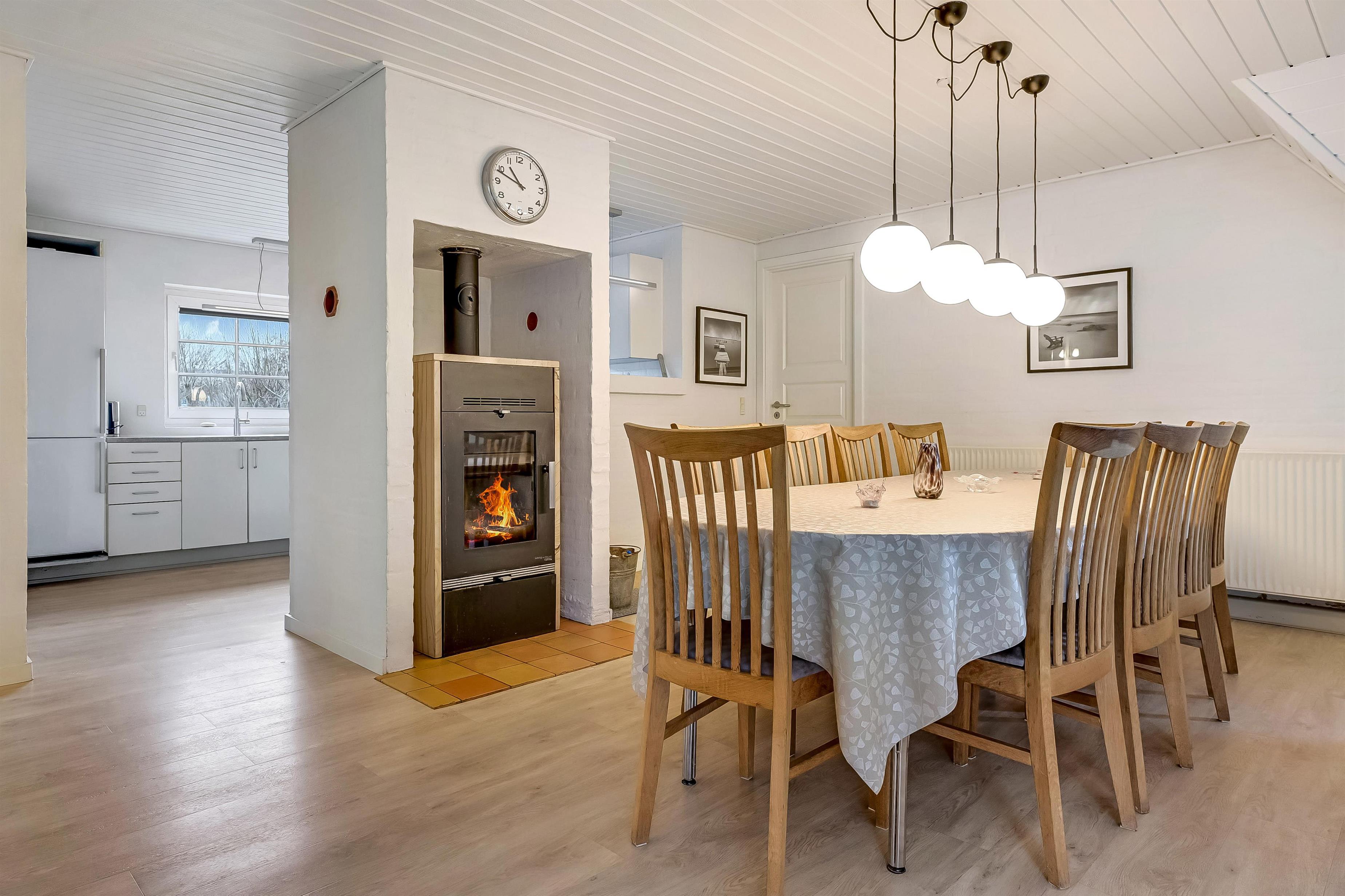 Wenn der Tag sich dem Ende neigt, sorgt der Kamin im Wohnzimmer für wohlige Wärme und echte Ferienhausstimmung.