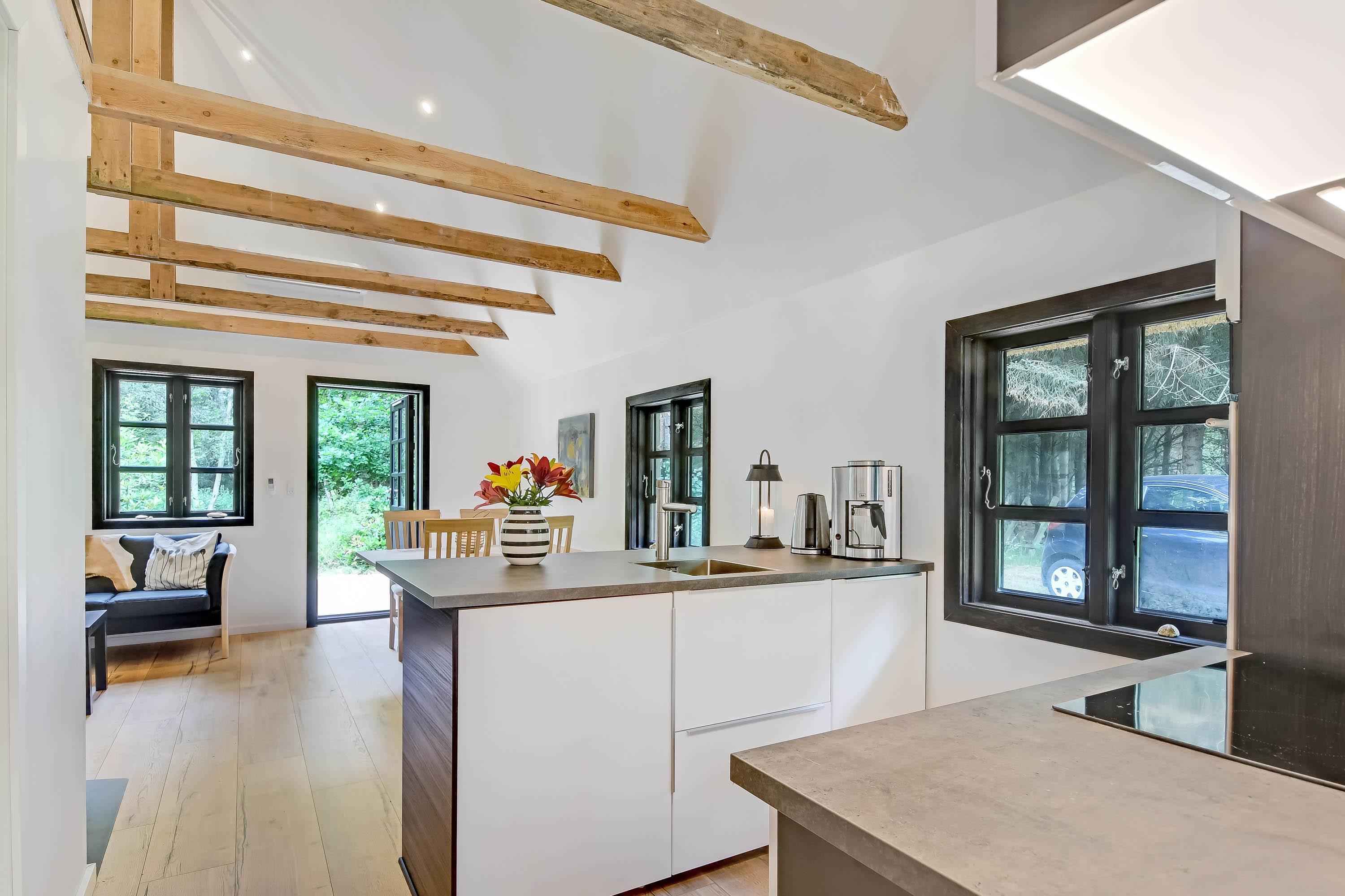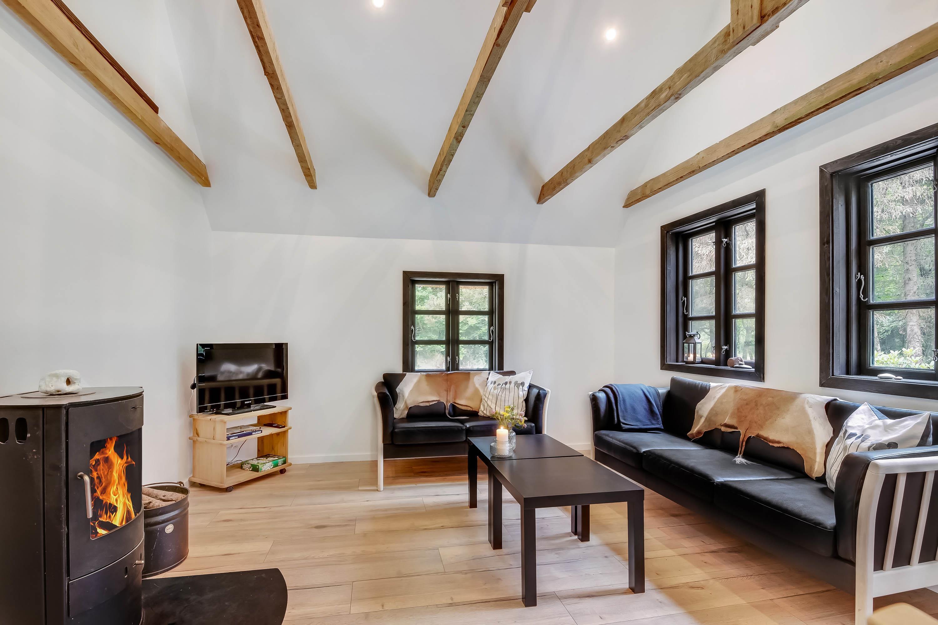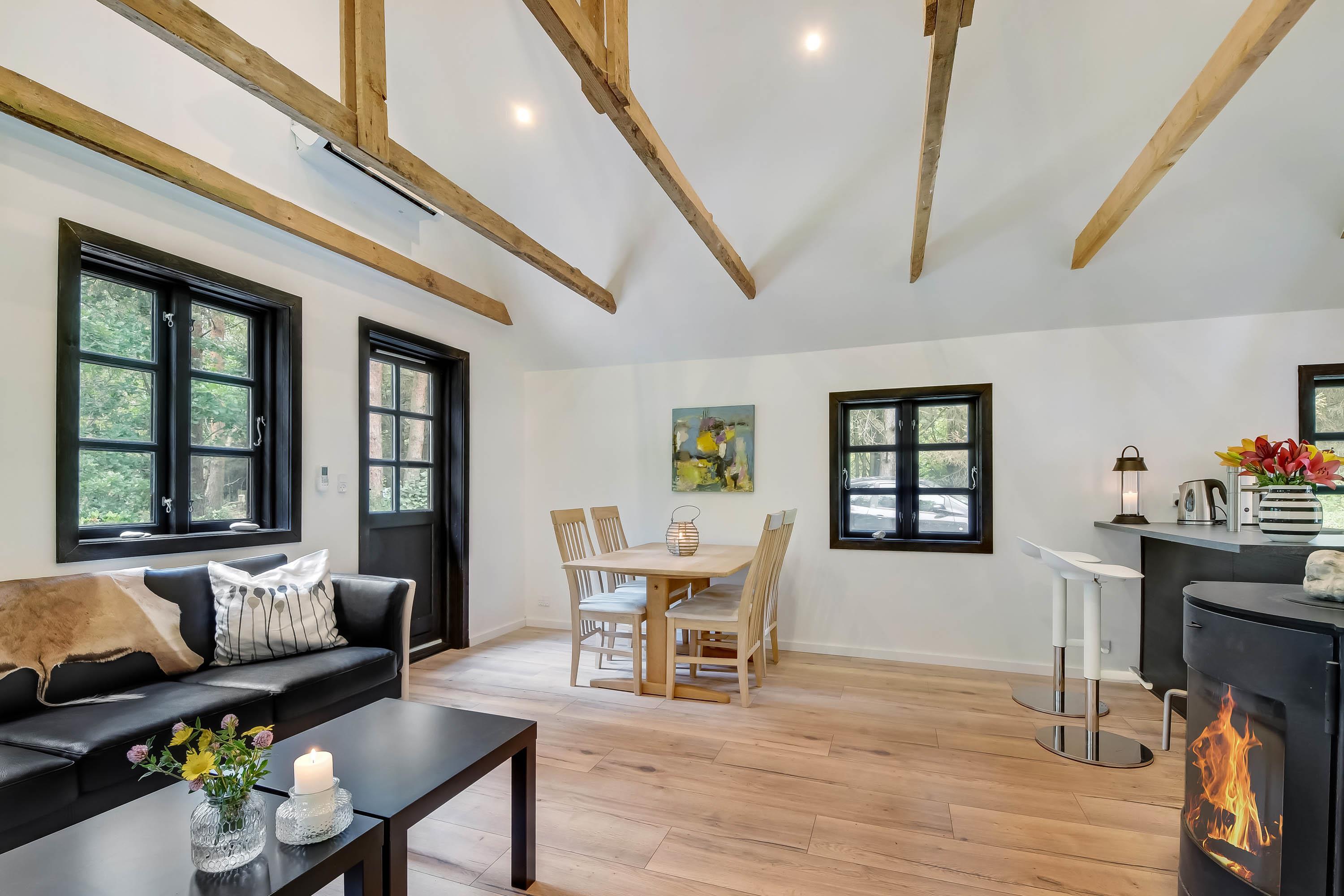 Im Inneren empfängt euch eine helle und wohnliche Atmosphäre, geprägt von sichtbaren Balken, schönen Holzböden und einer angenehmen Mischung aus modernem Komfort und klassischer Ferienhausgemütlichkeit.