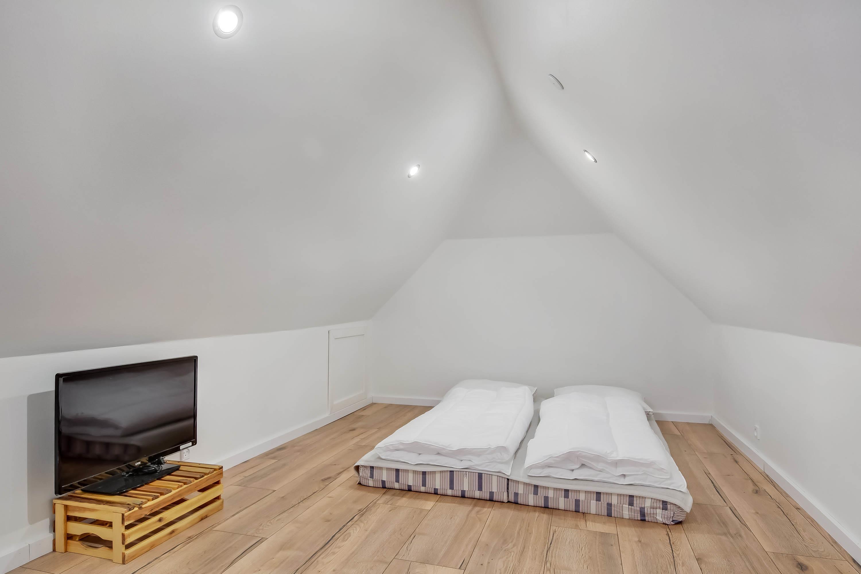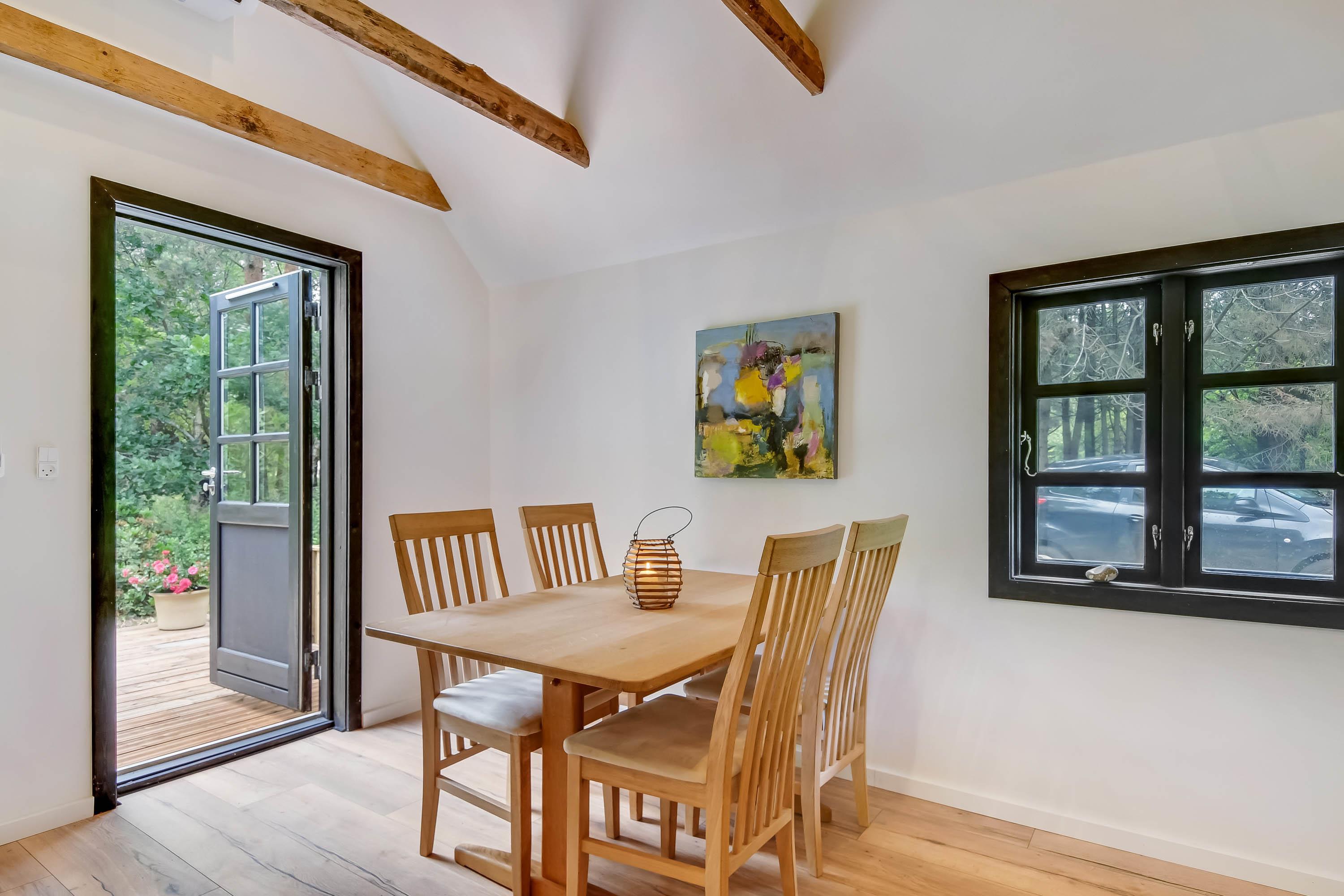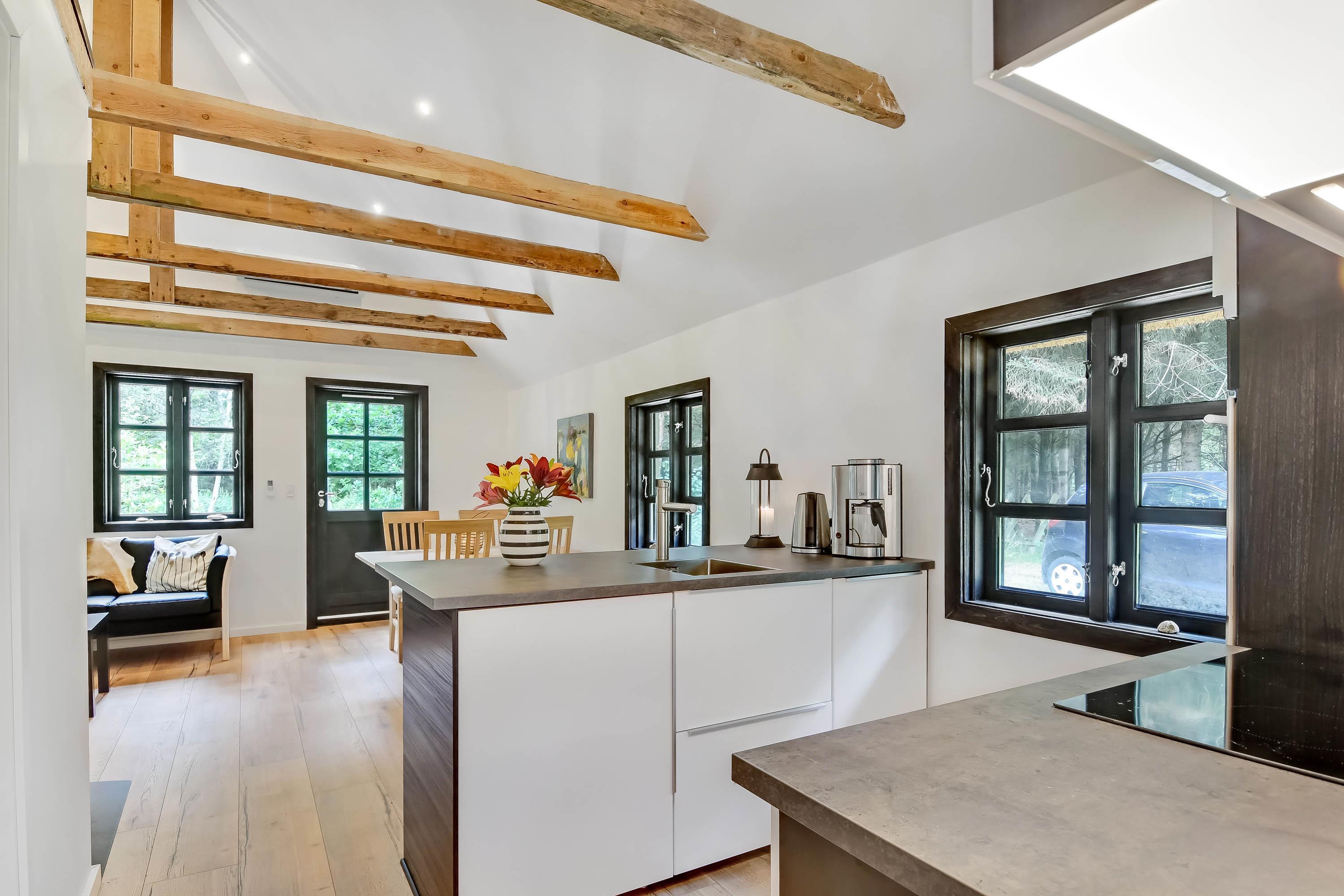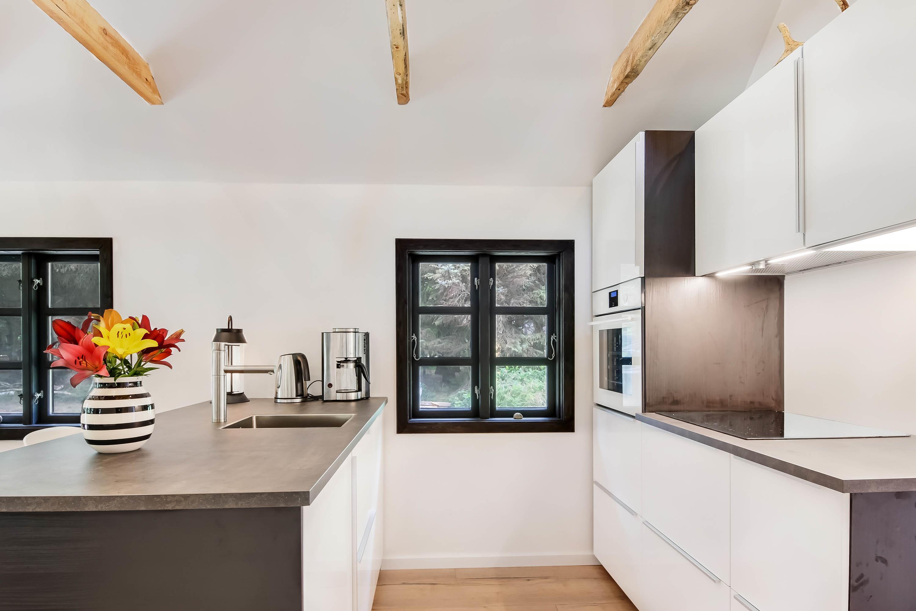 Im Inneren empfängt euch eine helle und wohnliche Atmosphäre, geprägt von sichtbaren Balken, schönen Holzböden und einer angenehmen Mischung aus modernem Komfort und klassischer Ferienhausgemütlichkeit.