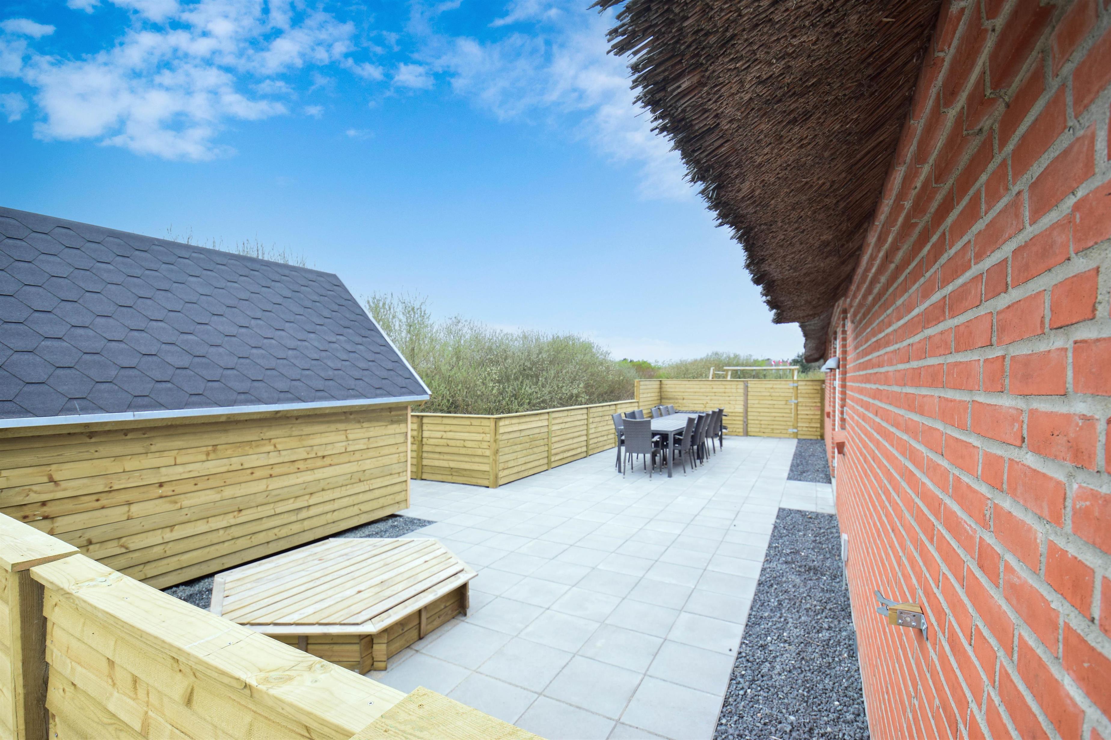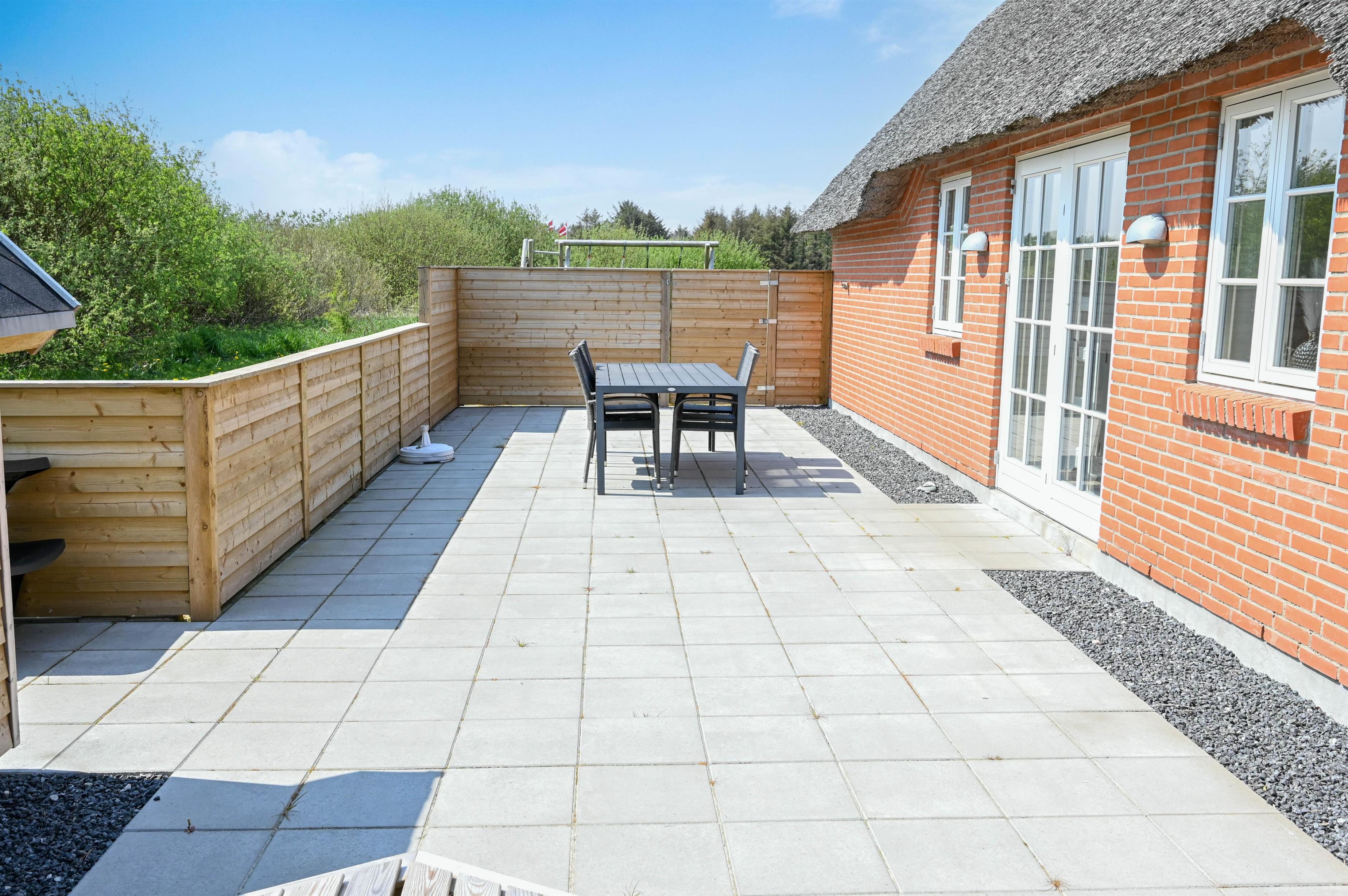 Die große, komplett eingezäunte Terrasse sorgt für Privatsphäre und Ruhe – ideal zum Sonnenbaden, Entspannen oder für gemütliche Grillabende.