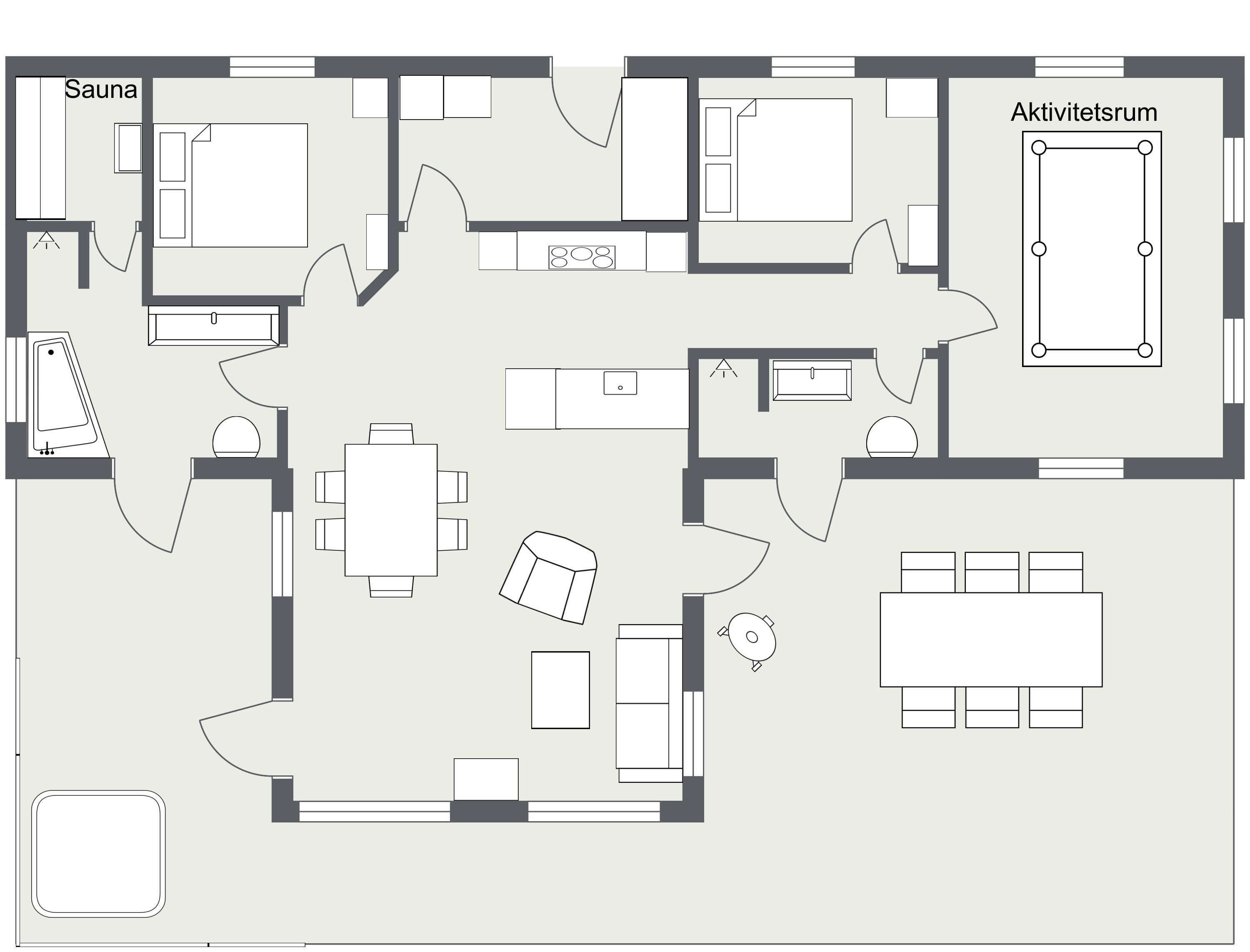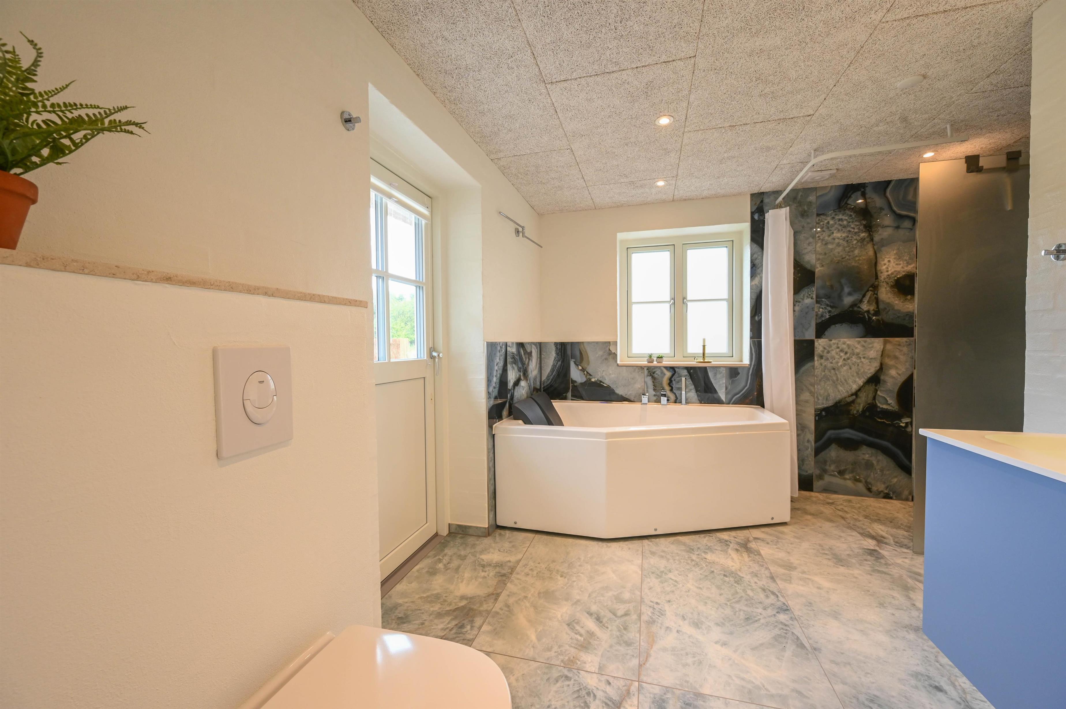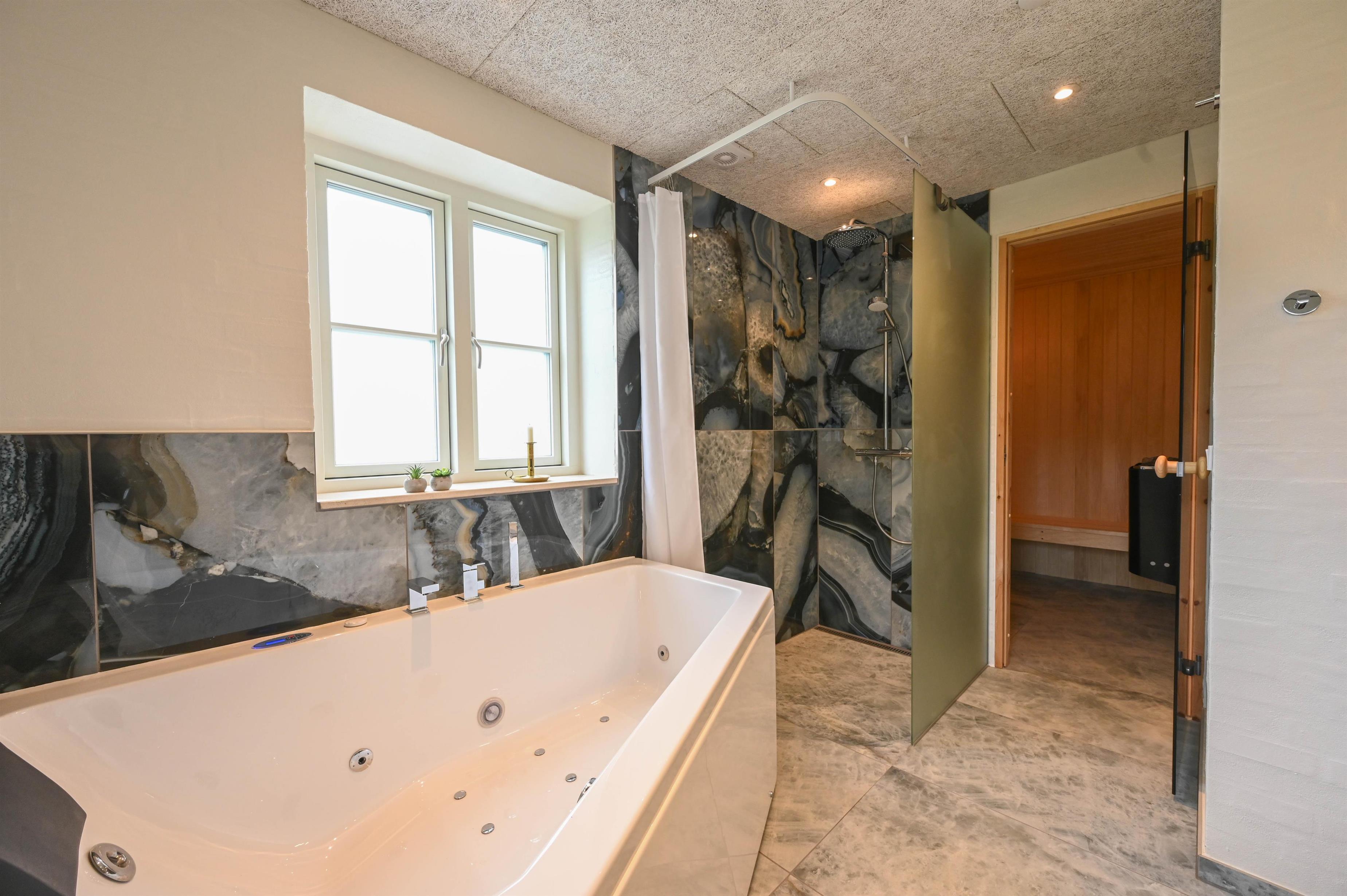 Insgesamt habt ihr 2 Schlafzimmer, beide mit Doppelbett und TV. Sauna, Luxusbadewanne mit Pool-Wärmepumpe und natürlich Fußbodenheizung warten auf euch im großen Wellnessbad. Darüber hinaus gibt es ein weiteres, etwas kleineres Badezimmer.