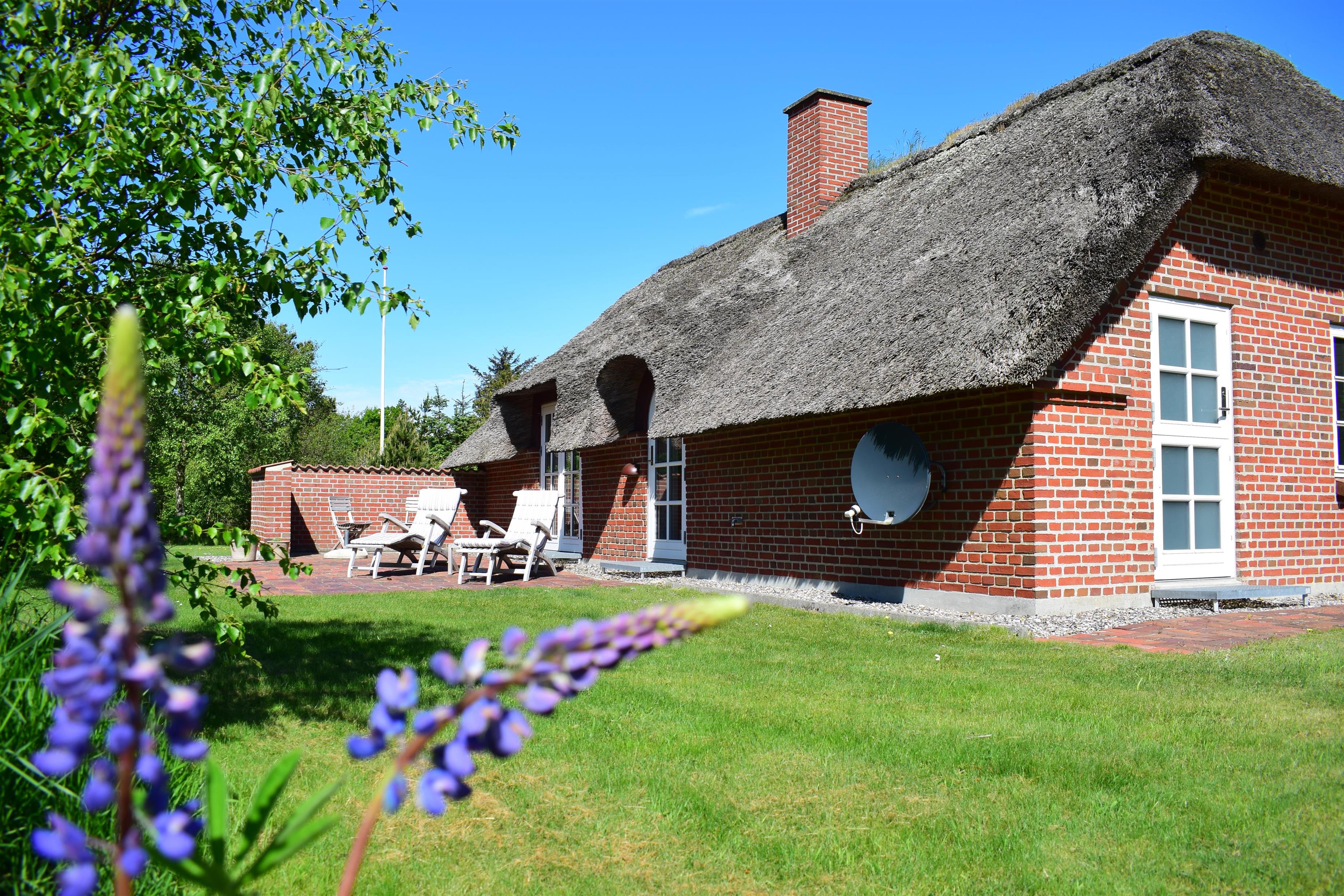 Ein modernes und vollständig renoviertes Ferienhaus auf einem großen, idyllischen Grundstück – umgeben von Bäumen, Vogelgezwitscher und westjütländischer Natur.