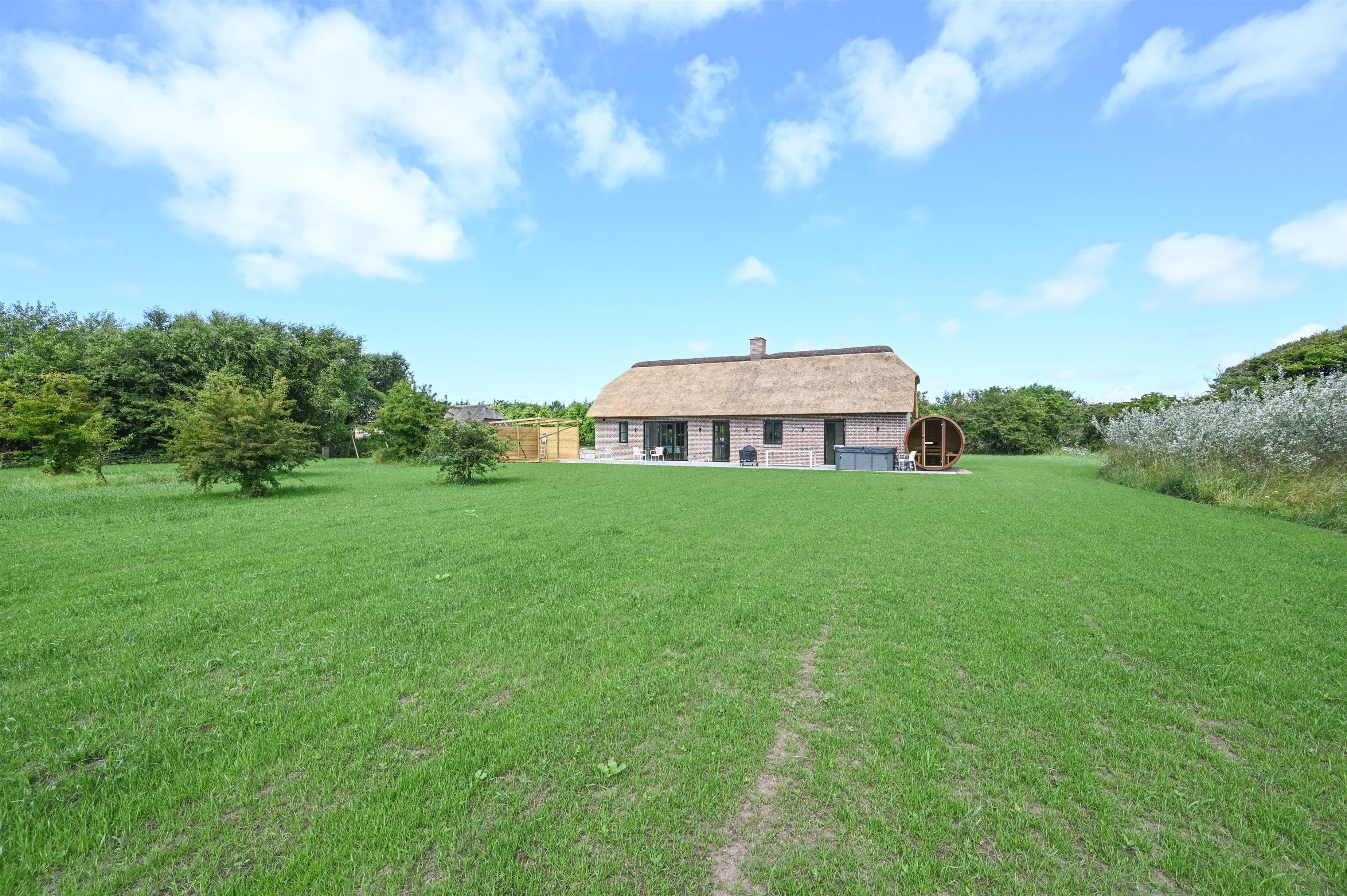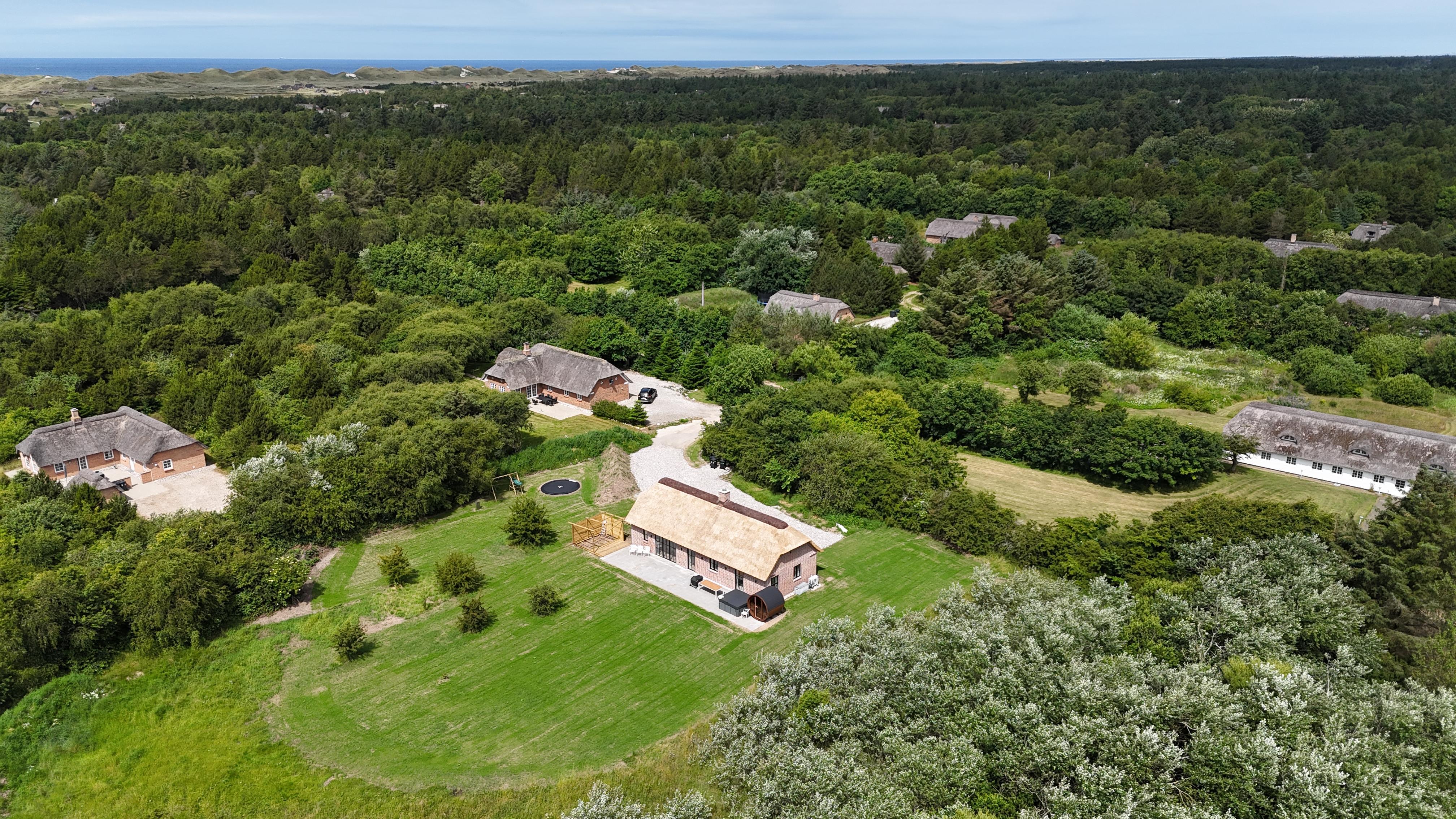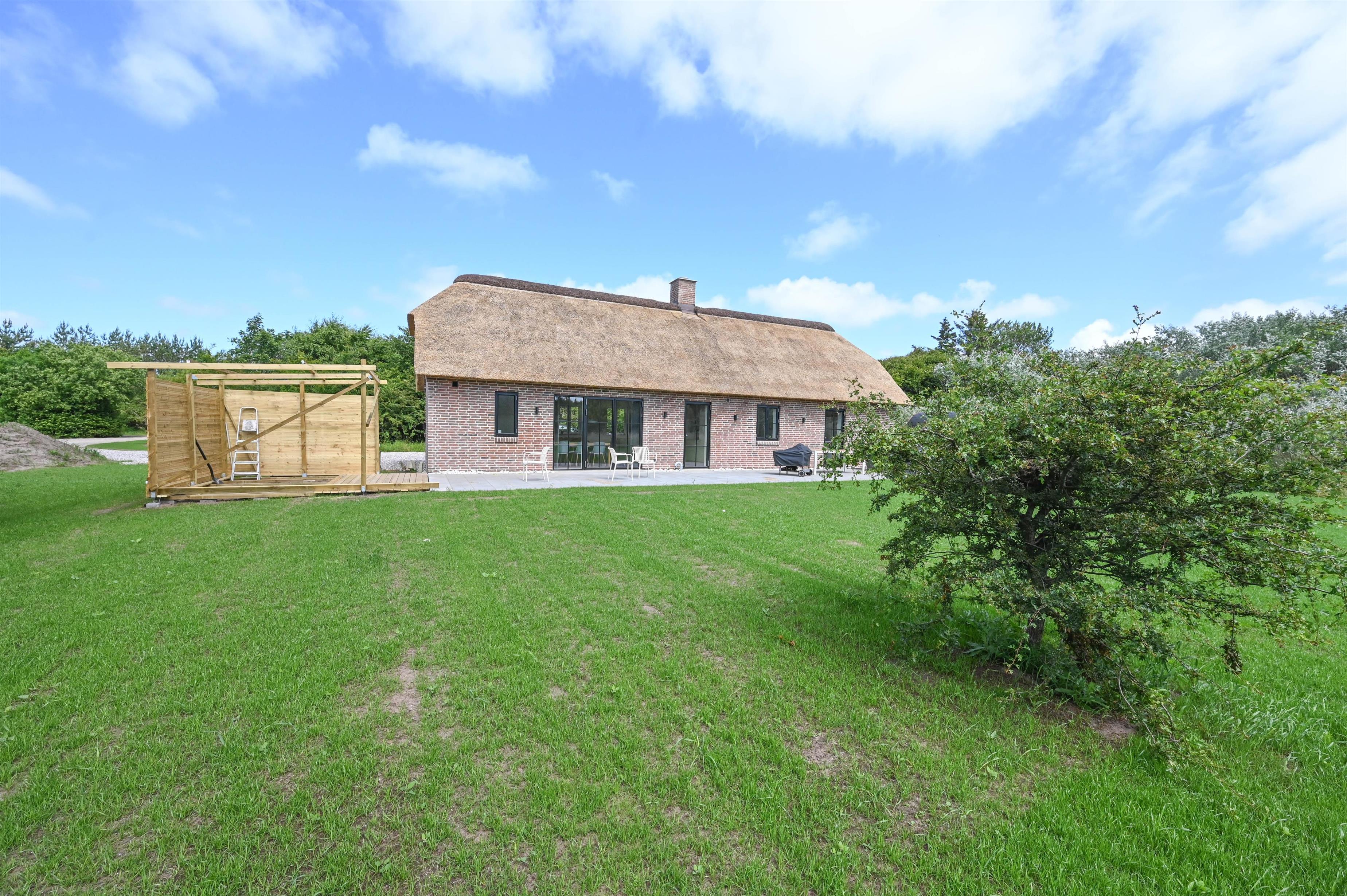 Auf einem wunderschönen, teilweise gepflegten Grundstück von 6.029 m² – umgeben von Natur, Himmel und frischer Nordseeluft – findest du dieses neue Ferienhaus, das im Frühjahr 2025 im authentischen westjütländischen Stil erbaut wurde.