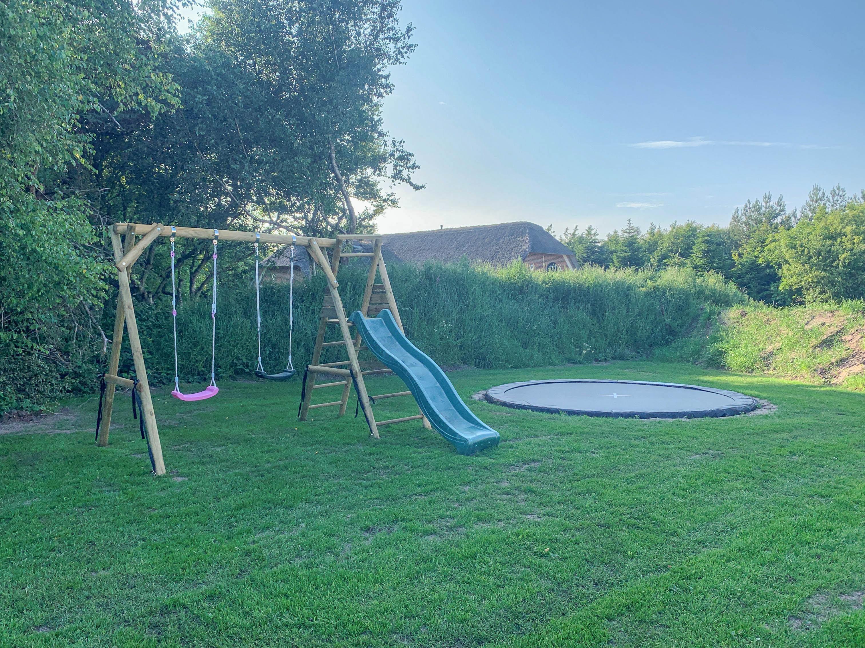 Für Kinder gibt es eine große Rasenfläche mit Trampolin, ideal zum Spielen und Toben, während die Erwachsenen den Ausblick, die frische Luft und die Ruhe genießen.